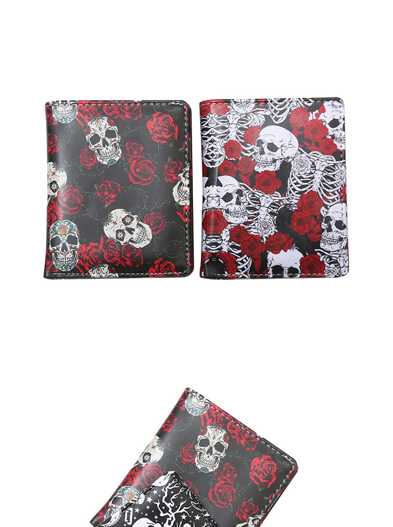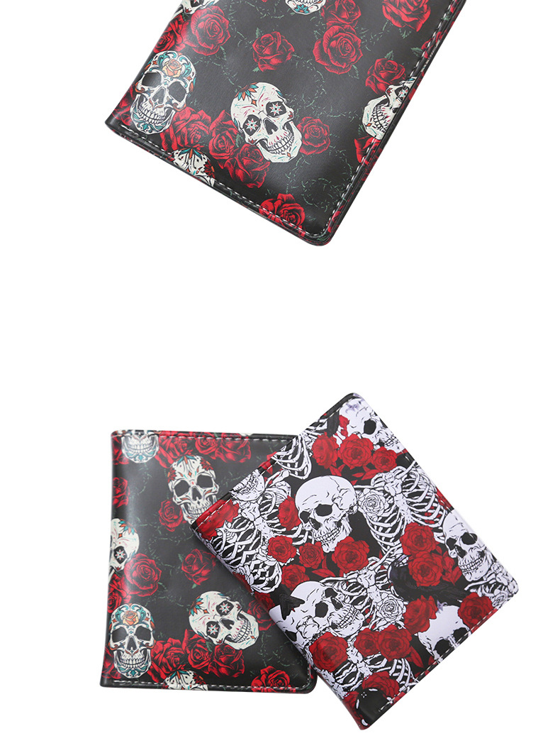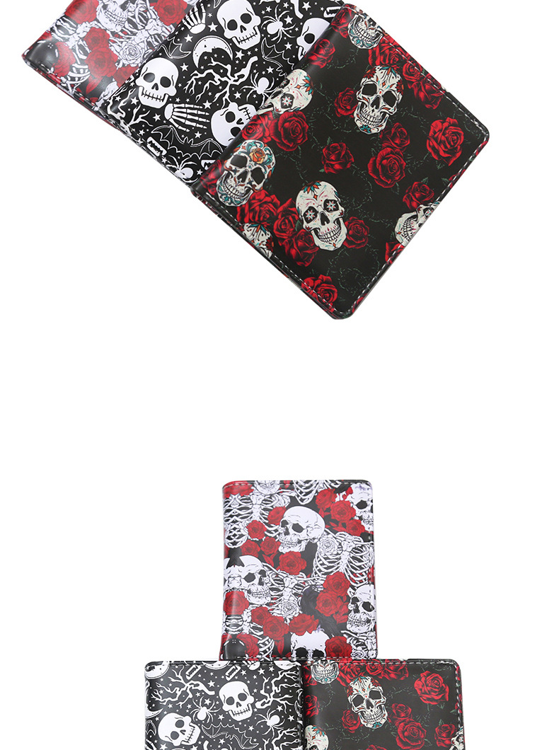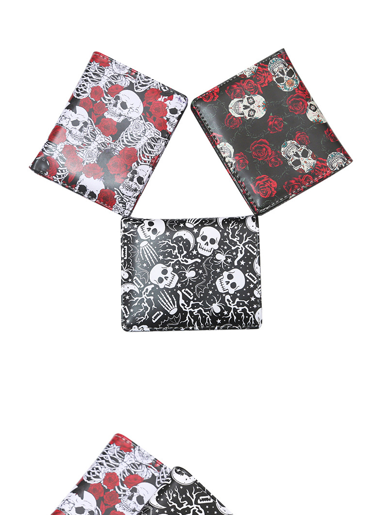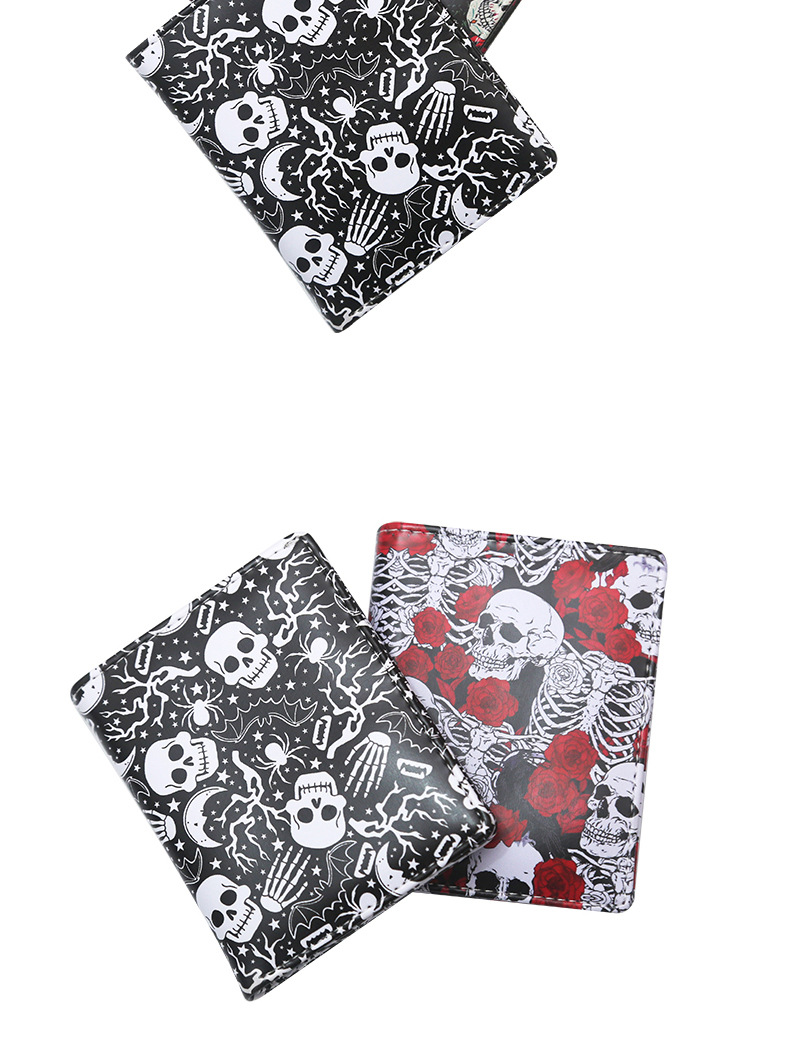 크로스 보더 새 지갑 컬러 해골 짧은 지갑 빈티지 해골 프린트 여성용 지퍼 동전 지갑스토어 가기