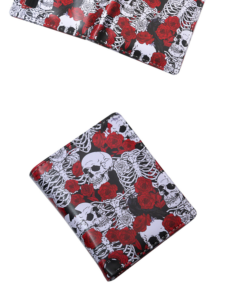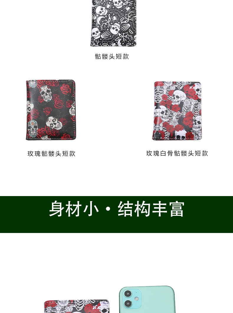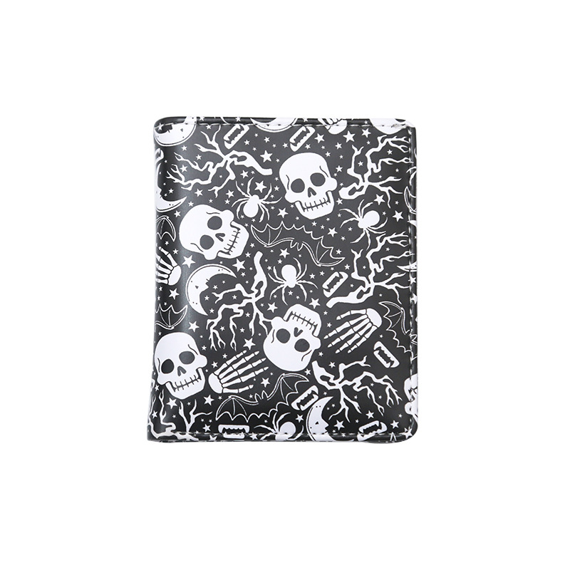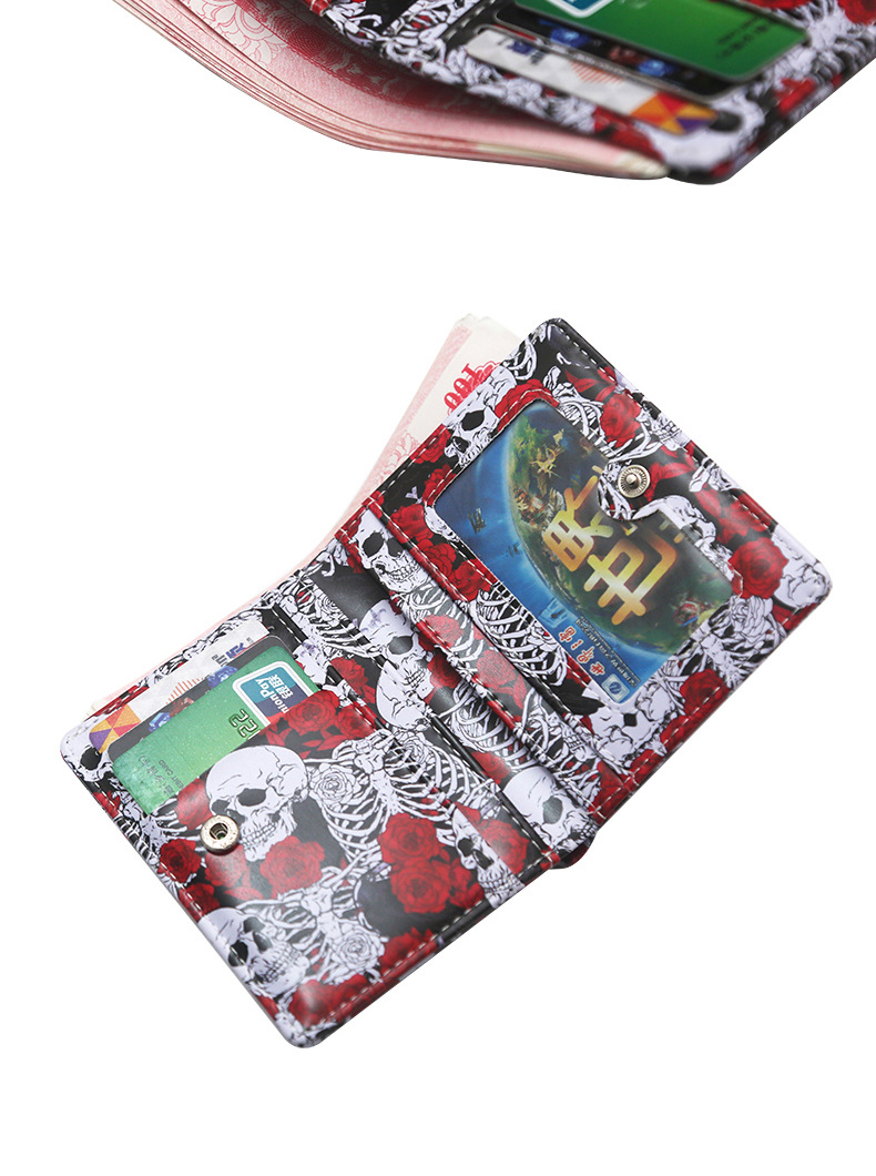 크로스 보더 새 지갑 컬러 해골 짧은 지갑 빈티지 해골 프린트 여성용 지퍼 동전 지갑