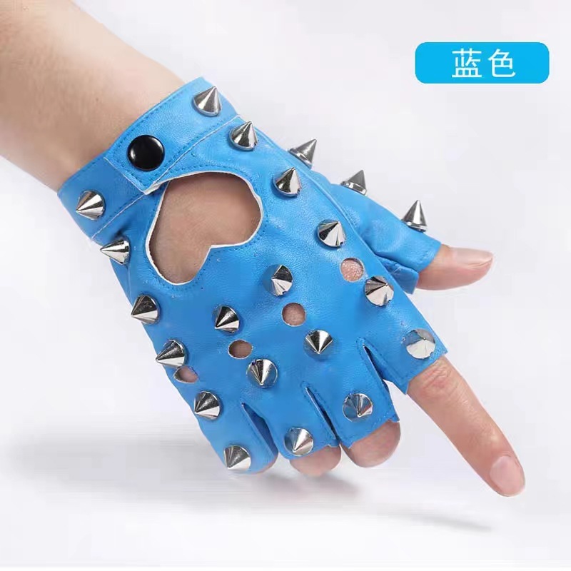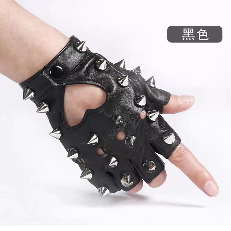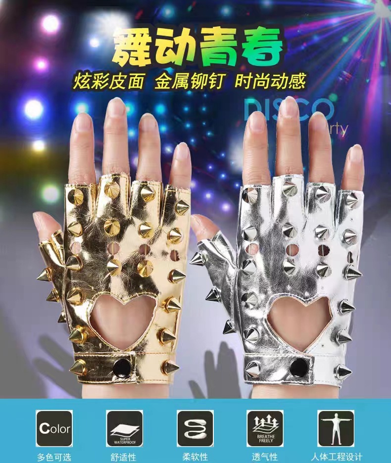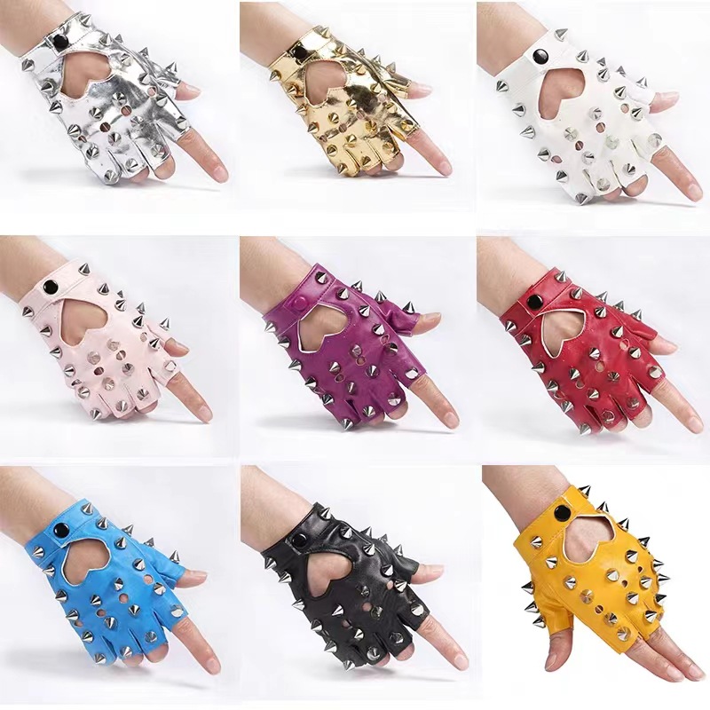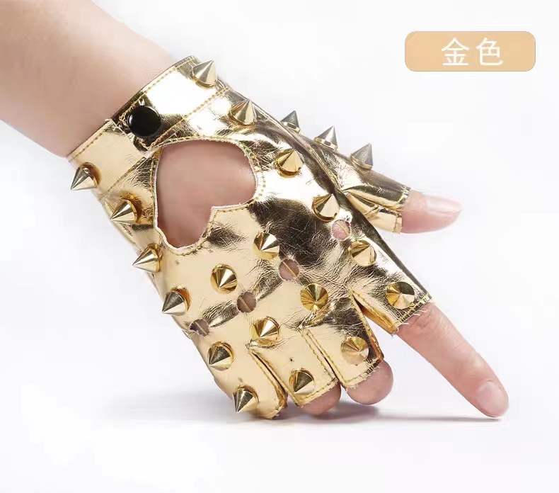 반 손가락 장갑 소년과 소녀 펑크 스트리트 댄스 리벳 반 손가락 가죽 장갑 손가락없는 무대 공연 장갑 브레이크 댄스