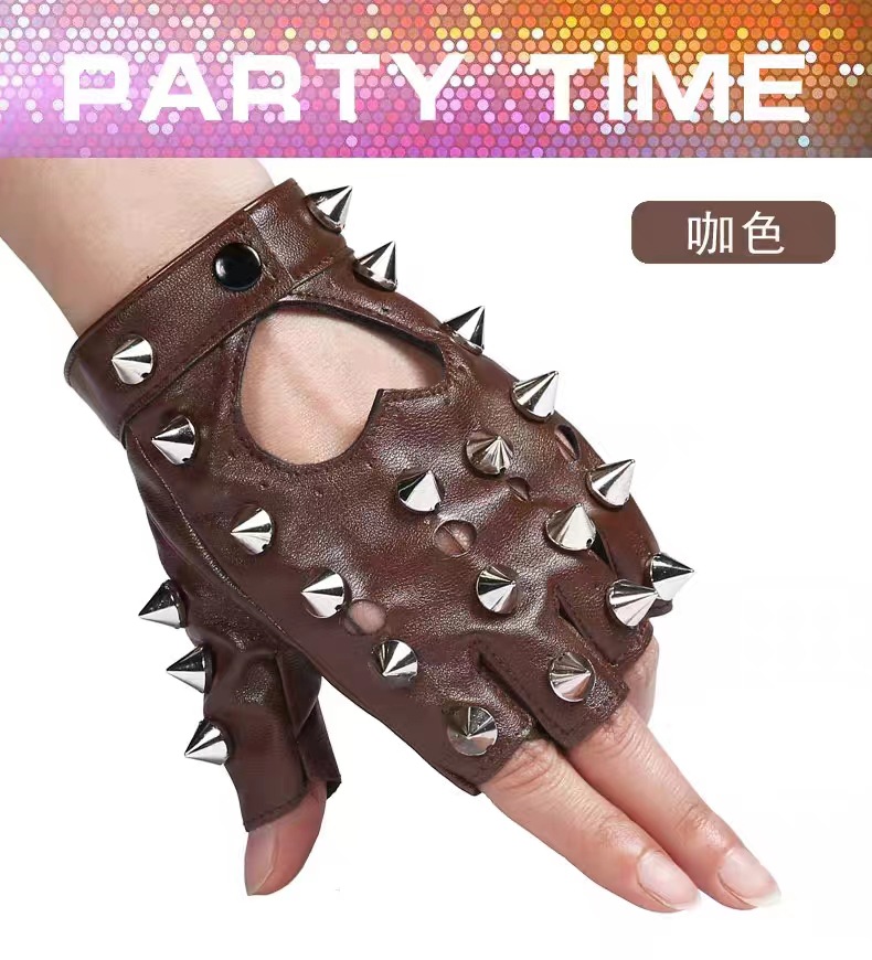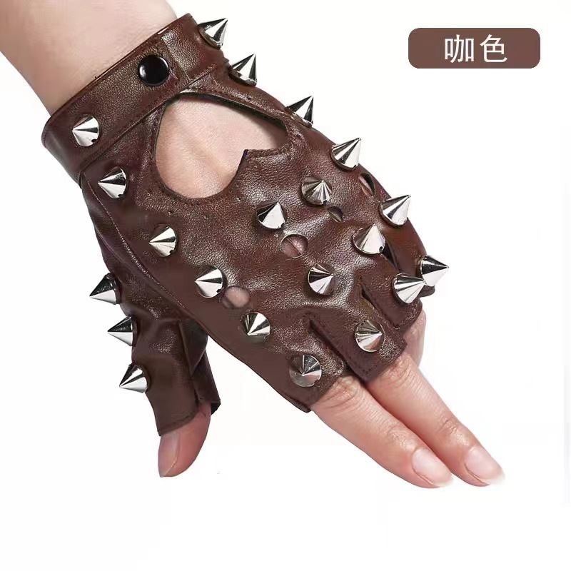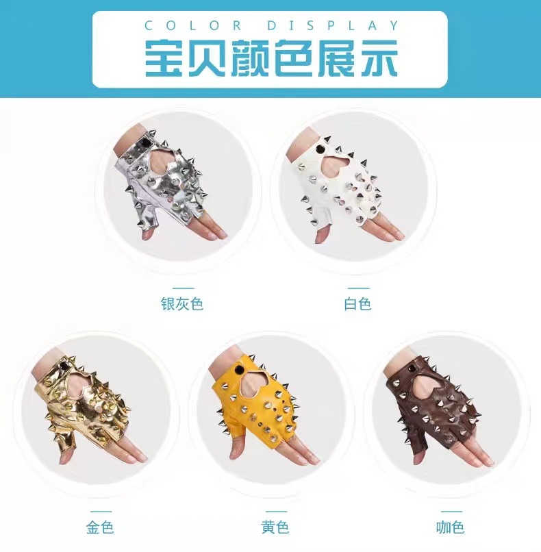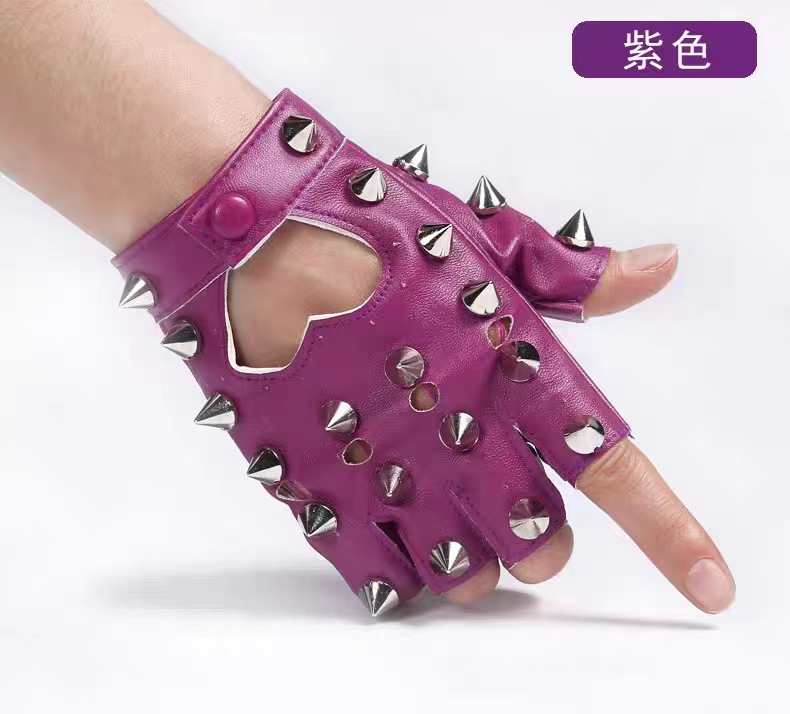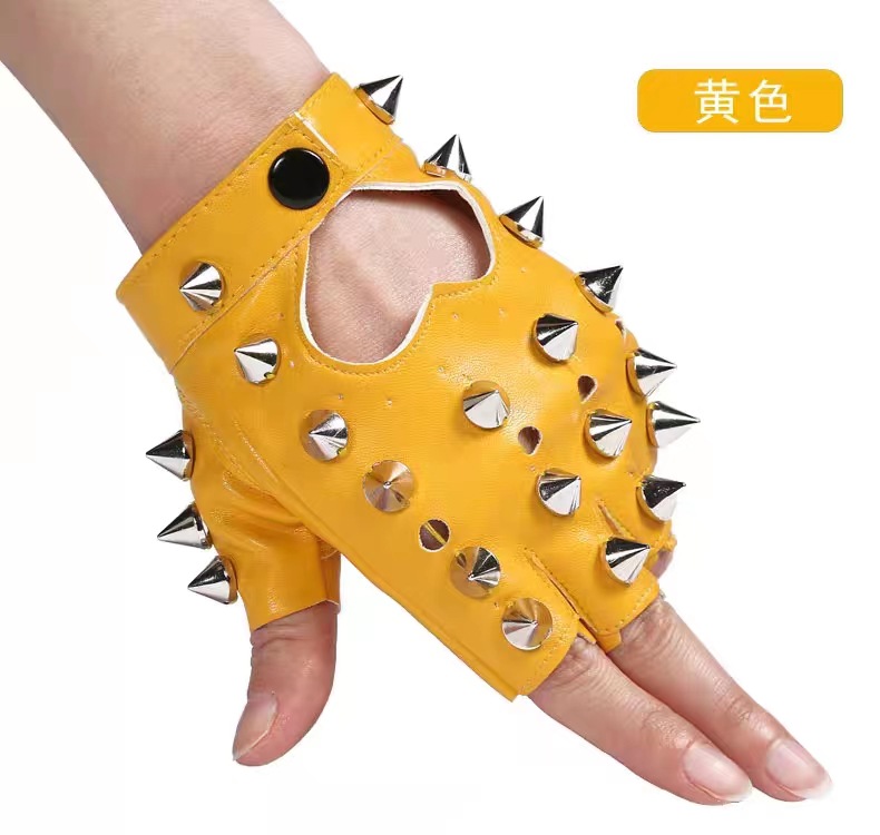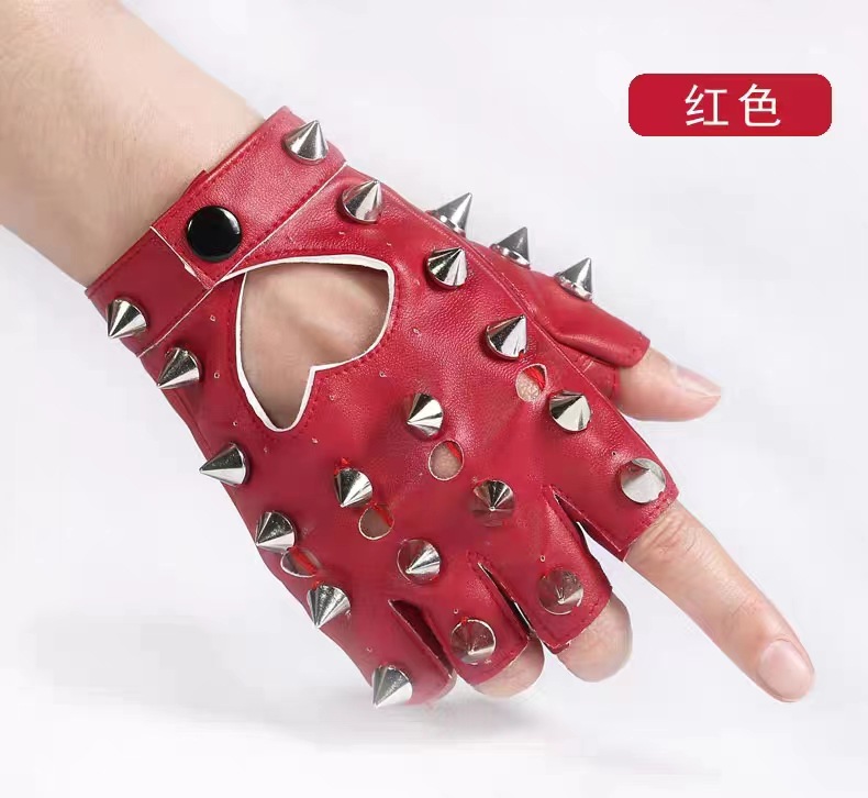 반 손가락 장갑 소년과 소녀 펑크 스트리트 댄스 리벳 반 손가락 가죽 장갑 손가락없는 무대 공연 장갑 브레이크 댄스
