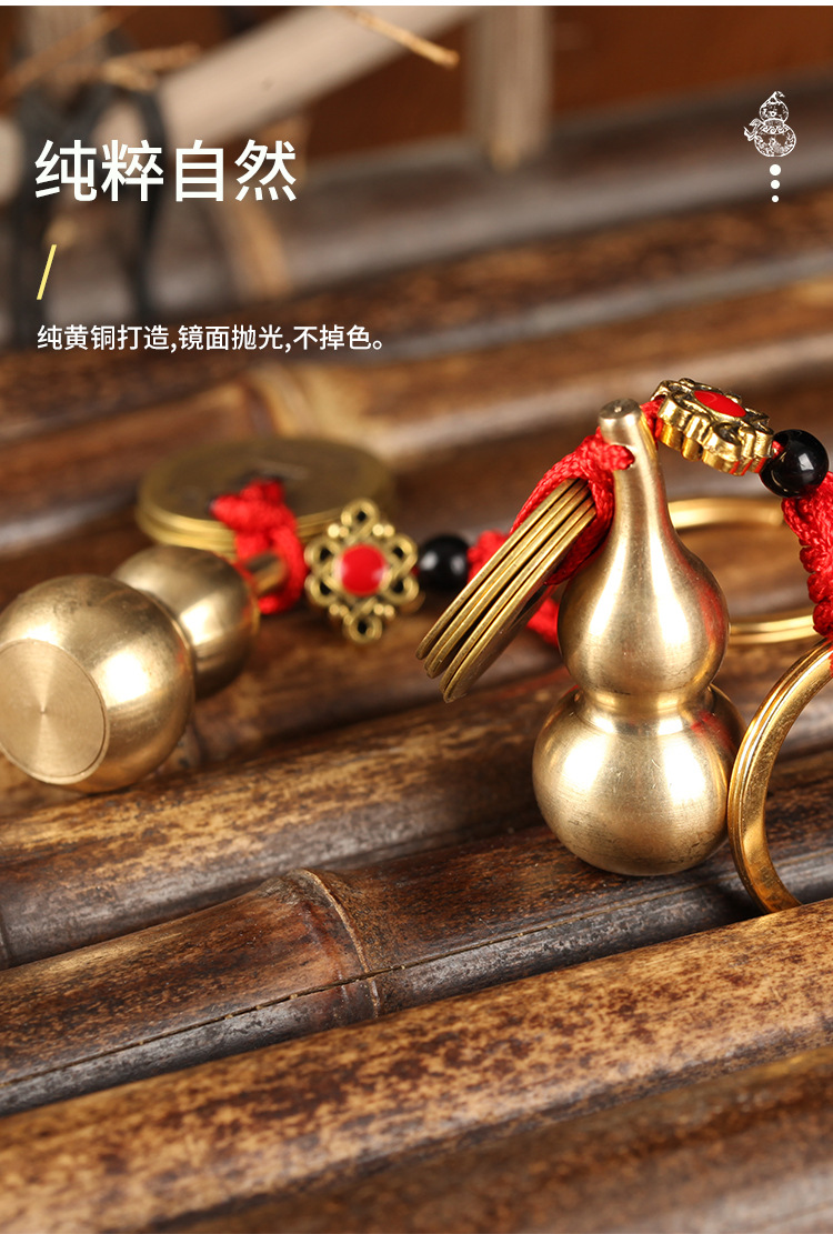 다섯 황제 돈 구리 조롱박 도어 펜던트 구리 돈 펜던트 중국 매듭 열쇠 고리 장식 금속 장식 공예품스토어 가기