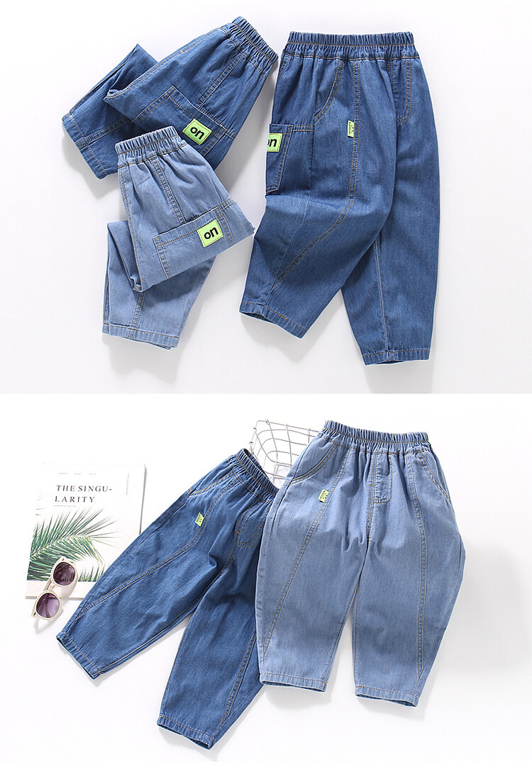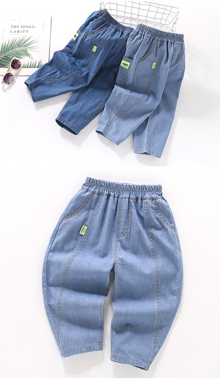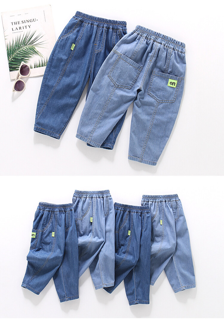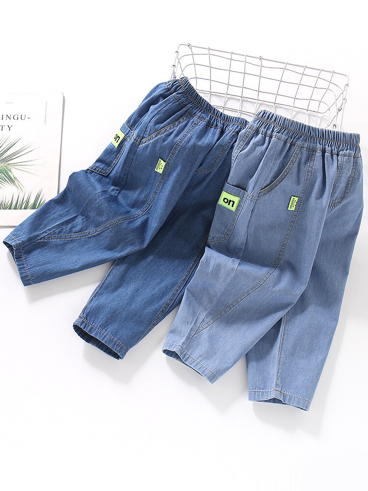 어린이 모기 방지 바지 여름 얇은 남아 여아 아동복 중소형 아동용 10 면 여름 캐주얼 바지 데님 바지