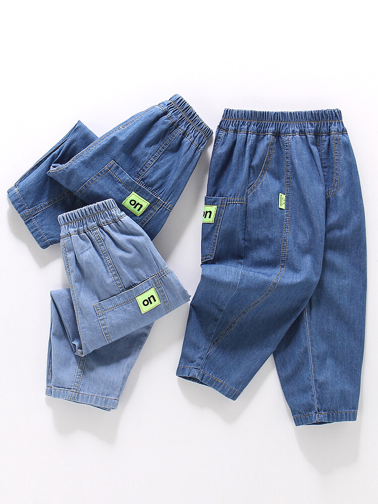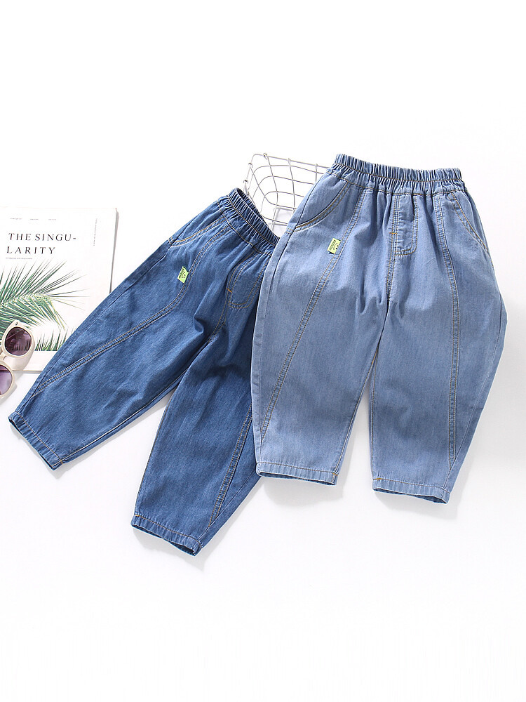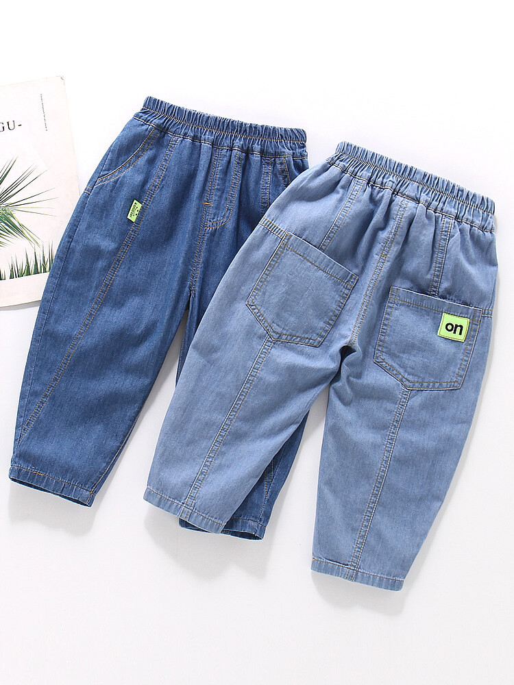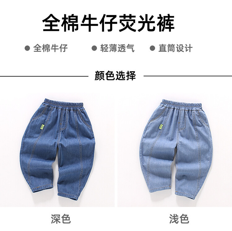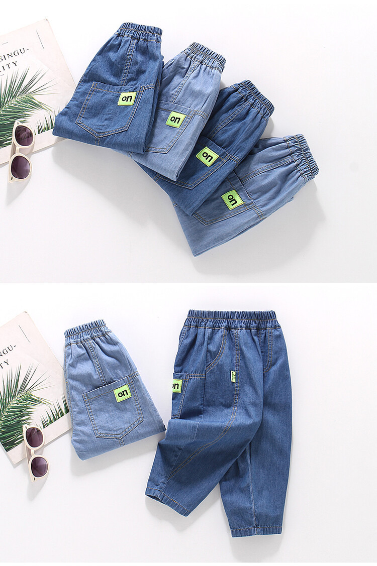 어린이 모기 방지 바지 여름 얇은 남아 여아 아동복 중소형 아동용 10 면 여름 캐주얼 바지 데님 바지