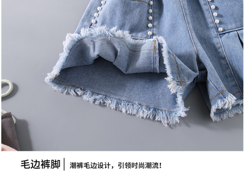 소녀 데님 반바지 모래 워시 튀긴 소금 공예 핫 팬츠 큰 어린이 공장 직접 헤어 넷 빨간 바지의 세대