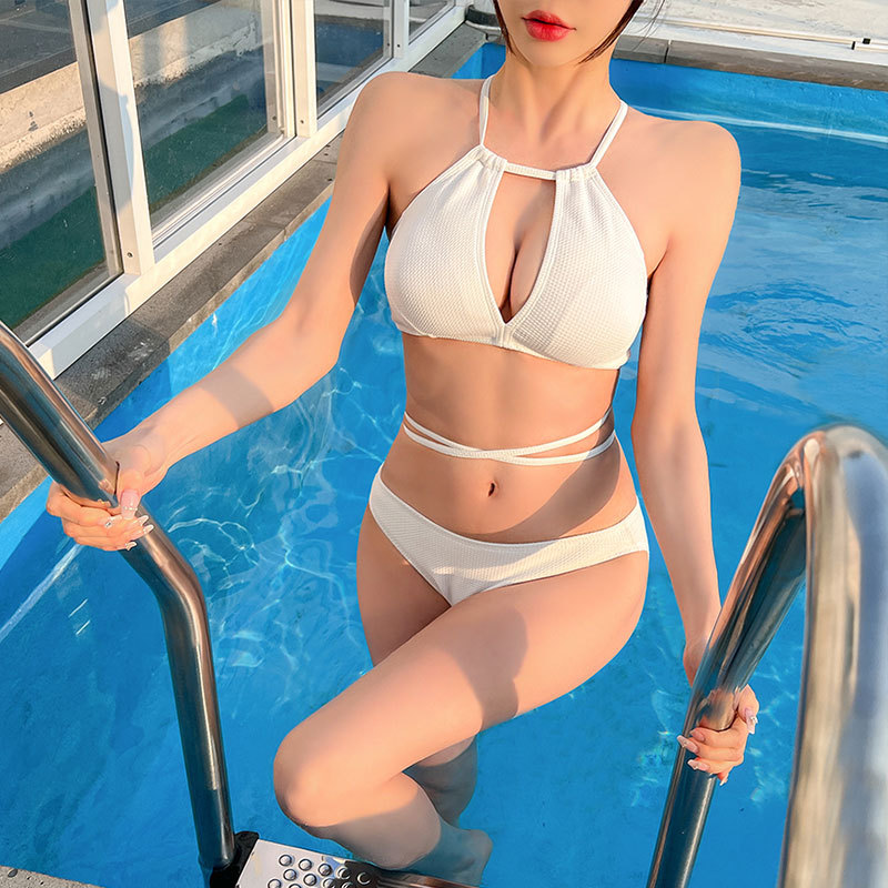유럽과 미국 대외 무역 수영복 단색 섹시한 등이없는 낮은 허리 삼각형 분할 3 점 속건 해변 비키니 수영복