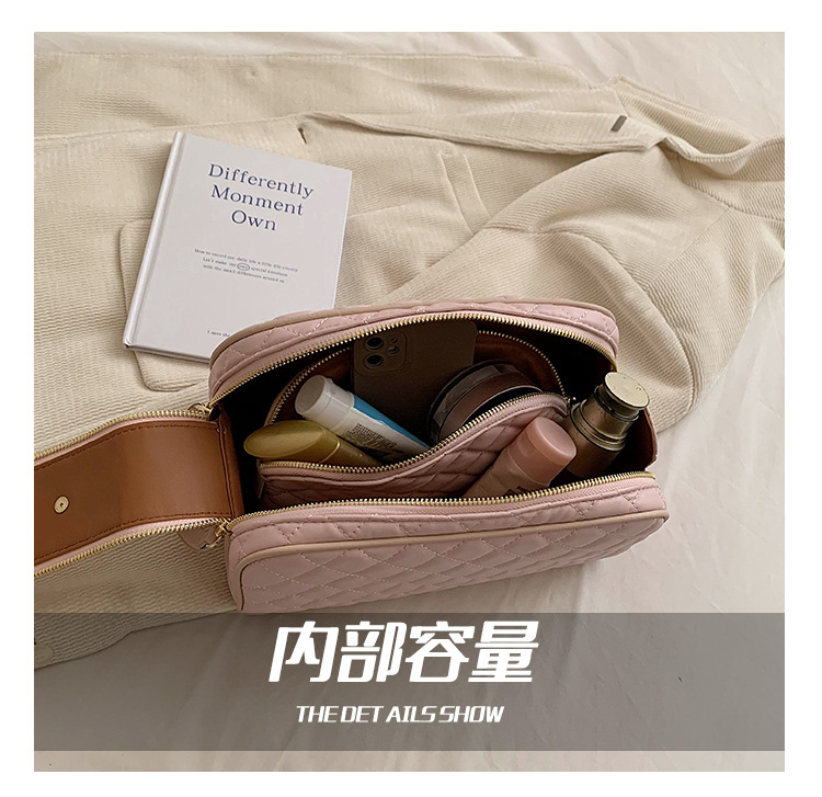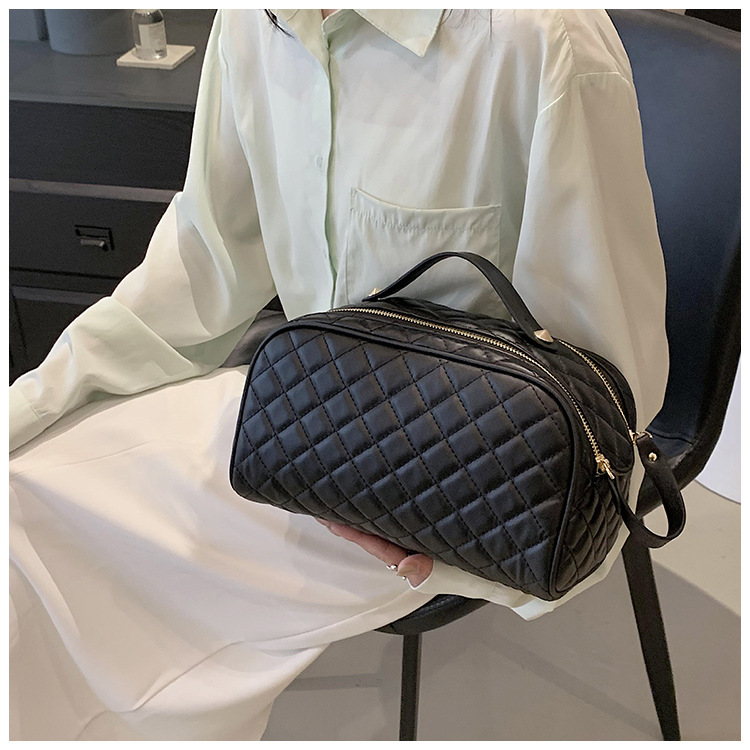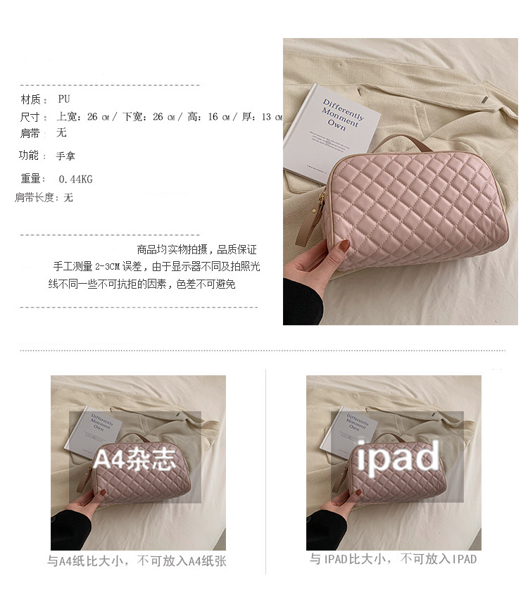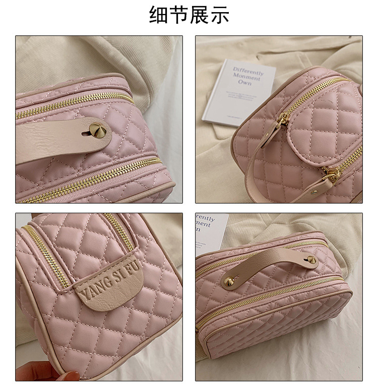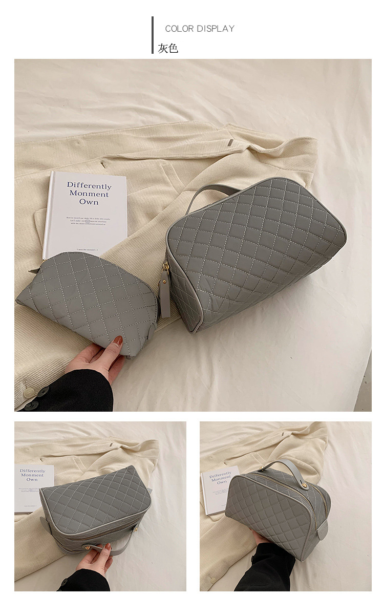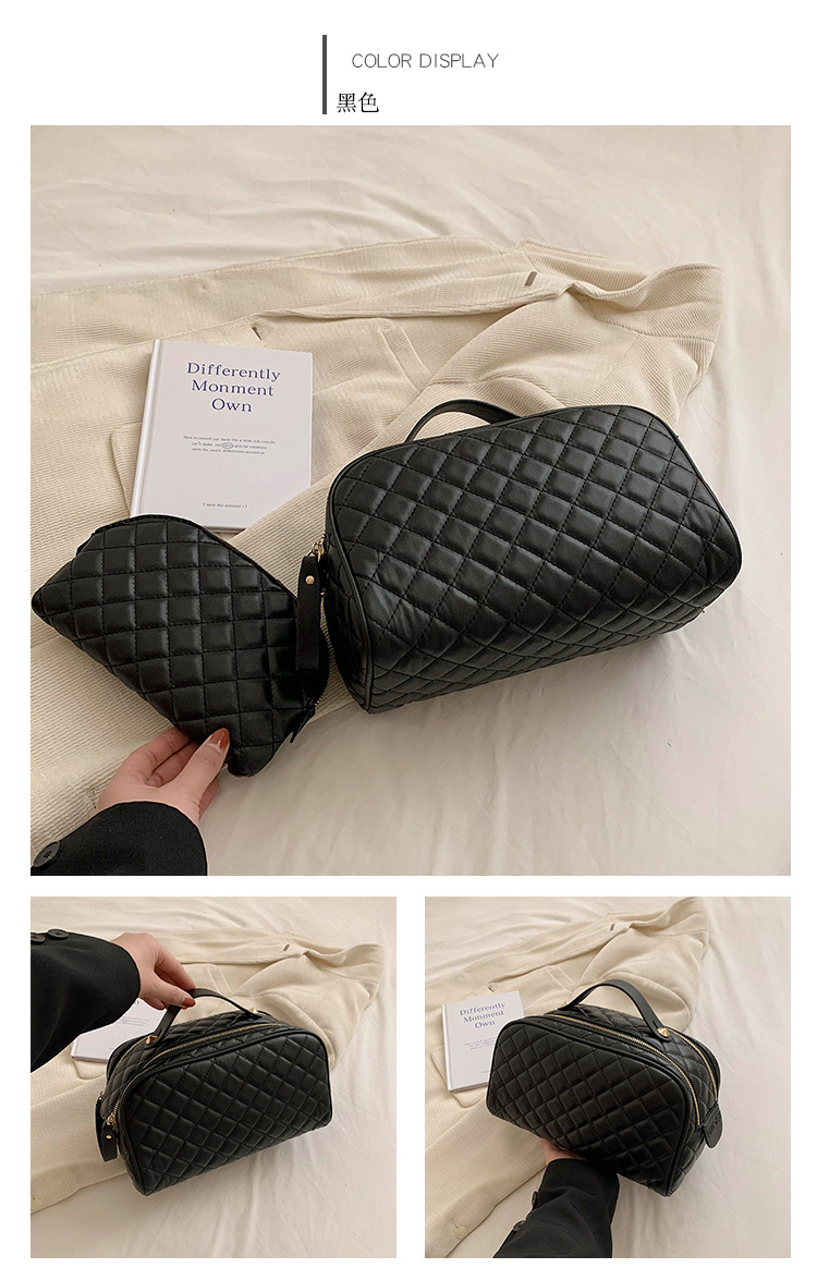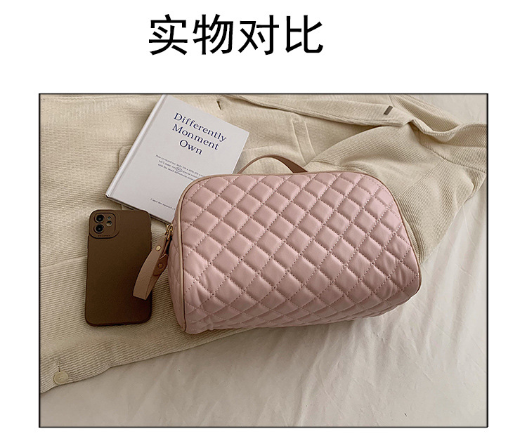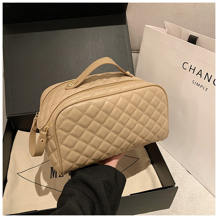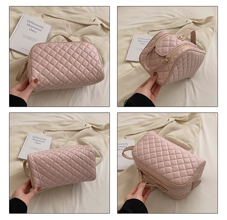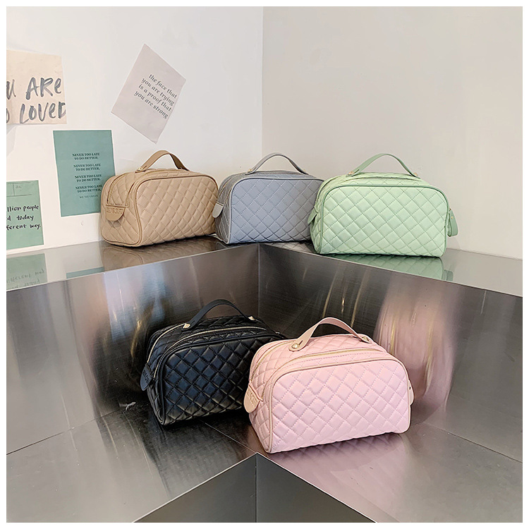 새로운 여행 휴대용 간단하고 세련된 화장품 가방 대용량 마름모 자수 지퍼 세면 용품 가방 휴대용 시어머니 가방
