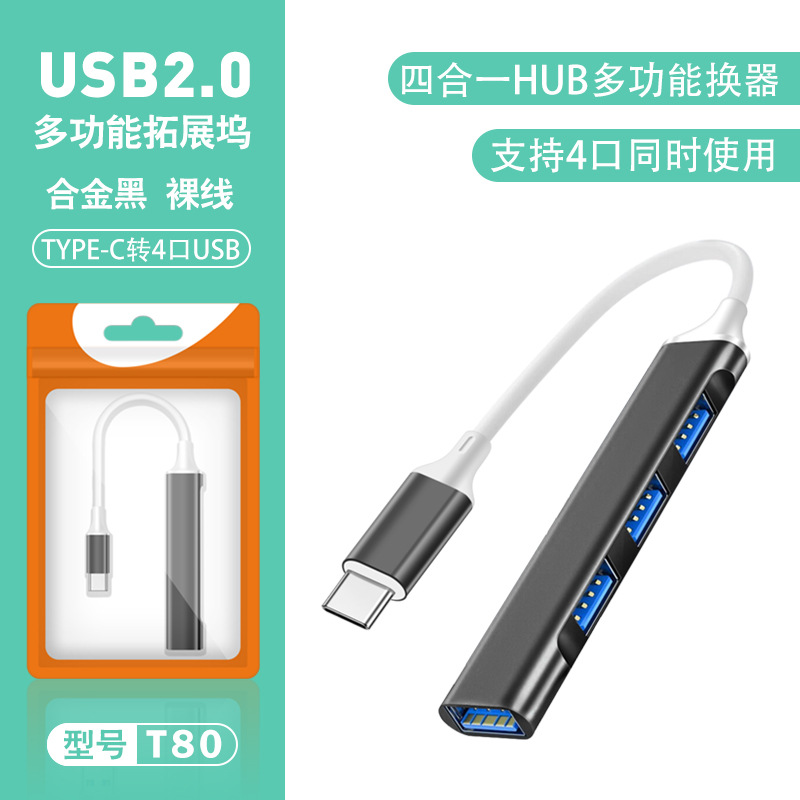 • [TYPE-C ~ 4포트 USB] T80 포켓 2.0 합금 블랙