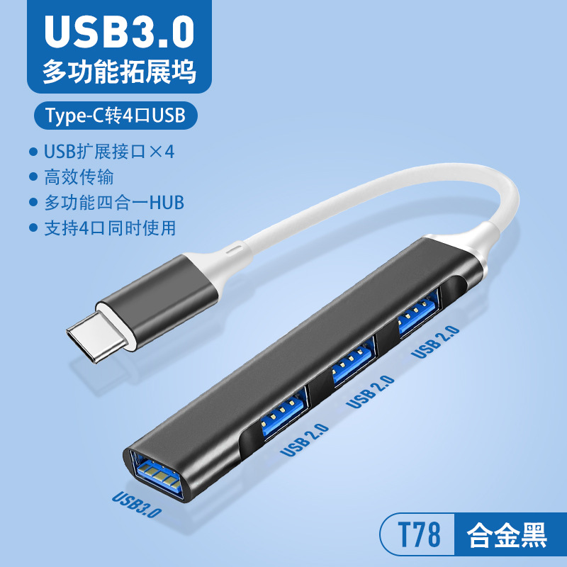 • [TYPE-C ~ 4포트 USB] T78 포켓 3.0 합금 블랙