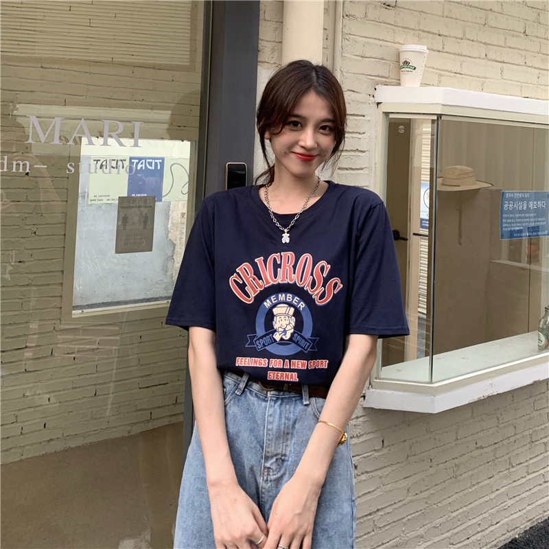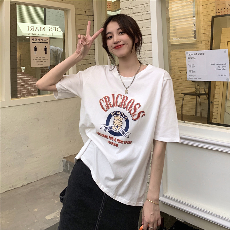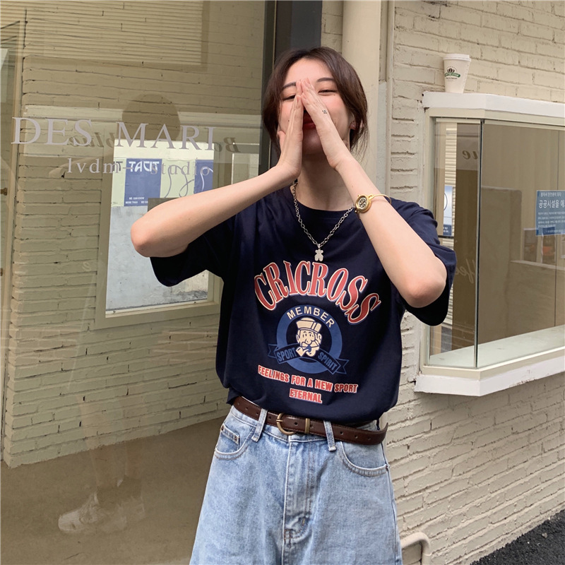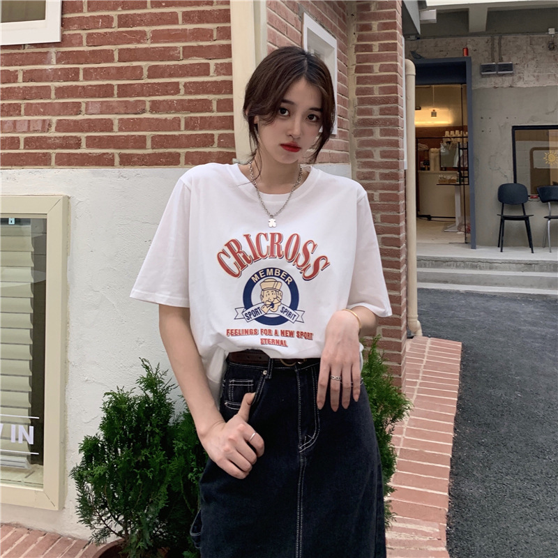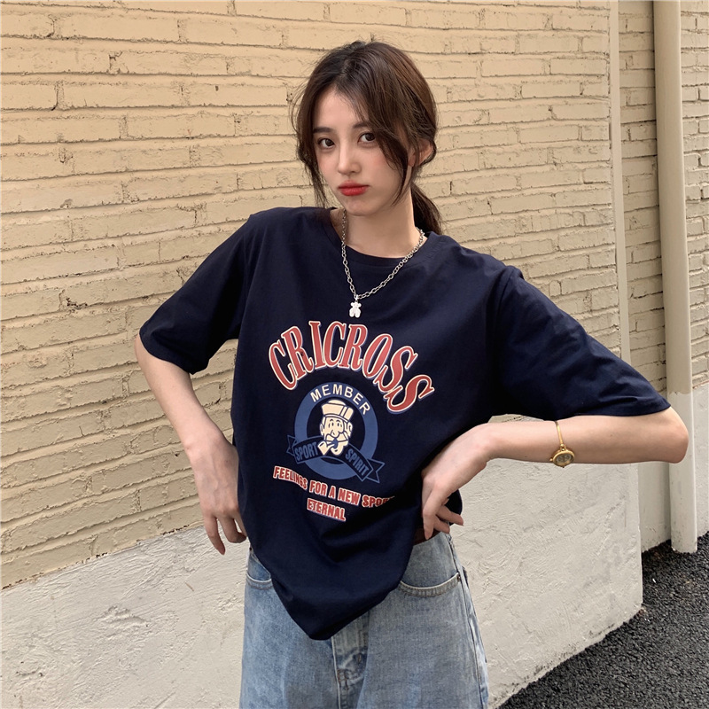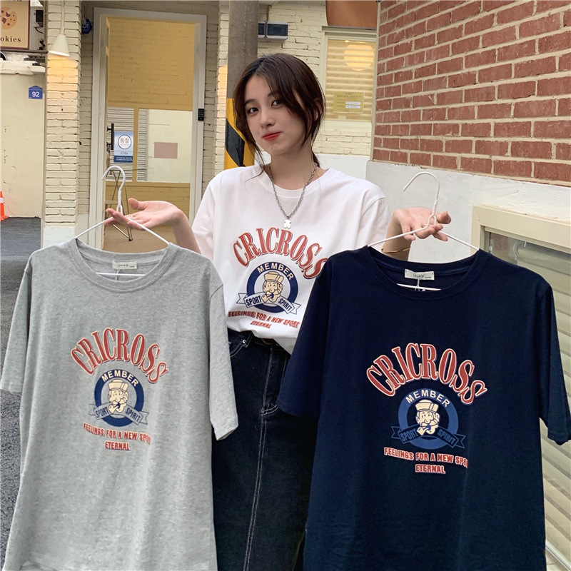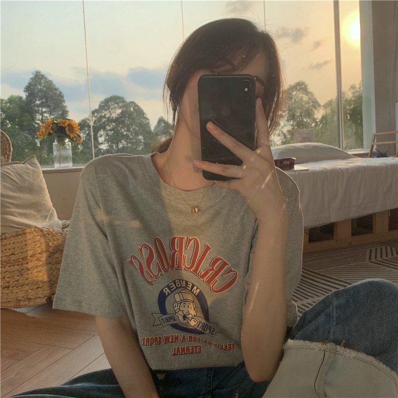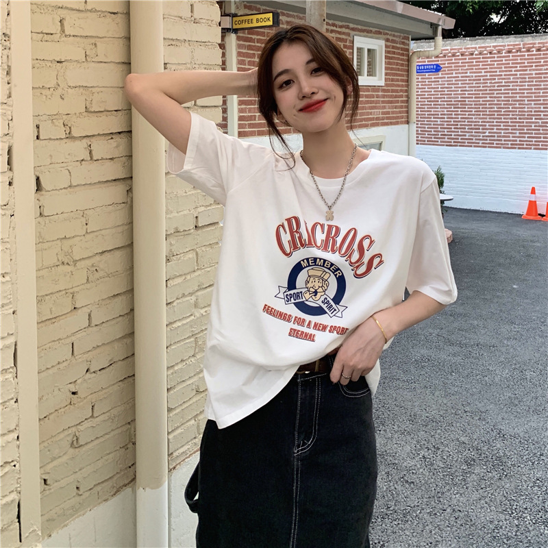2025 새로운 미국 디자인 틈새 인쇄 반팔 티셔츠 여학생 느슨한 반팔 캐주얼 게으른 스타일스토어 가기