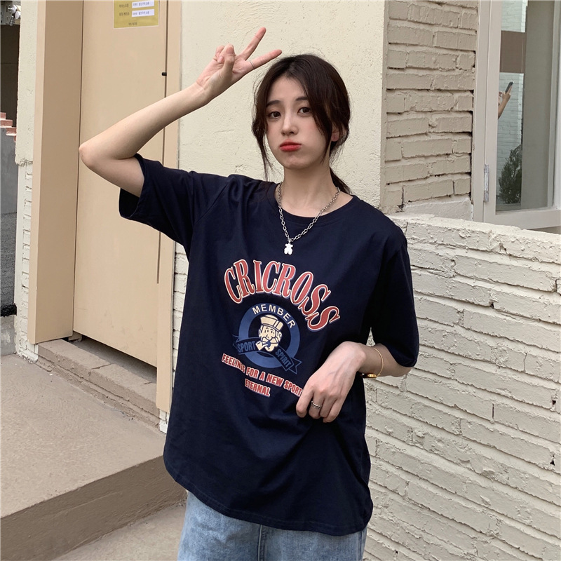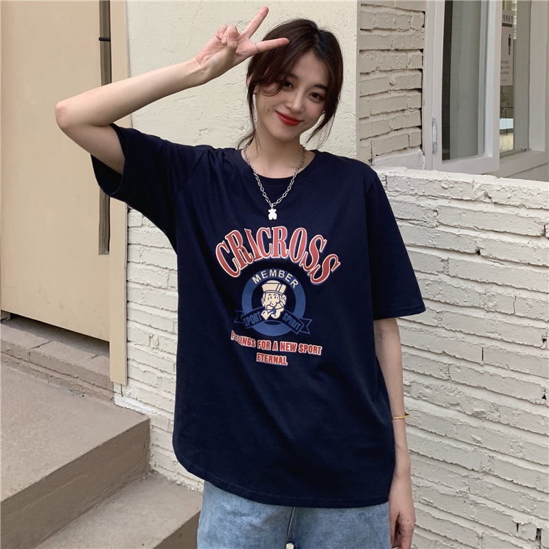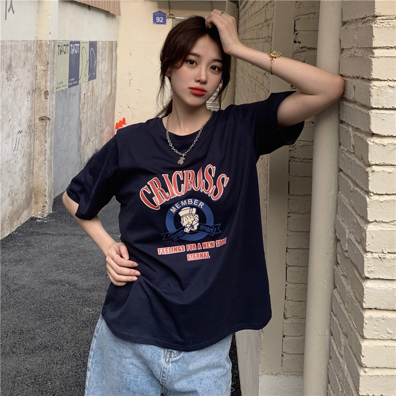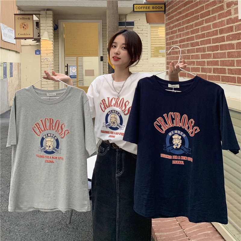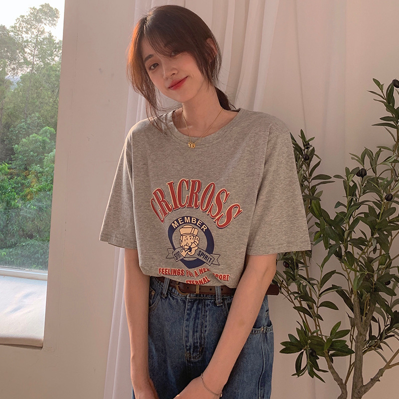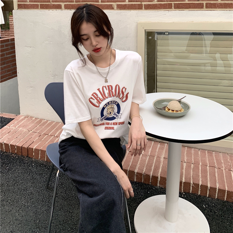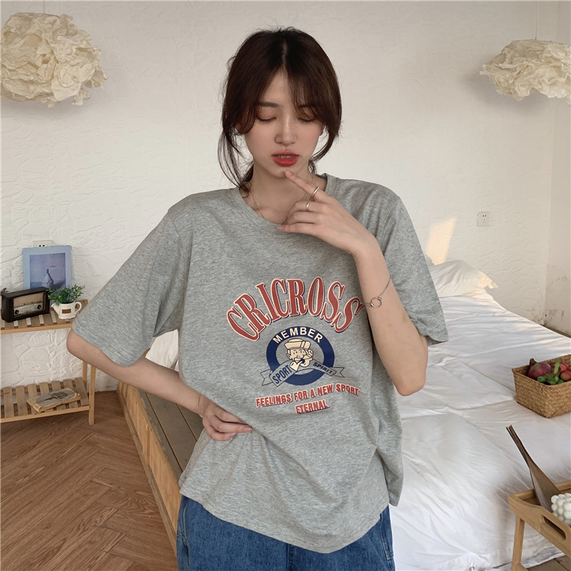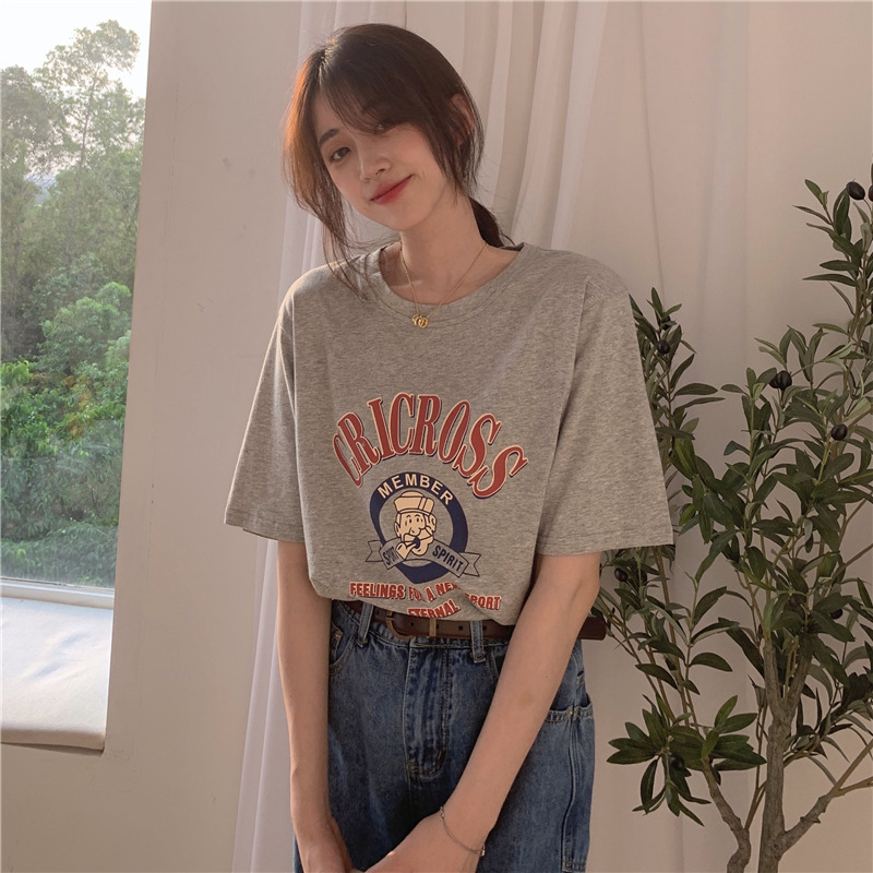 2025 새로운 미국 디자인 틈새 인쇄 반팔 티셔츠 여학생 느슨한 반팔 캐주얼 게으른 스타일스토어 가기