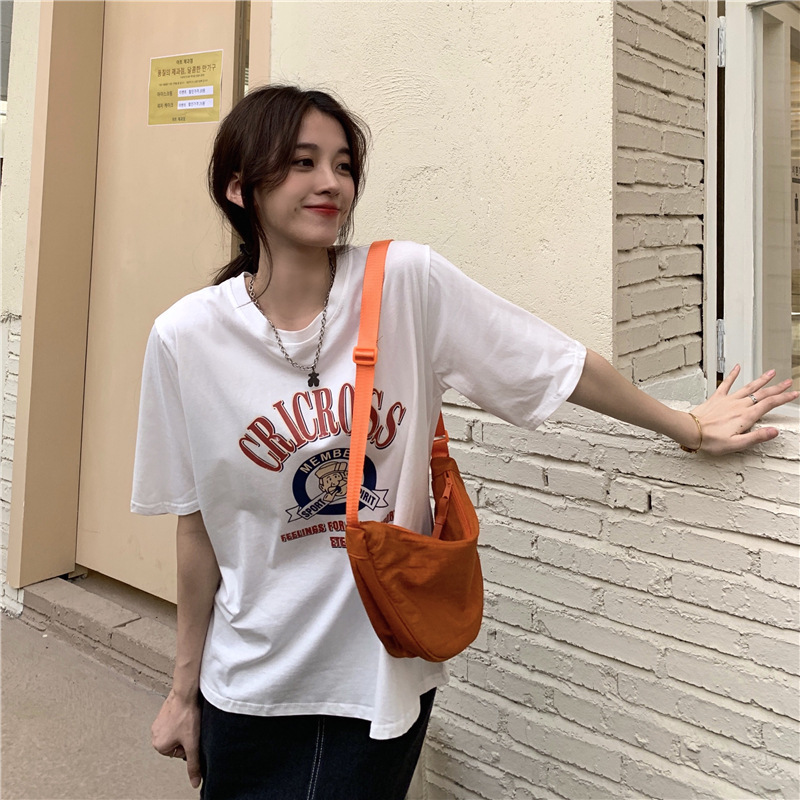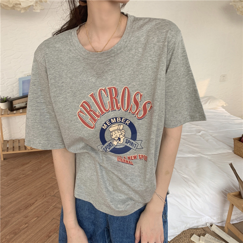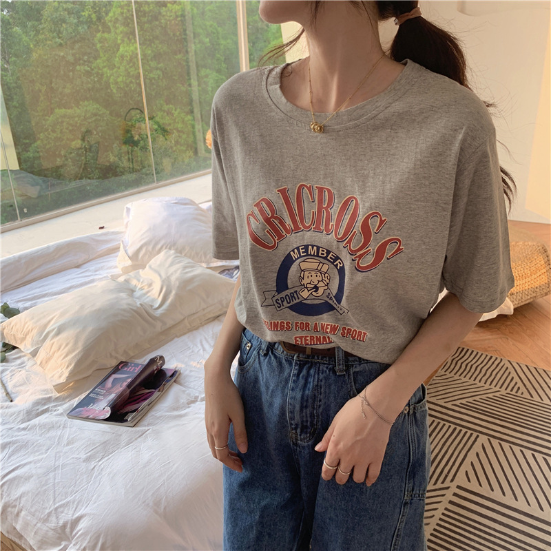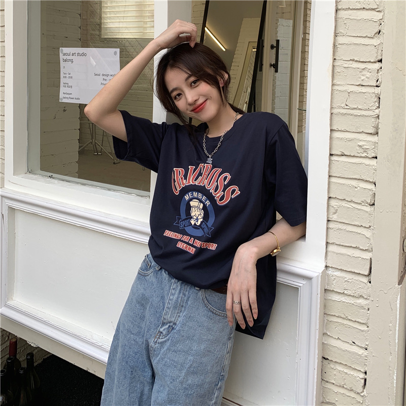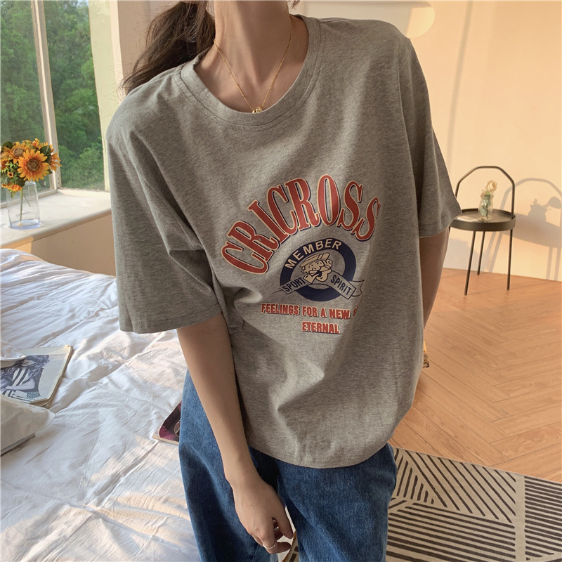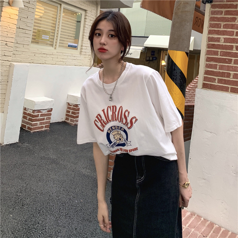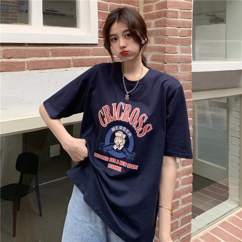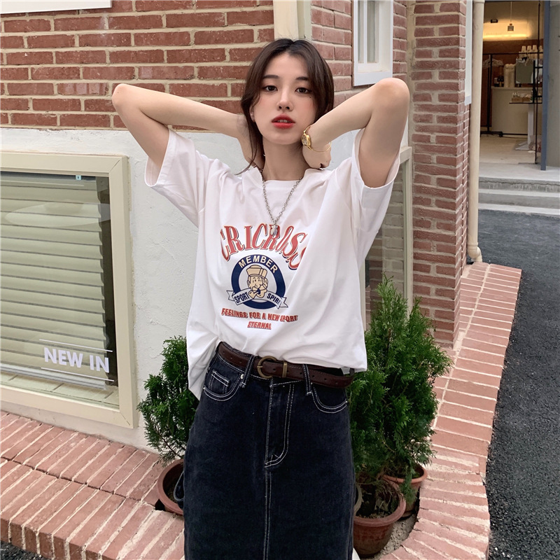 2025 새로운 미국 디자인 틈새 인쇄 반팔 티셔츠 여학생 느슨한 반팔 캐주얼 게으른 스타일스토어 가기