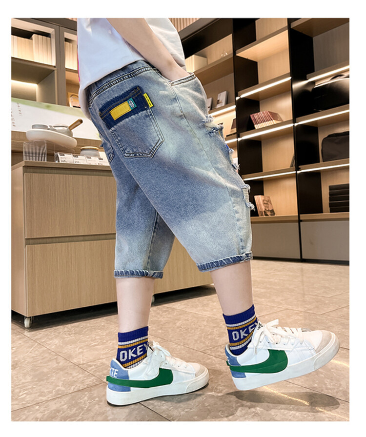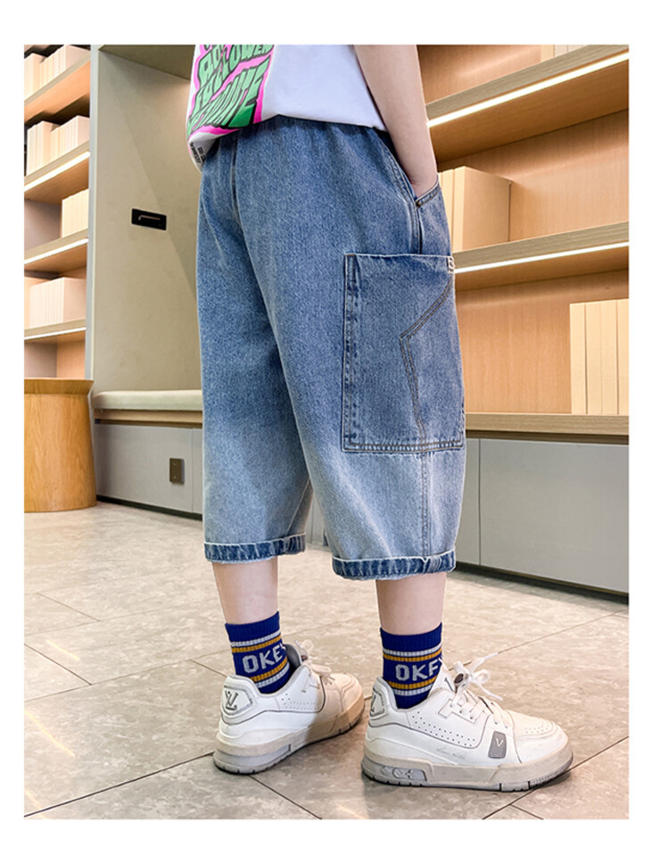 童装2023夏季新款男童薄款裤子中大童宽松百搭五分裤儿童牛仔中裤