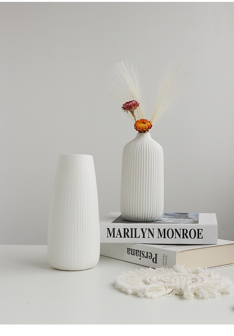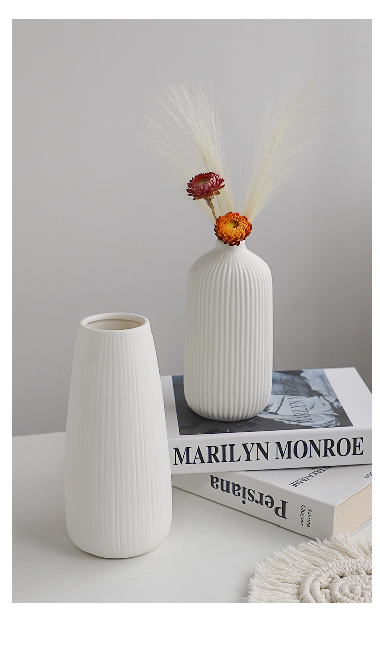 현대 간단한 흰색 세라믹 꽃병 거실 데스크탑 말린 꽃 정리 홈 장식 장식품 일반 불타는 꽃 크로스-국경스토어 가기