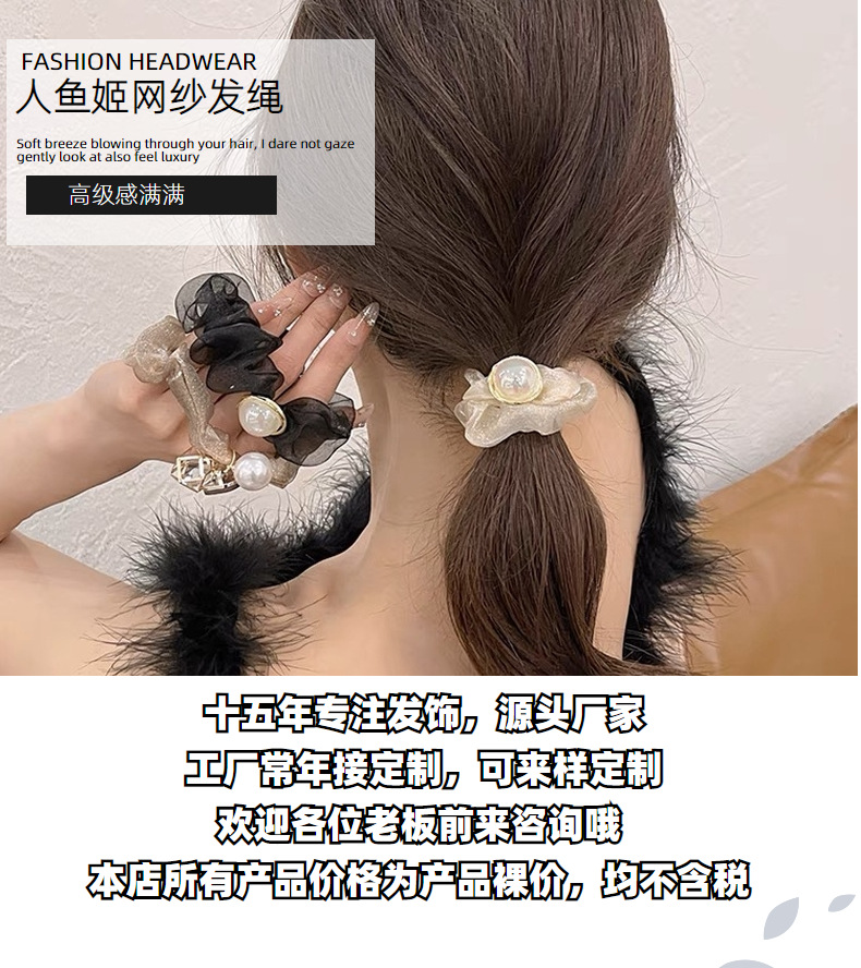 우아한 기질 진주 인어 지 Dachou 헤어 링 여성 한국 높은 감각 볼 헤드 넥타이 헤어 로프 고무 밴드 도매스토어 가기