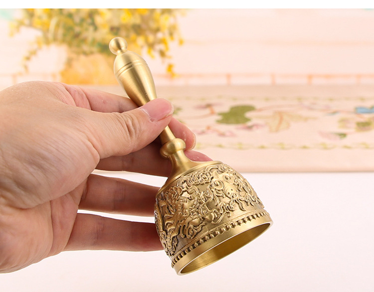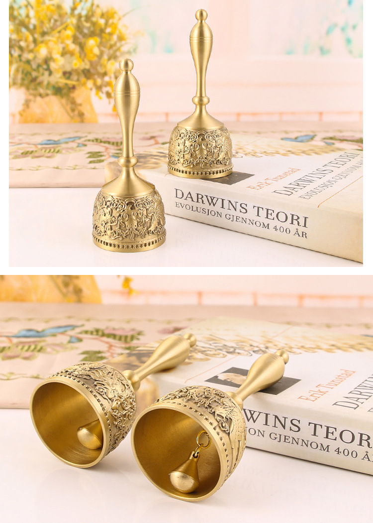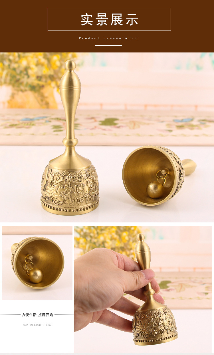 순수 구리 덜컹 거리는 종 손잡이가있는 구리 종 학교 수업 홈 탁상 장식 황동 종 손 덜컹 벨 장식품스토어 가기