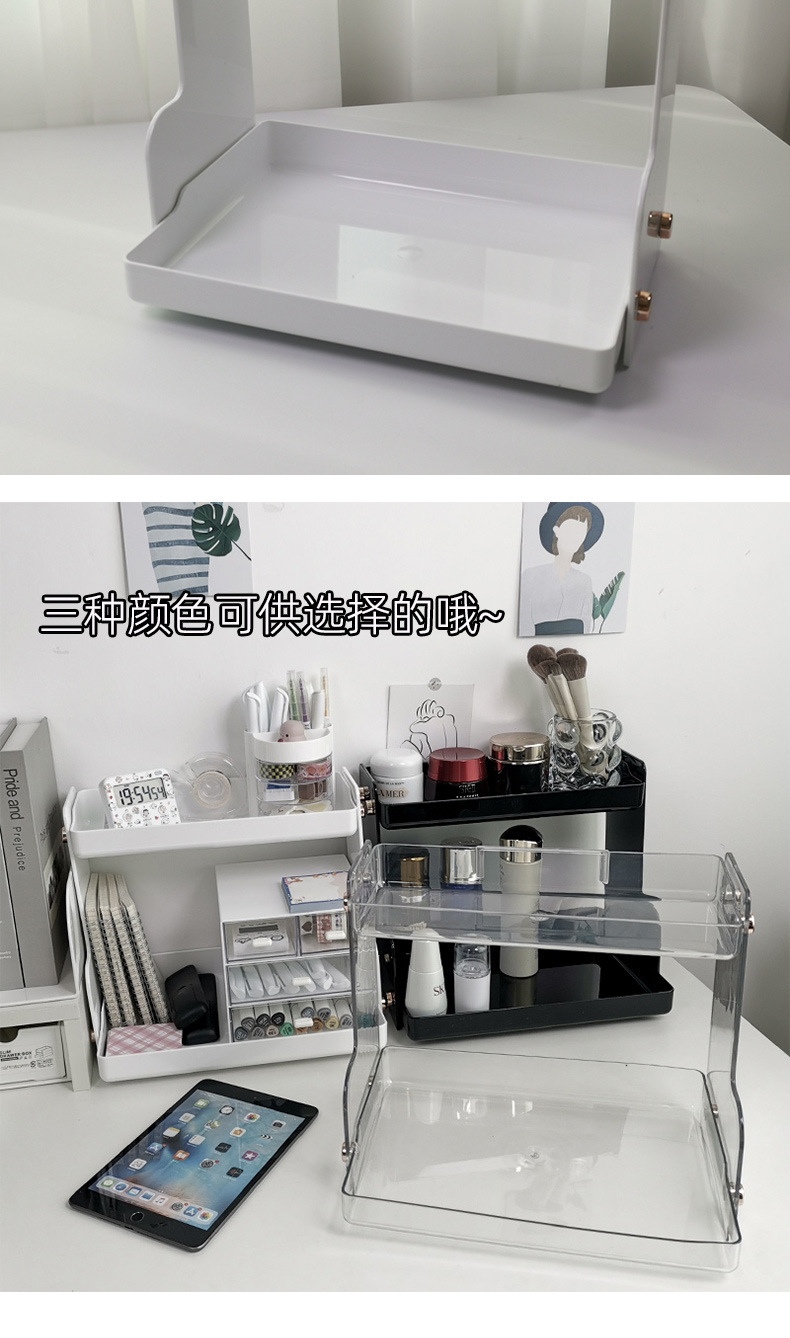 PET 데스크탑 스토리지 랙 학생 책상 기숙사 마감 드레서 화장품 보관함 더블 레이어 스토리지 랙