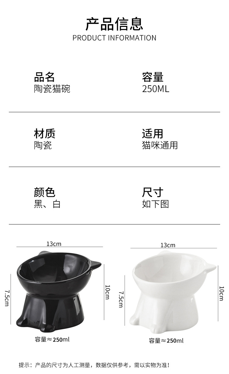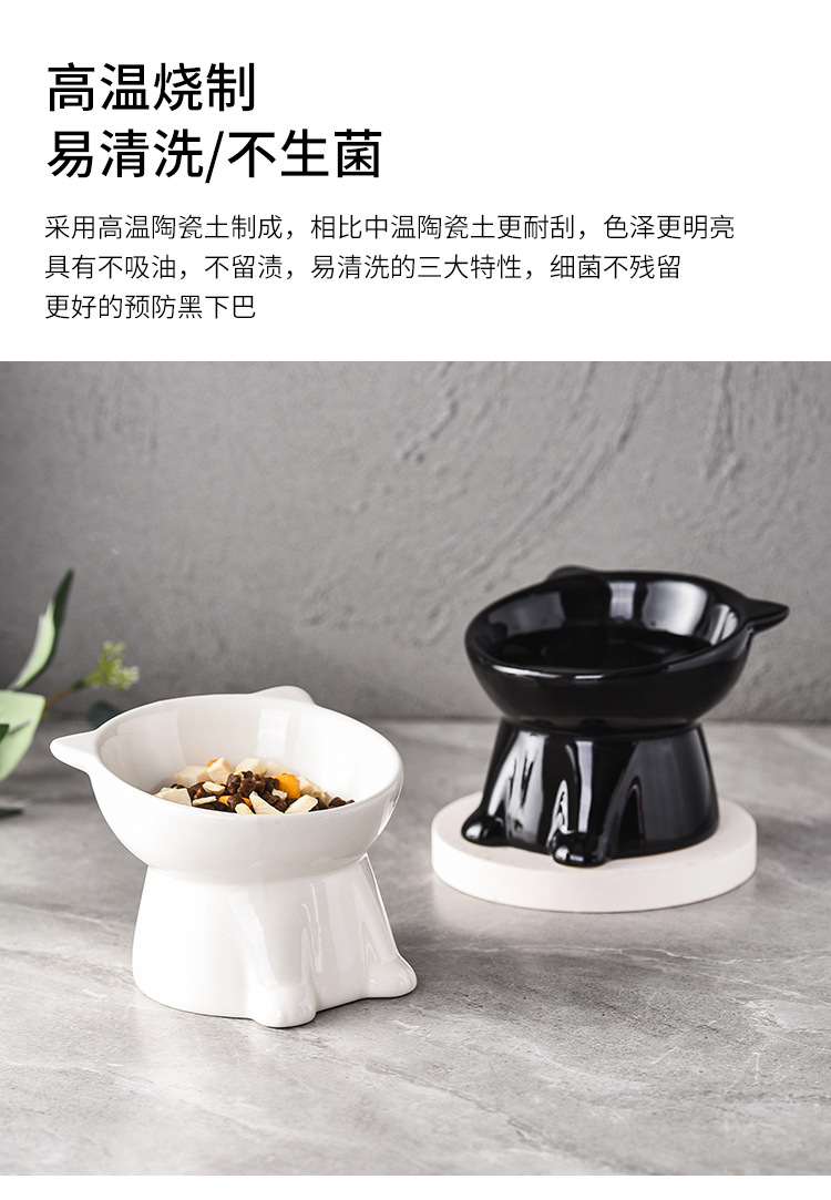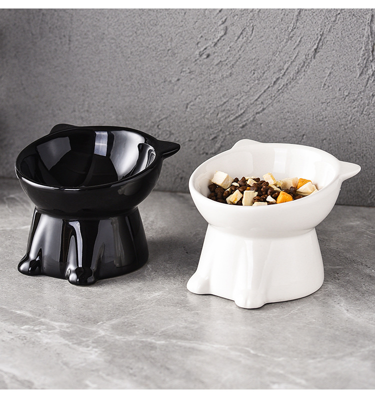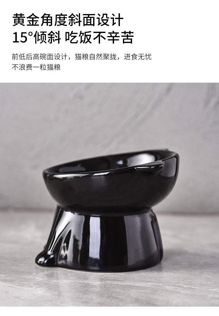 검은 그릇 고양이 검은 고양이 그릇 고양이 음식 분지 세라믹 애완 동물 마시는 그릇 밥그릇 높은 발 경사 그릇 노크 방지 목 보호스토어 가기
