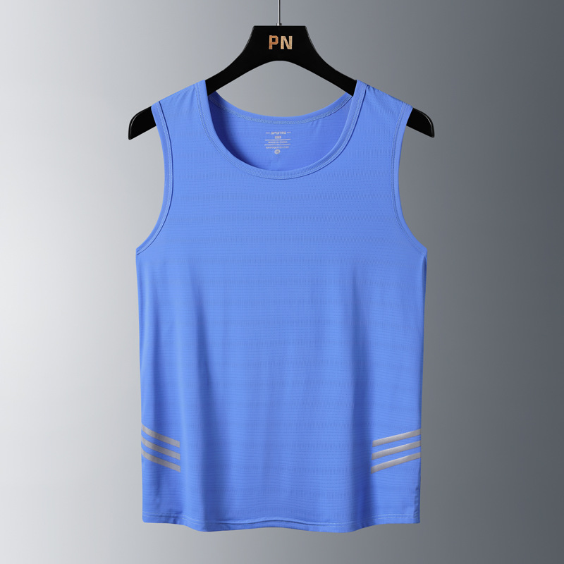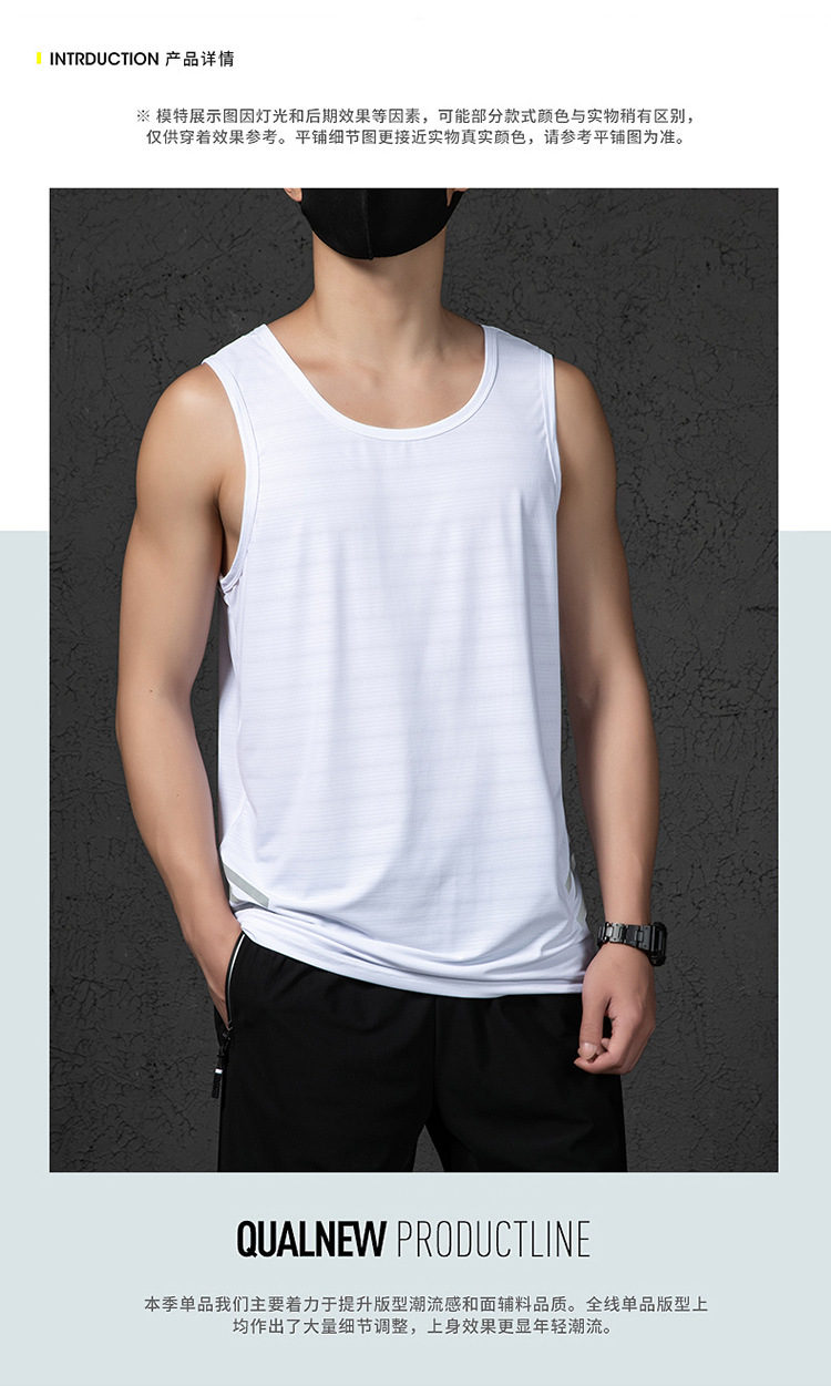 남자의 여름 새로운 아이스 실크 원활한 조끼 느슨한 얇은 야외 피트니스 겉옷 속건 민소매 티셔츠