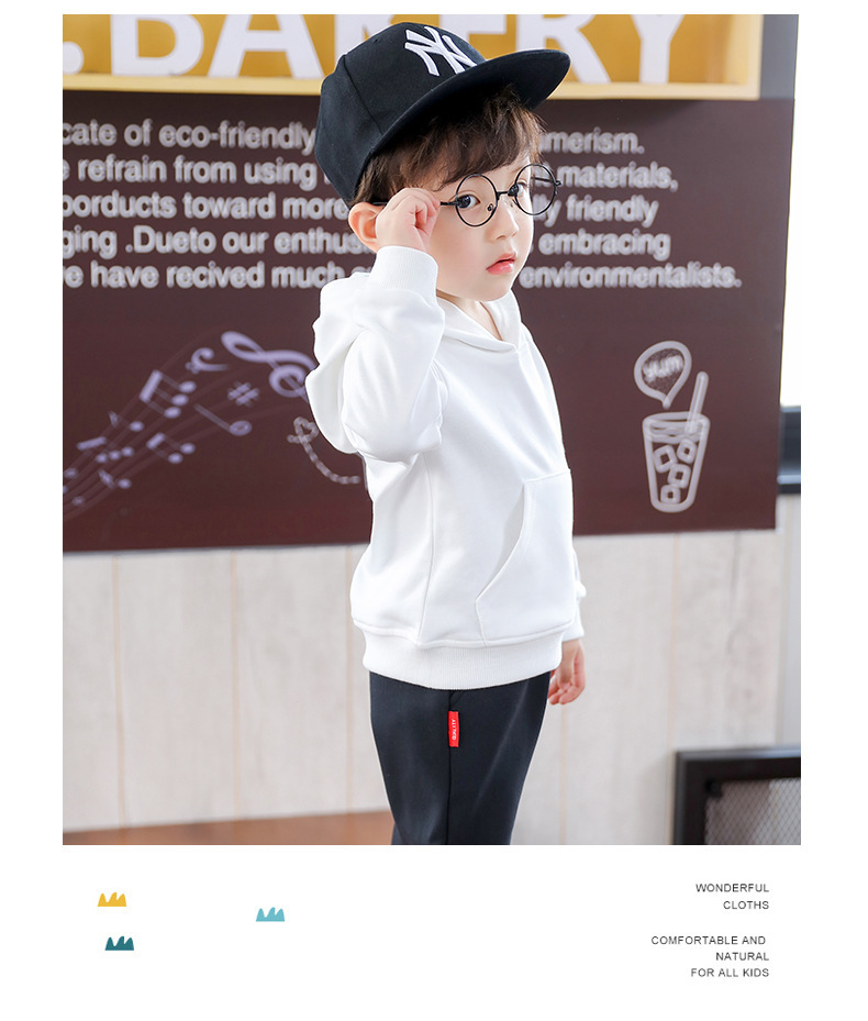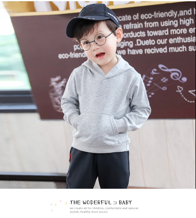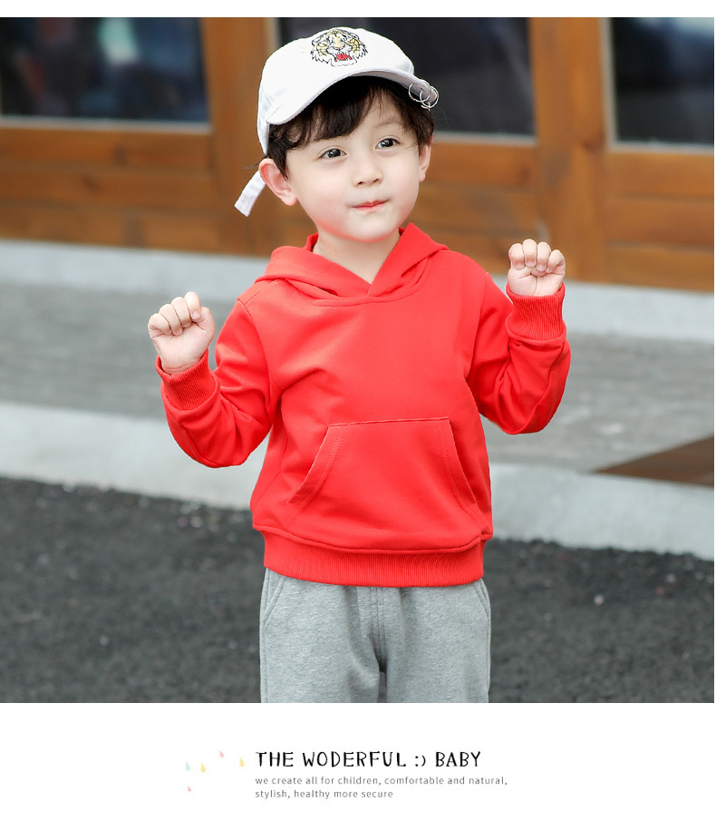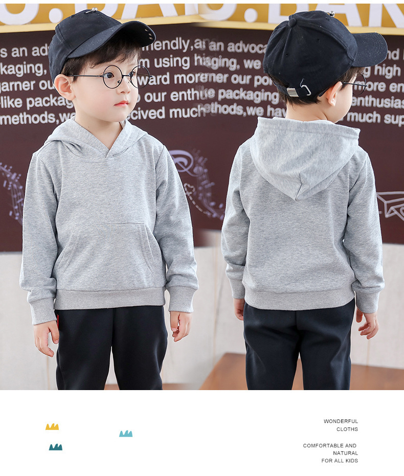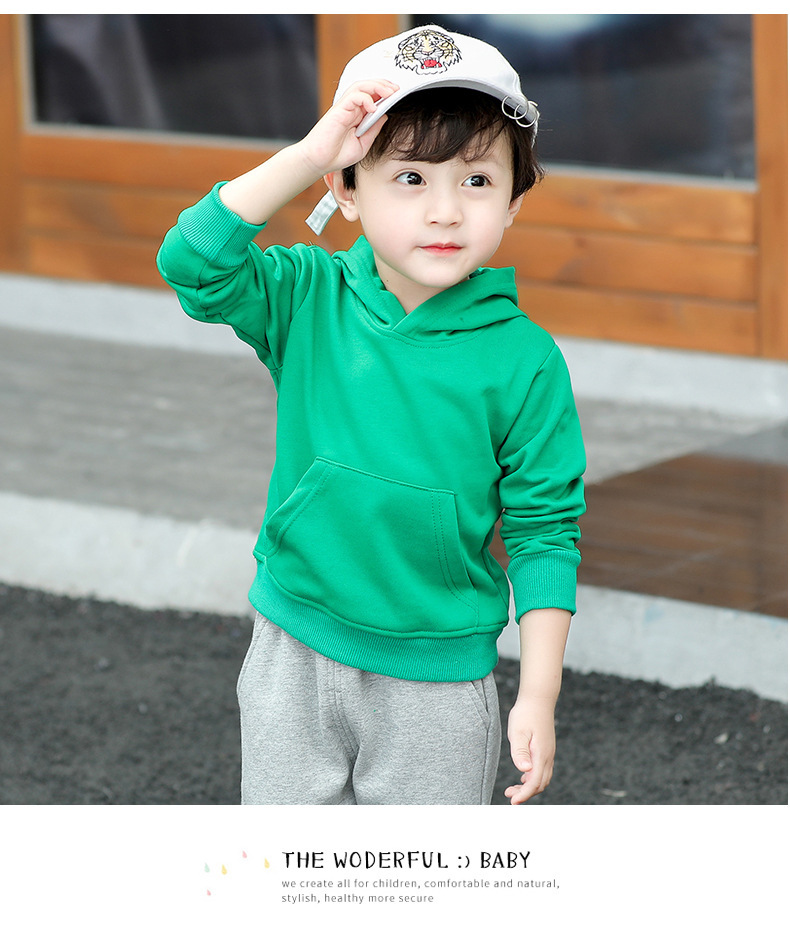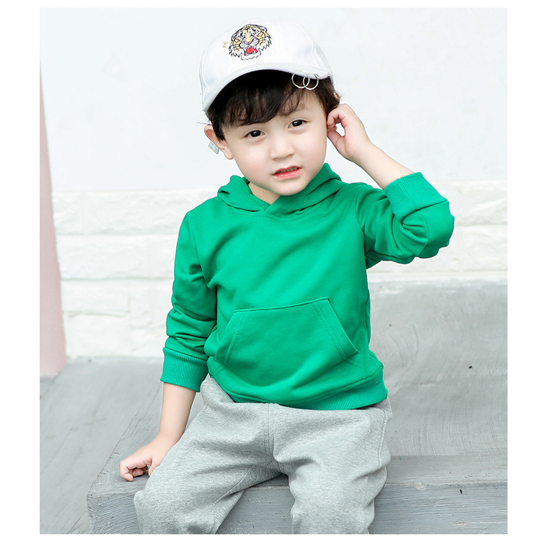 어린이 후드 스웨터 아동복 봄 단색 소년 한국 유행 라운드 넥 어린이 탑 여아 봄 긴 소매스토어 가기