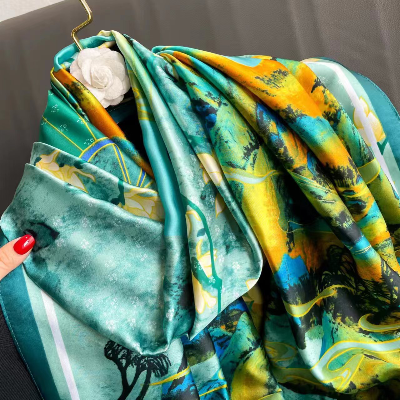 패션 실크 스카프 여성의 여름 자외선 차단제 패션 서양 스타일 비치 스카프 여성의 휴일 숄 에어컨 스카프 외부 스카프