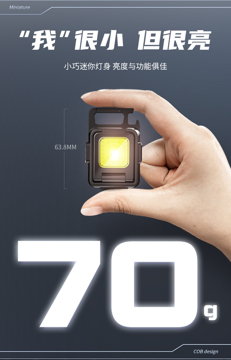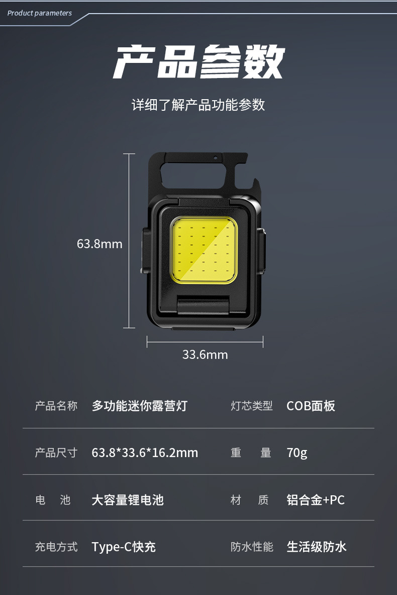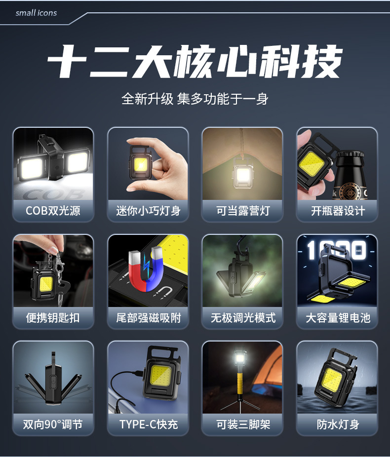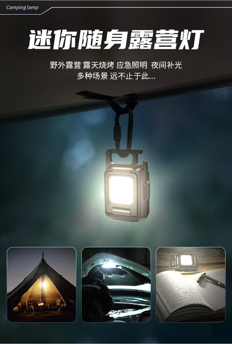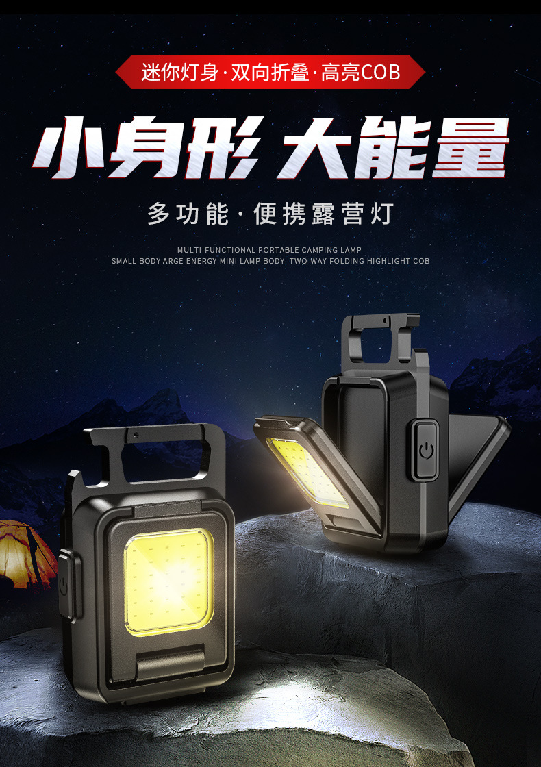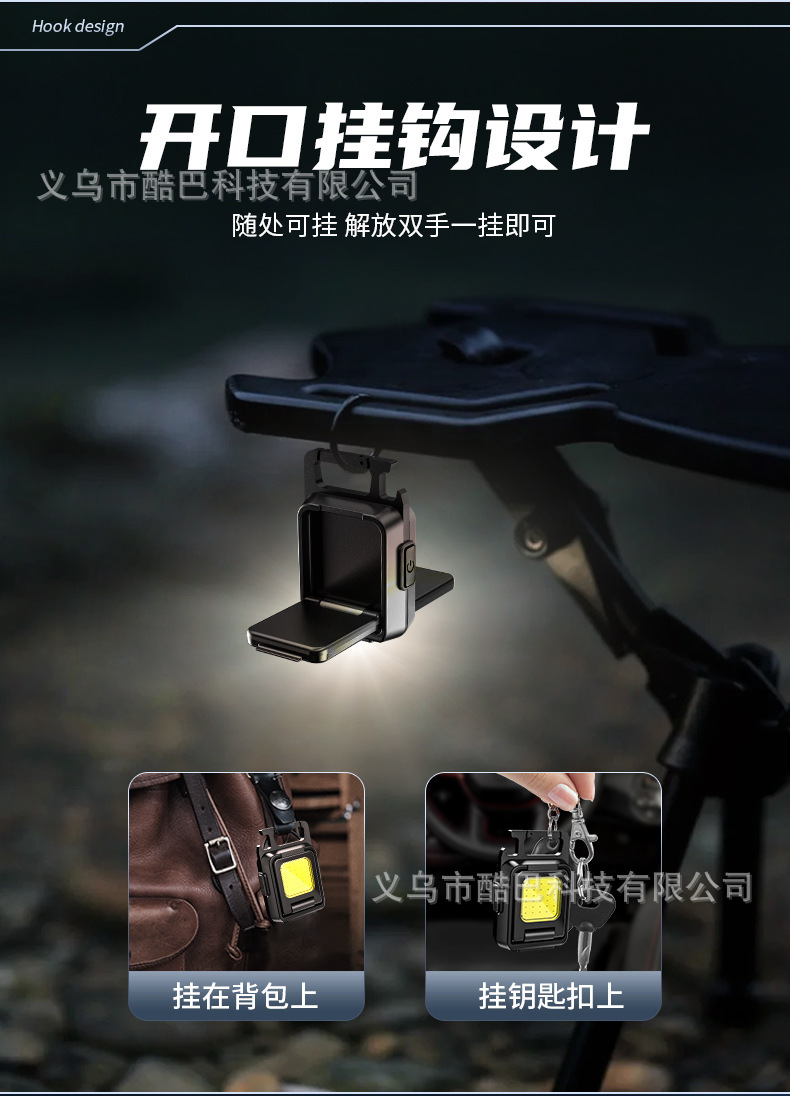다기능 휴대용 COB 미니 키체인 라이트 Type-C 충전식 캠핑등 작업등 야외 손전등