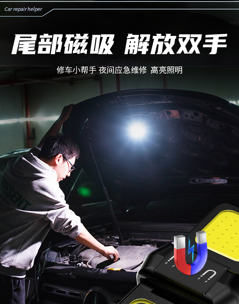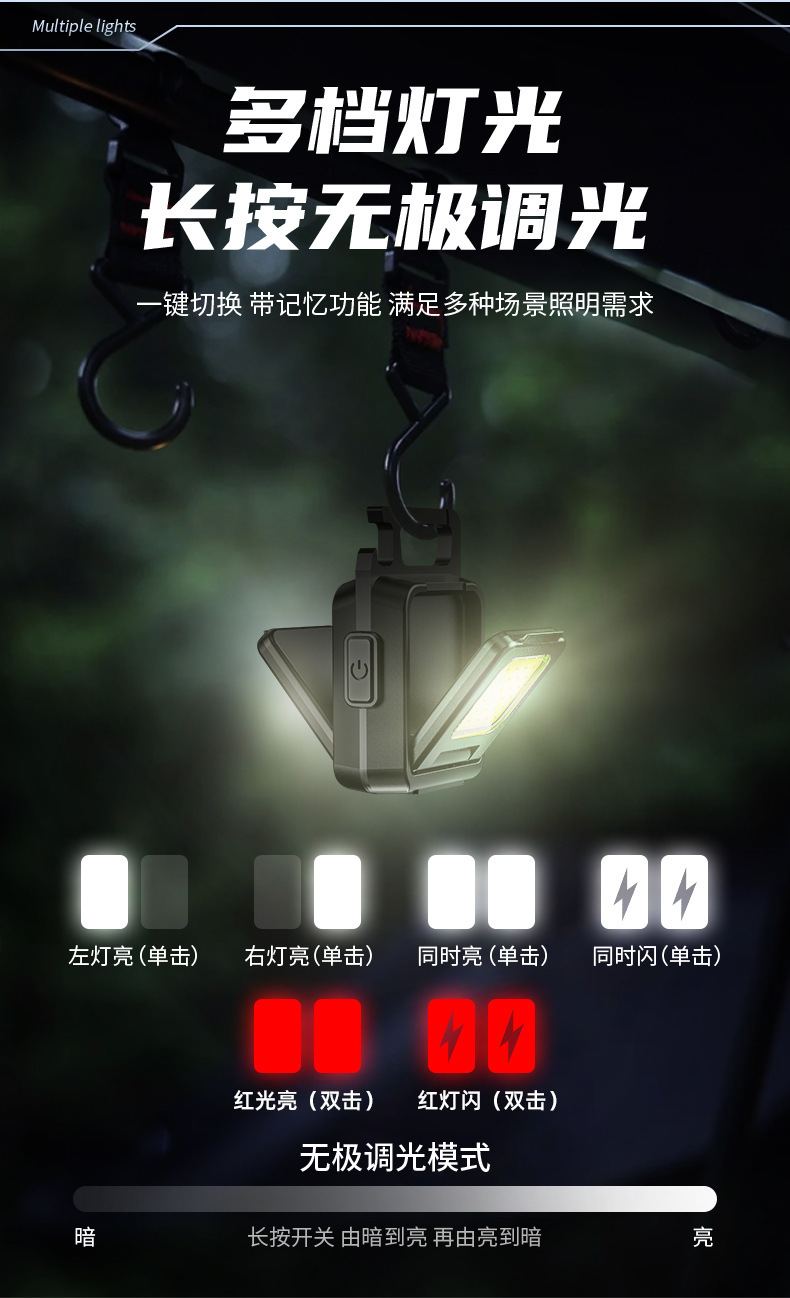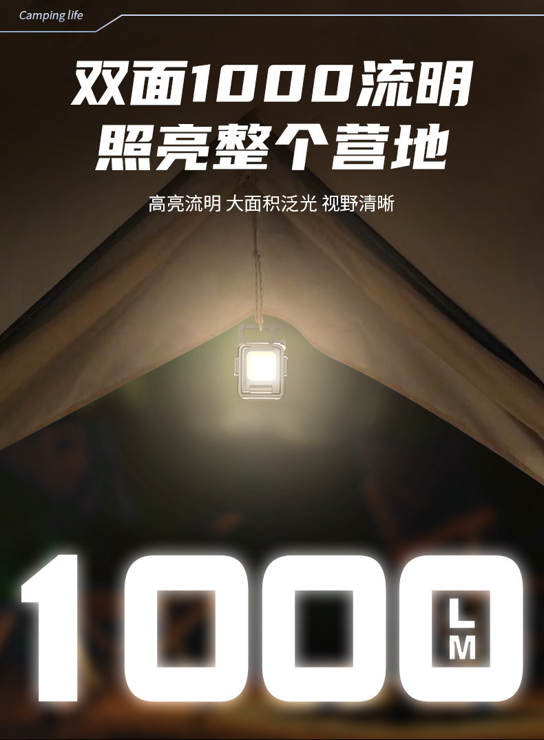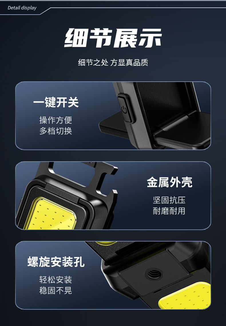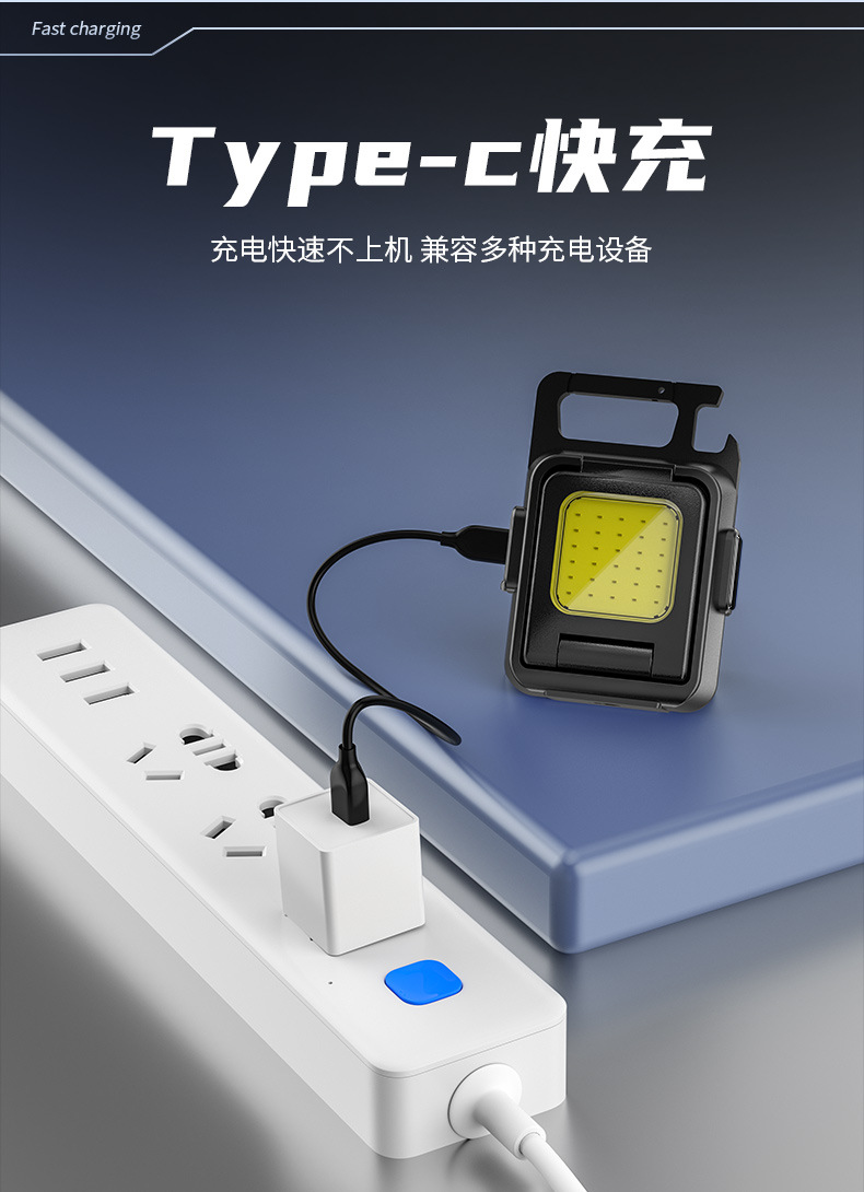 다기능 휴대용 COB 미니 키체인 라이트 Type-C 충전식 캠핑등 작업등 야외 손전등
