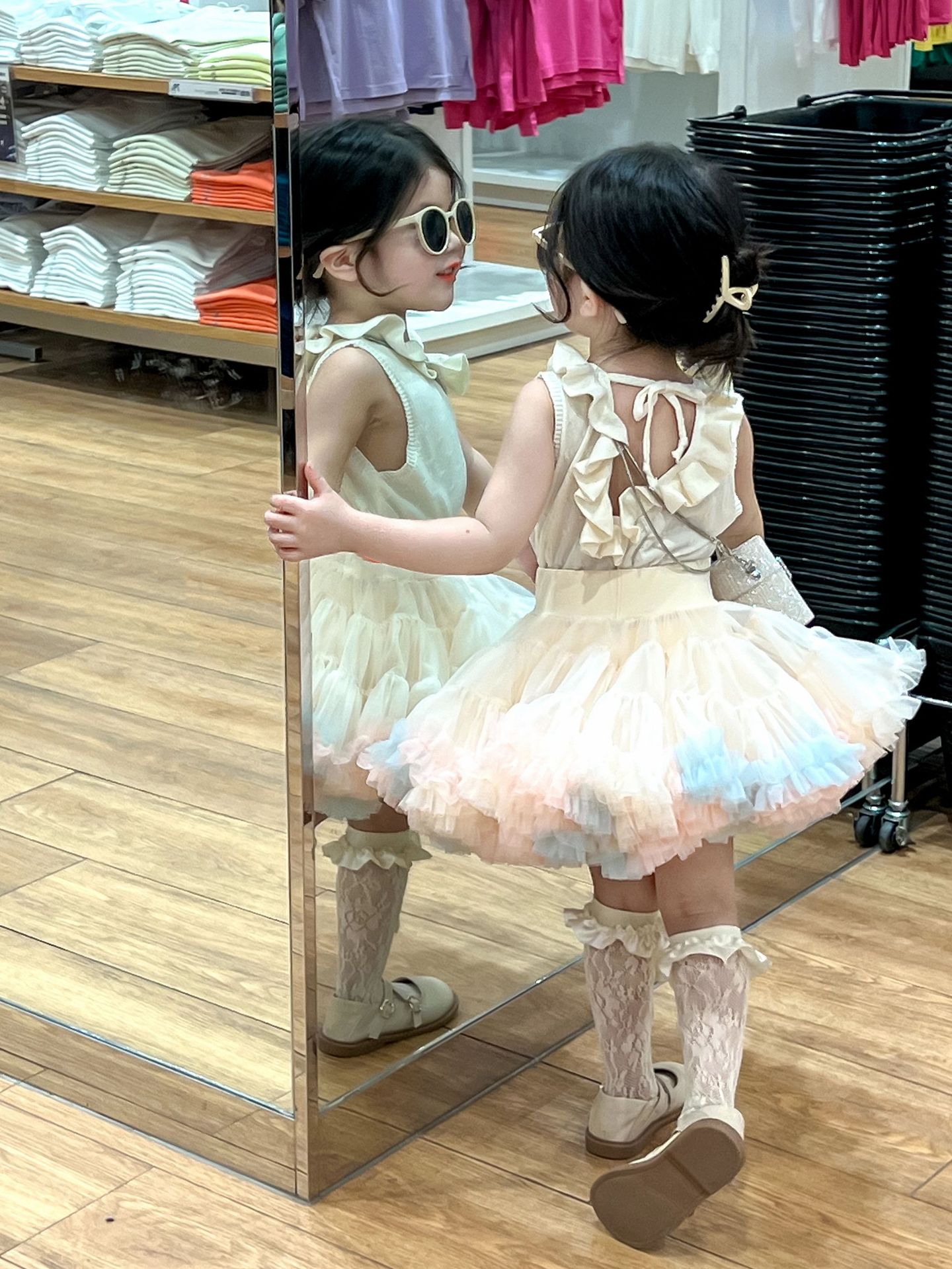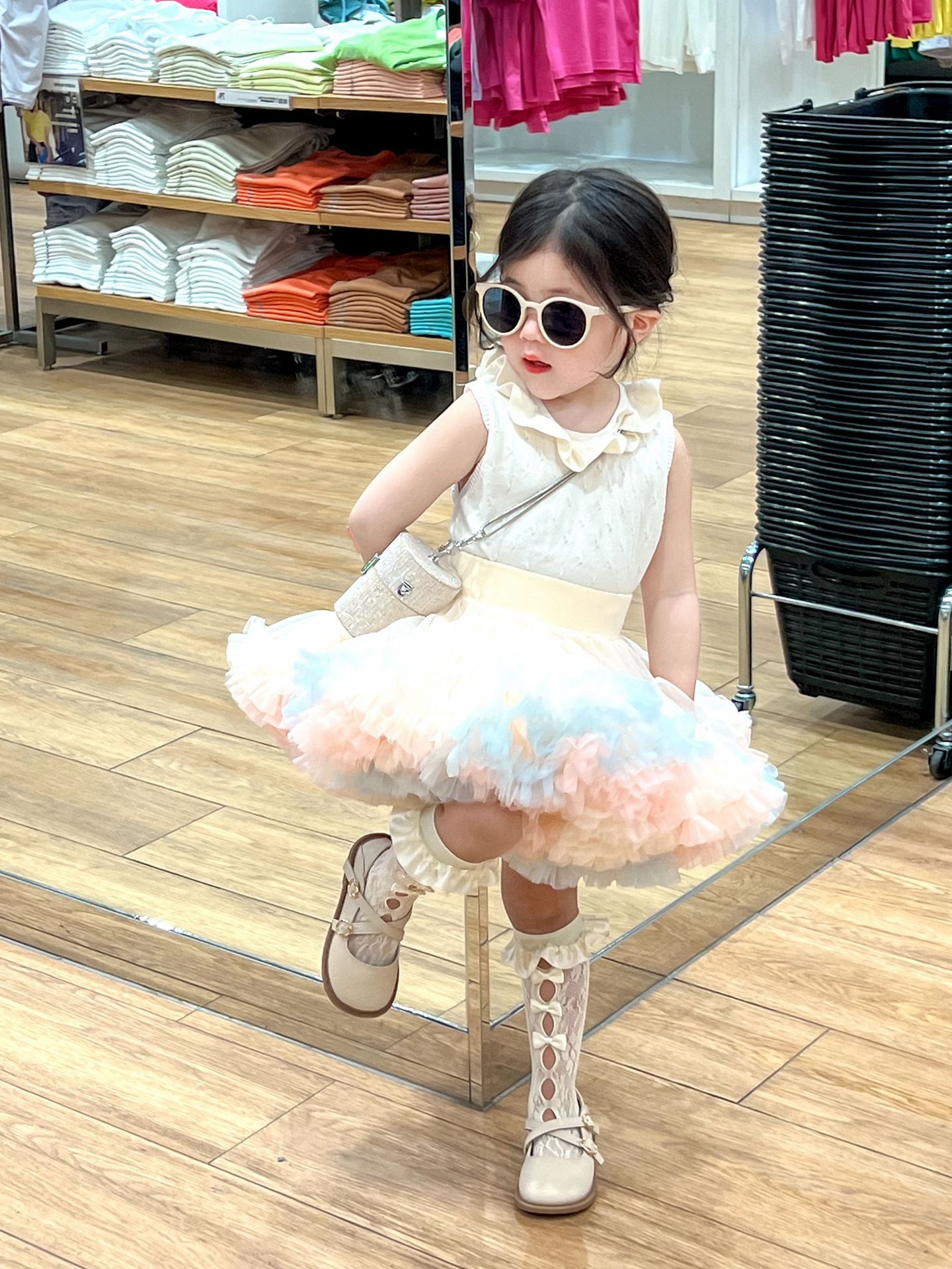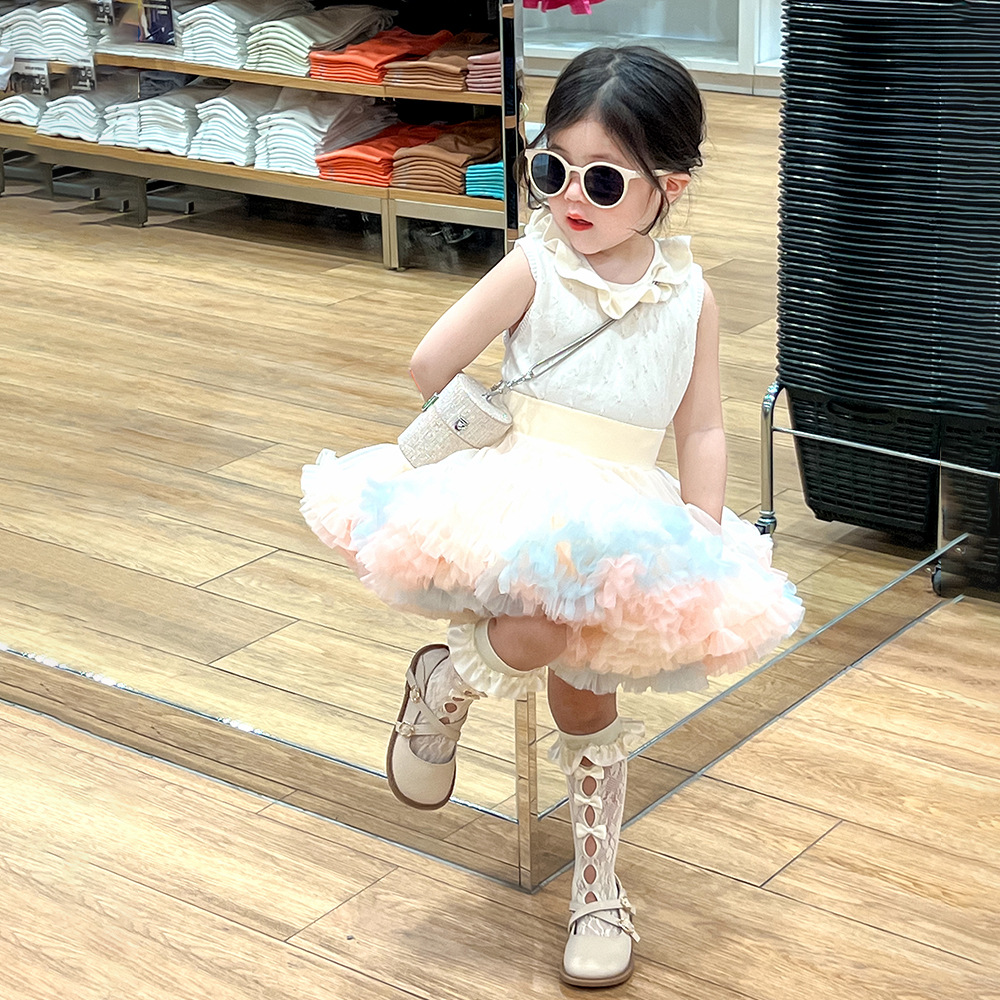 멋진 스핀 아동복 투투 스커트 소녀의 치마 2023 여름 새로운 어린이 부어 스커트 여름 짧은 치마 공주 치마스토어 가기