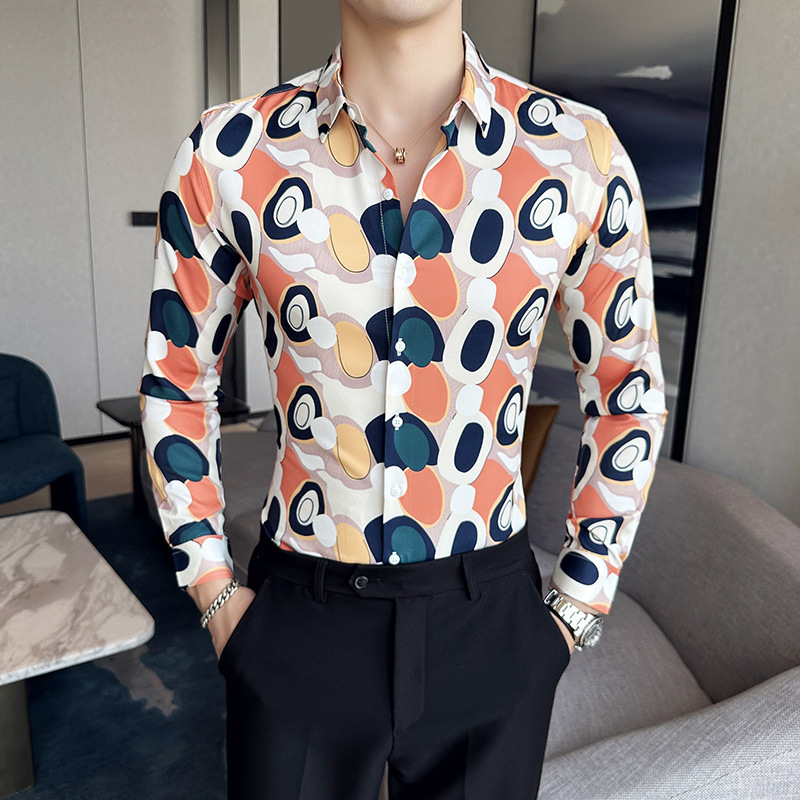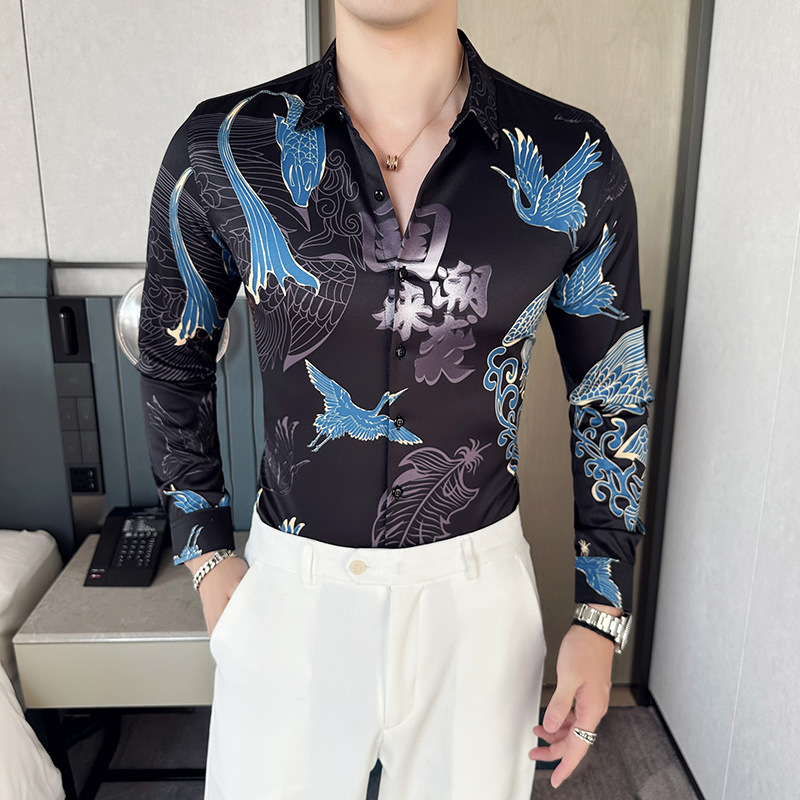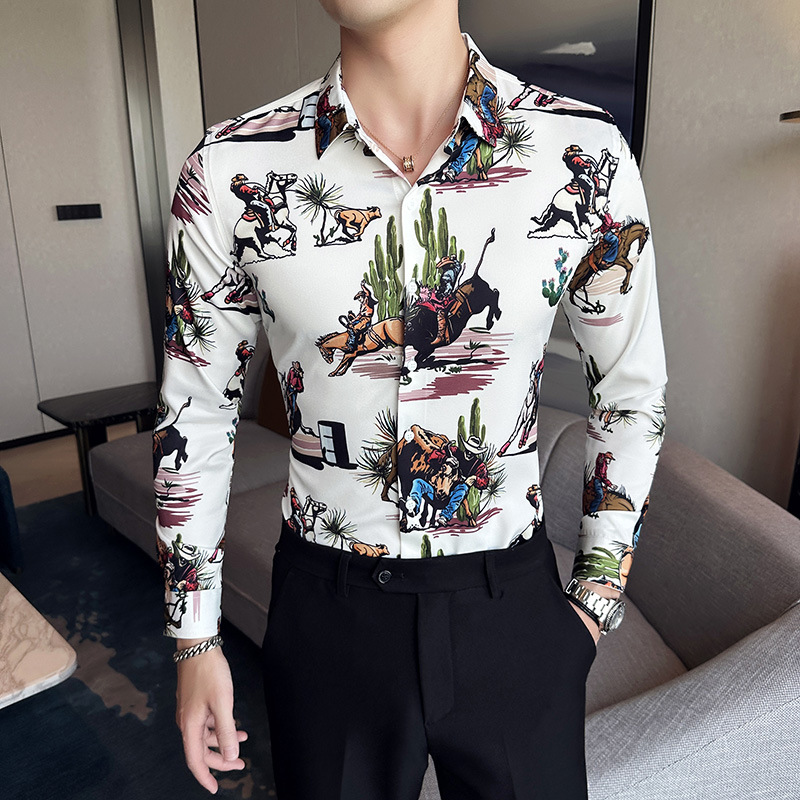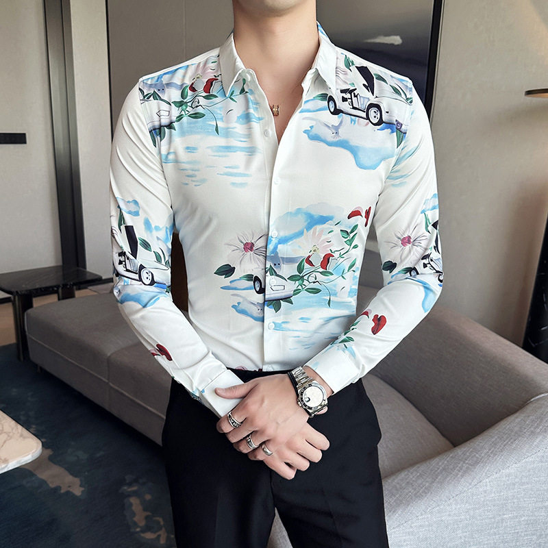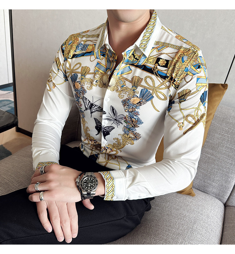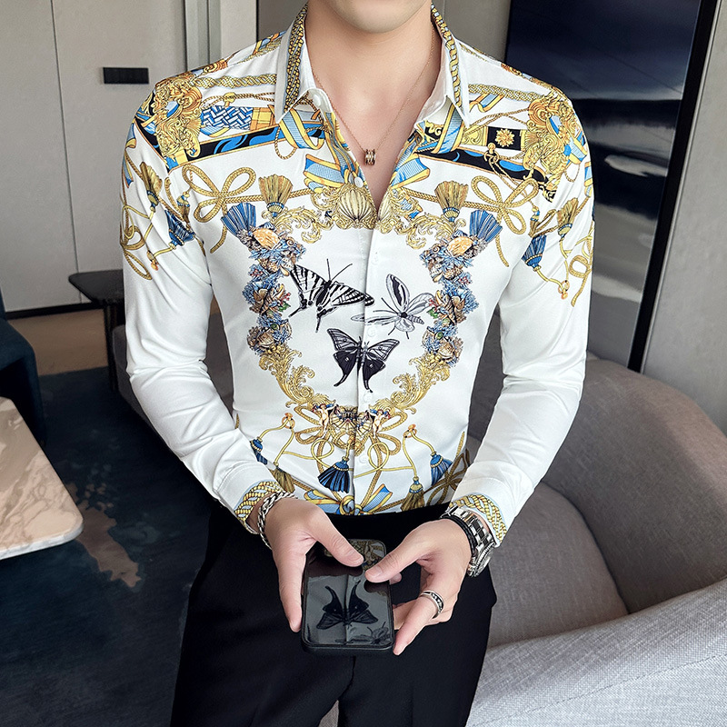 새로운 패션 셔츠 남자의 긴 소매 패션 인쇄 셔츠 슬림 인치 의류 국경 공급 컬렉션 version-P55스토어 가기
