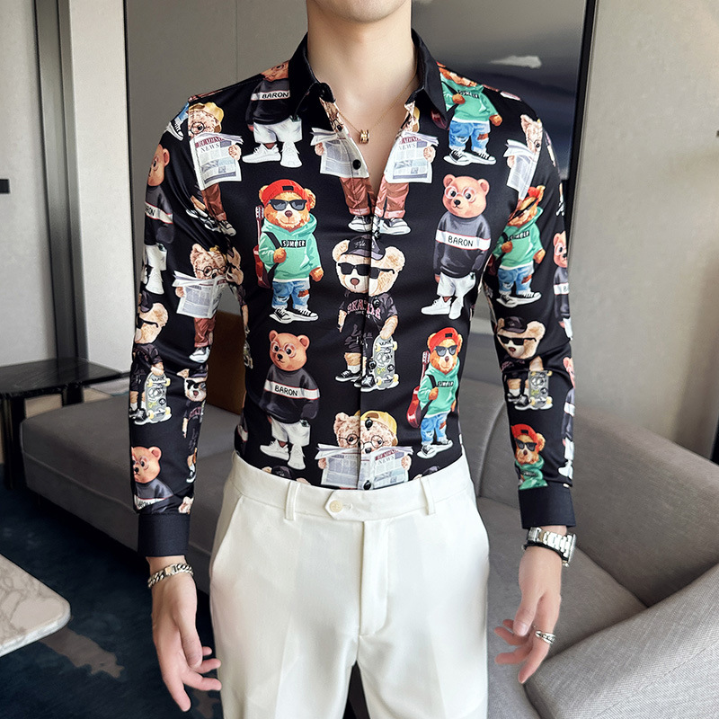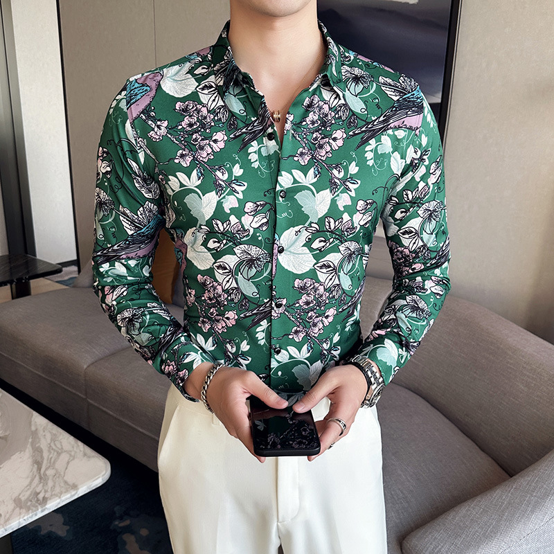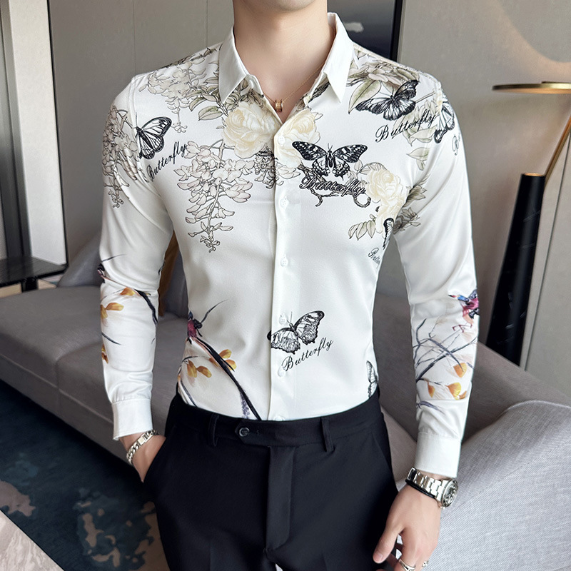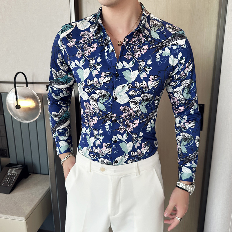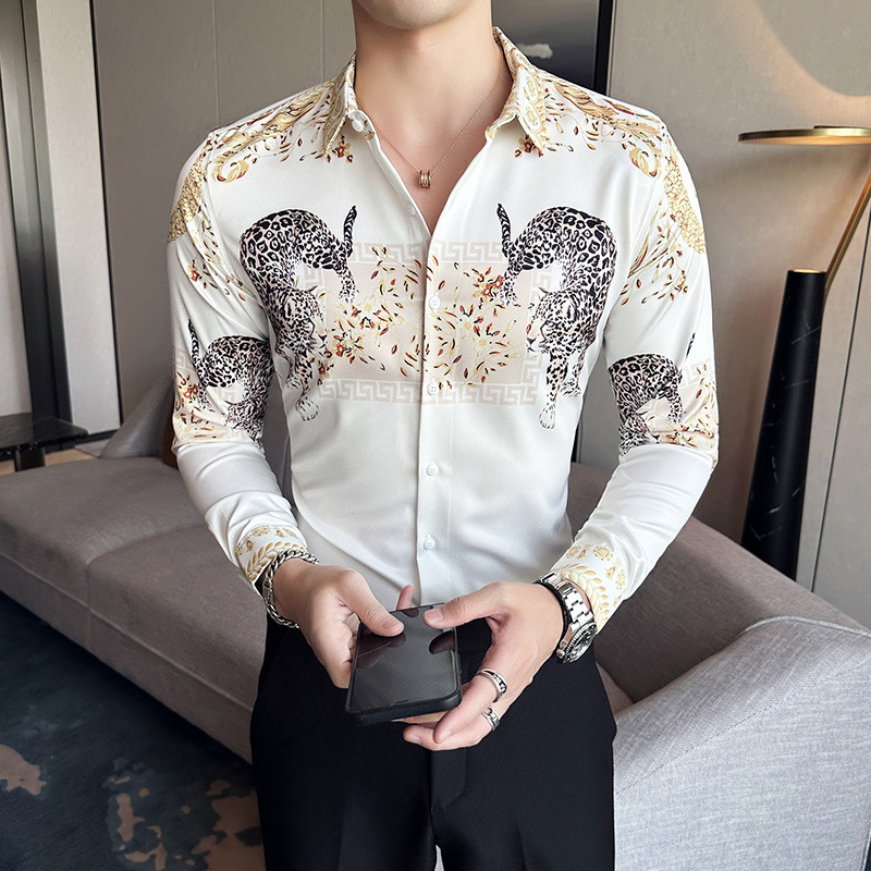 새로운 패션 셔츠 남자의 긴 소매 패션 인쇄 셔츠 슬림 인치 의류 국경 공급 컬렉션 version-P55스토어 가기