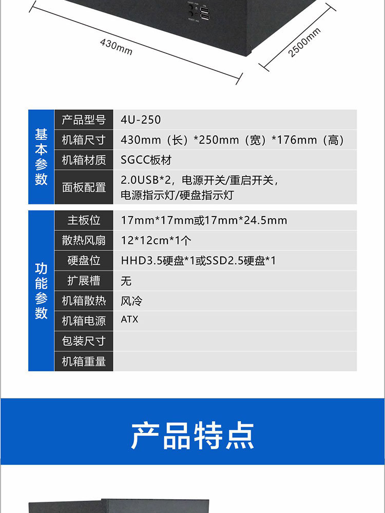 4U250 짧은 산업 제어 서버 섀시 공랭식 산업 서비스 컴퓨터 4U 랙 데스크탑 컴퓨터 섀시스토어 가기