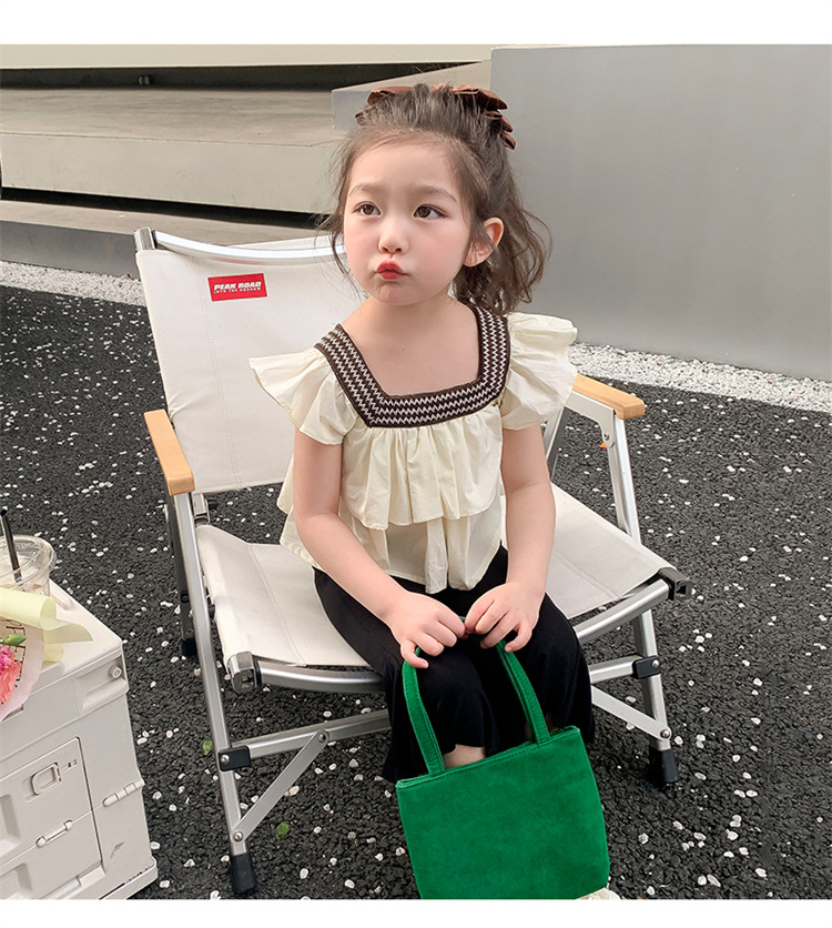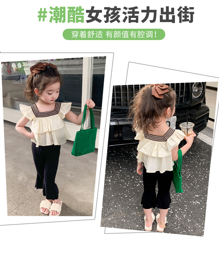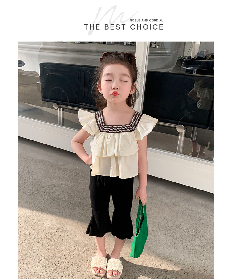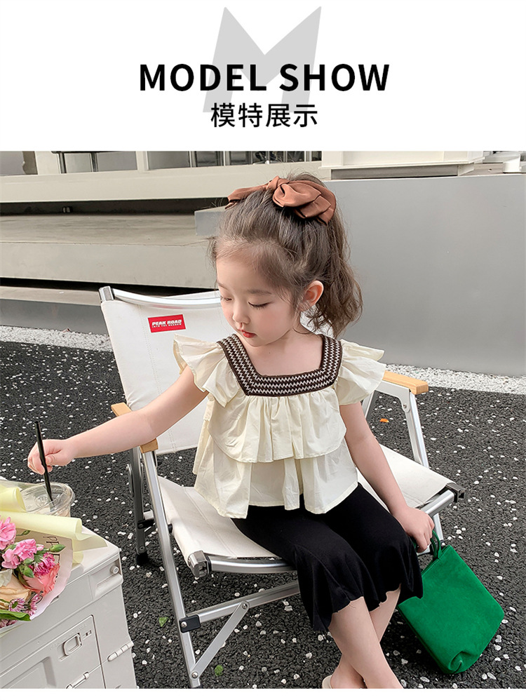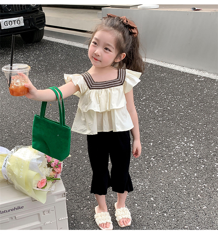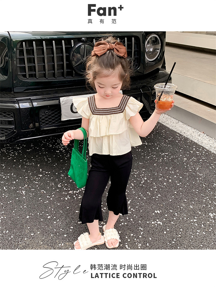 소녀의 작은 비행 소매 웨빙 정장 2025 여름 새 스타일 아기 소녀의 세련된 투피스 세트 중소 아동 의류스토어 가기