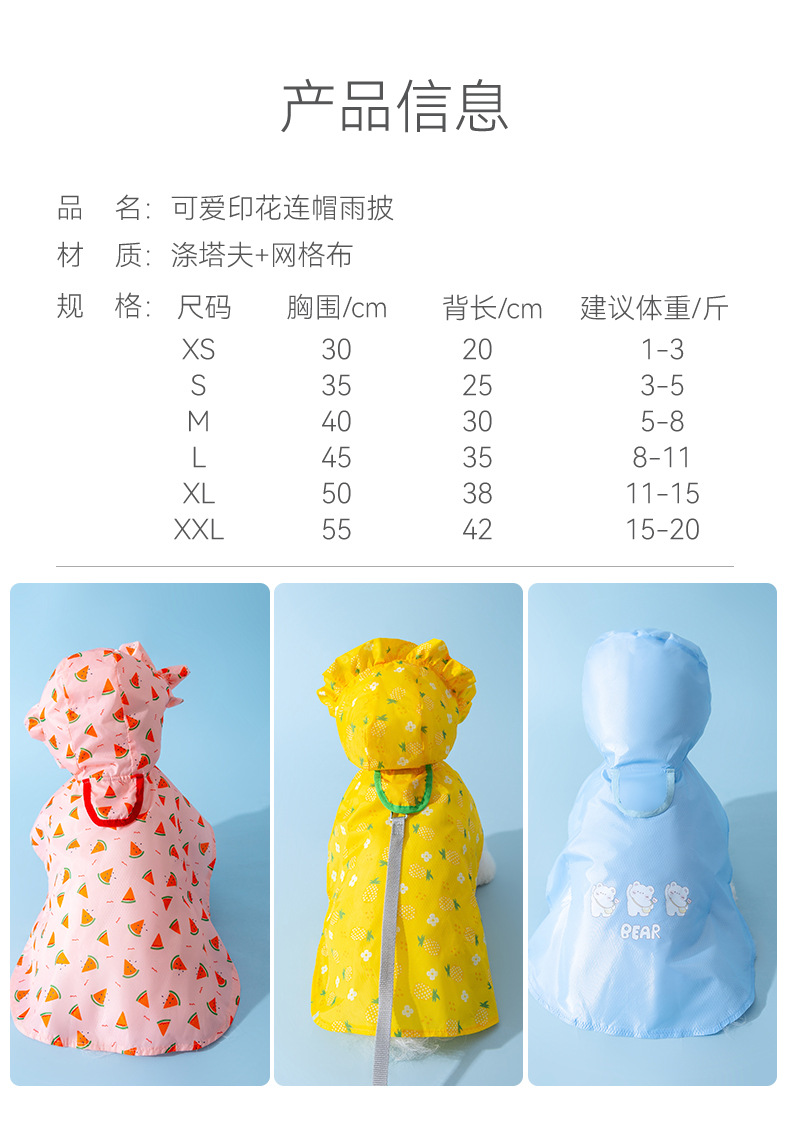 개 귀여운 인쇄 후드 판초 작은 개 테디 비오는 날 애완 동물 두 다리 판초 드로어블 방수 비옷
