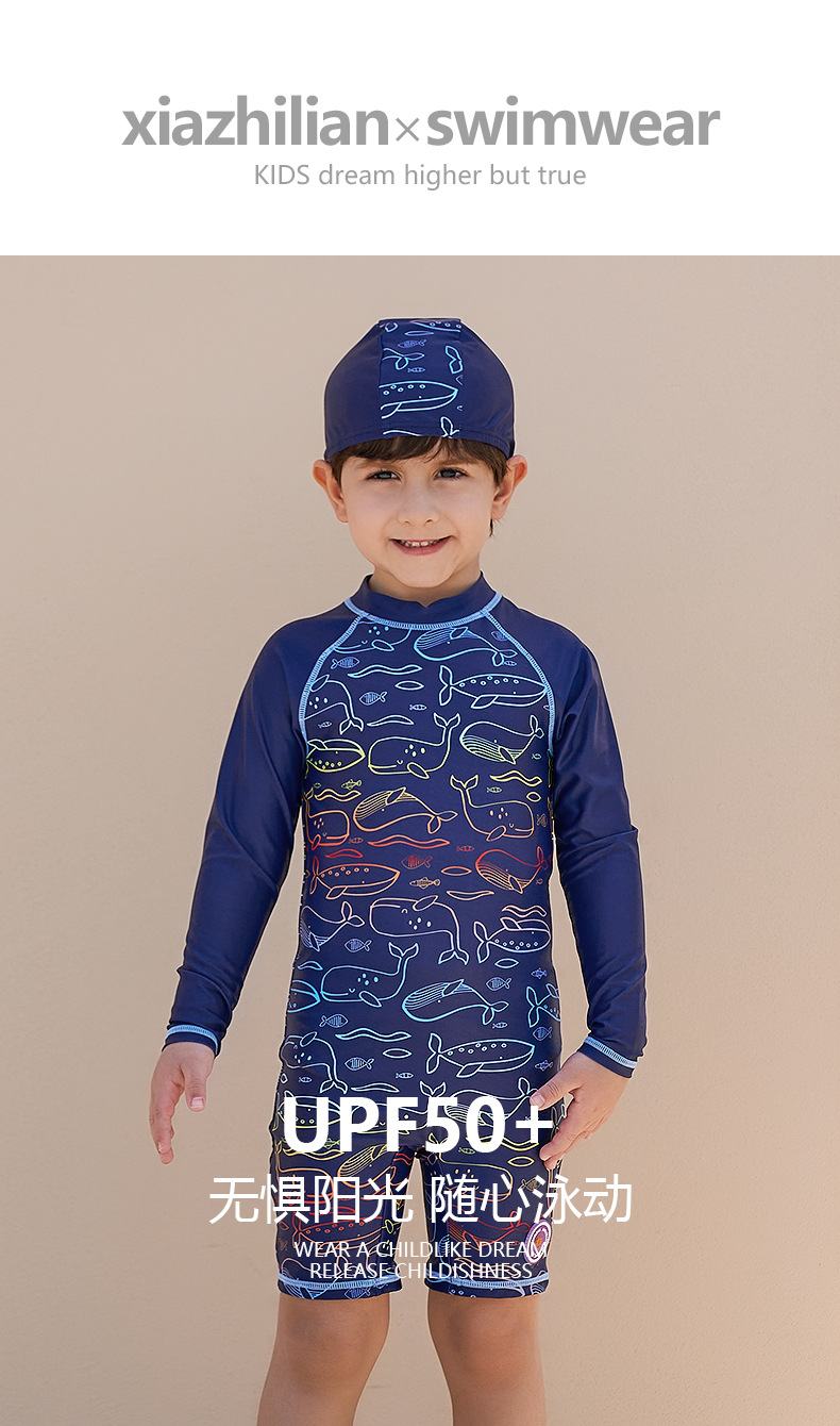 韩国韩范儿童泳衣男童宝宝婴儿游泳衣中小童长袖防晒连体冲浪服潮