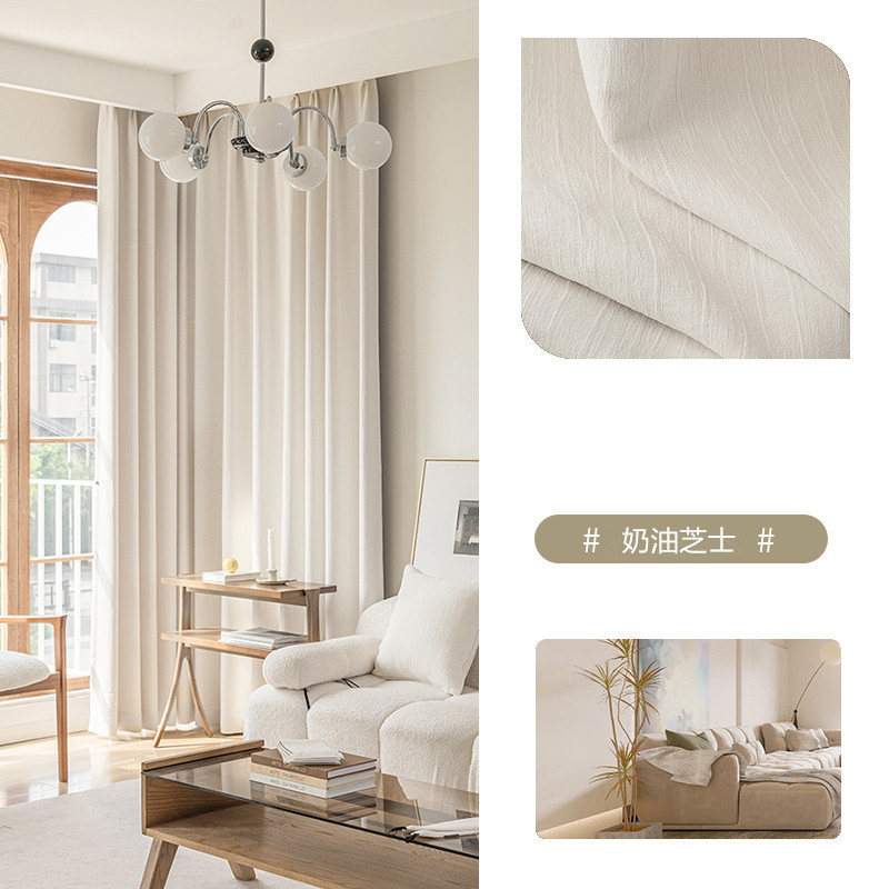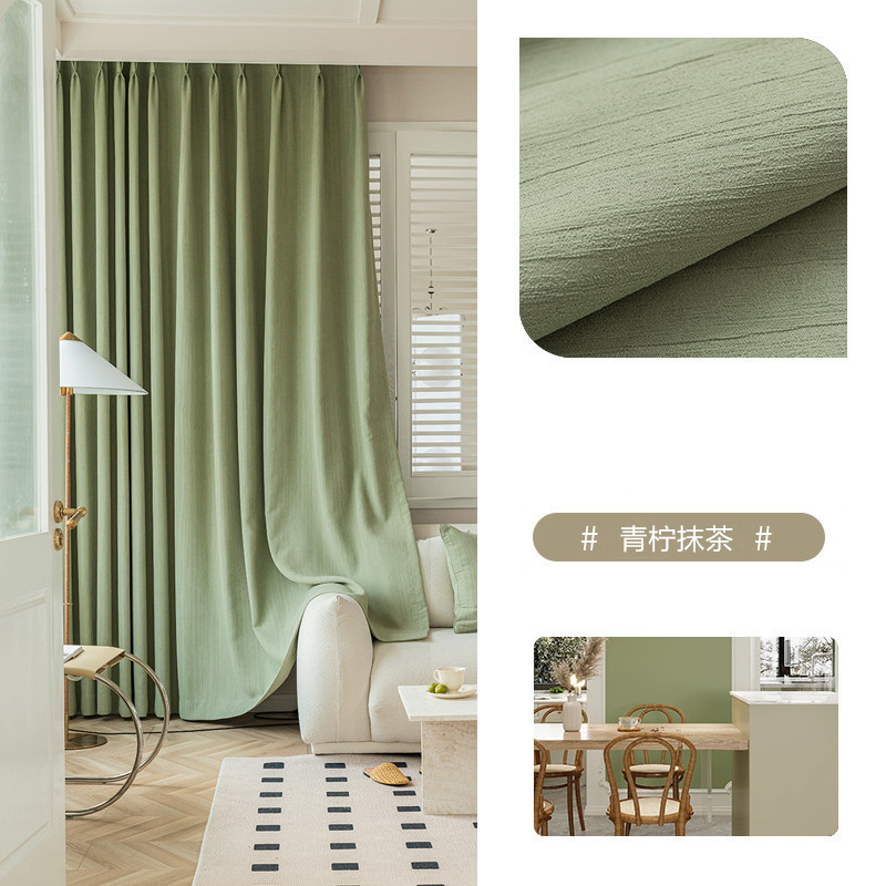 구겨진 셔닐 실 두꺼운 암막 커튼 거실 침실 현대 간단한 새로운 스타일 일본 빛 고급 완제품