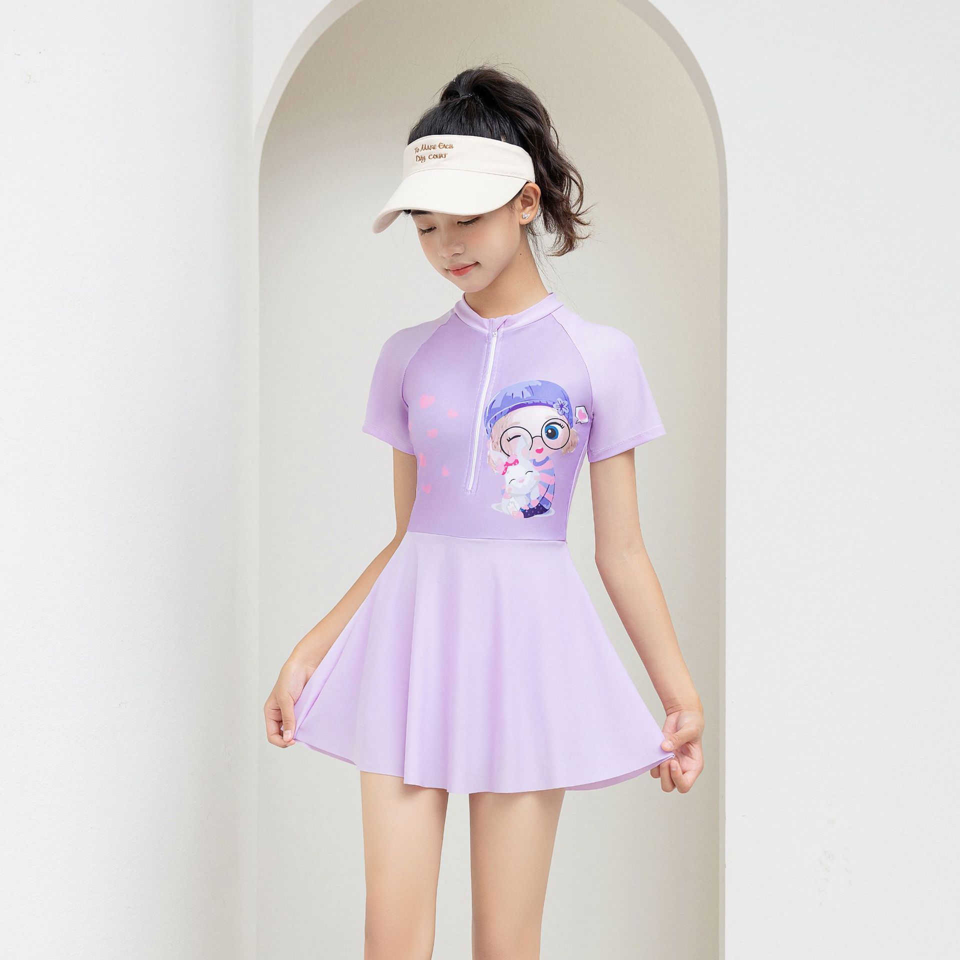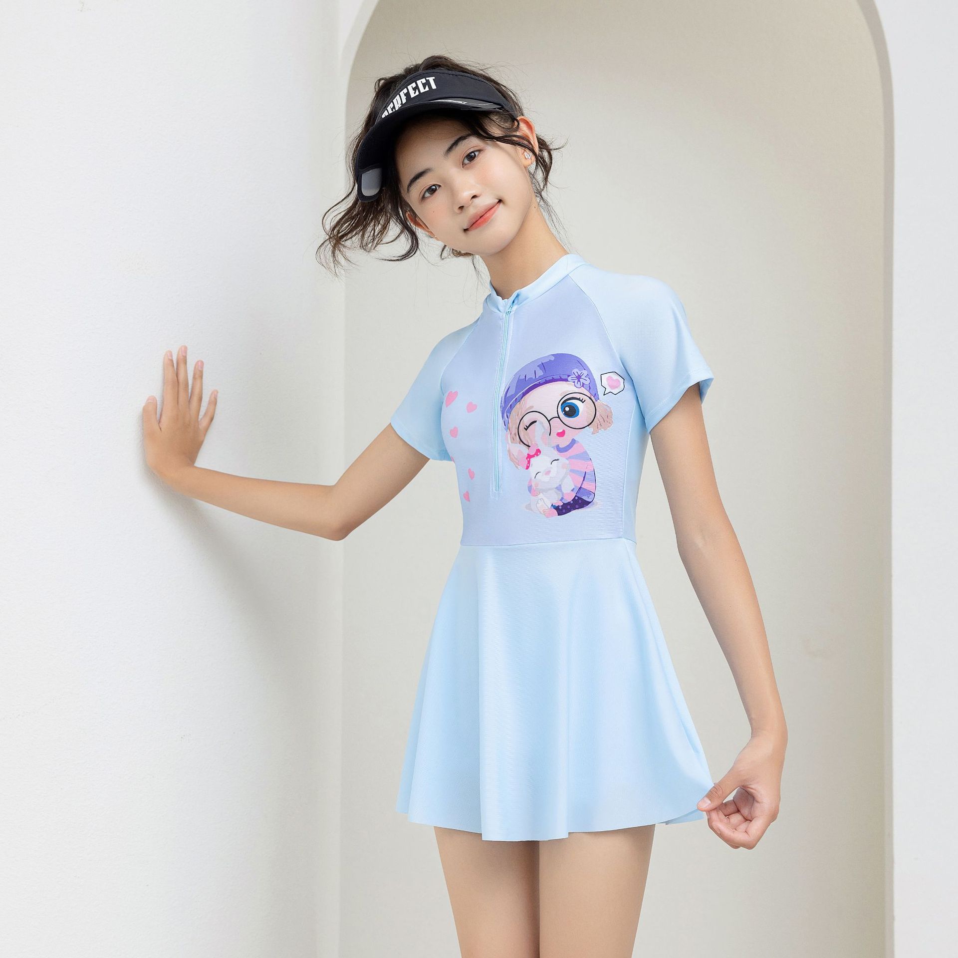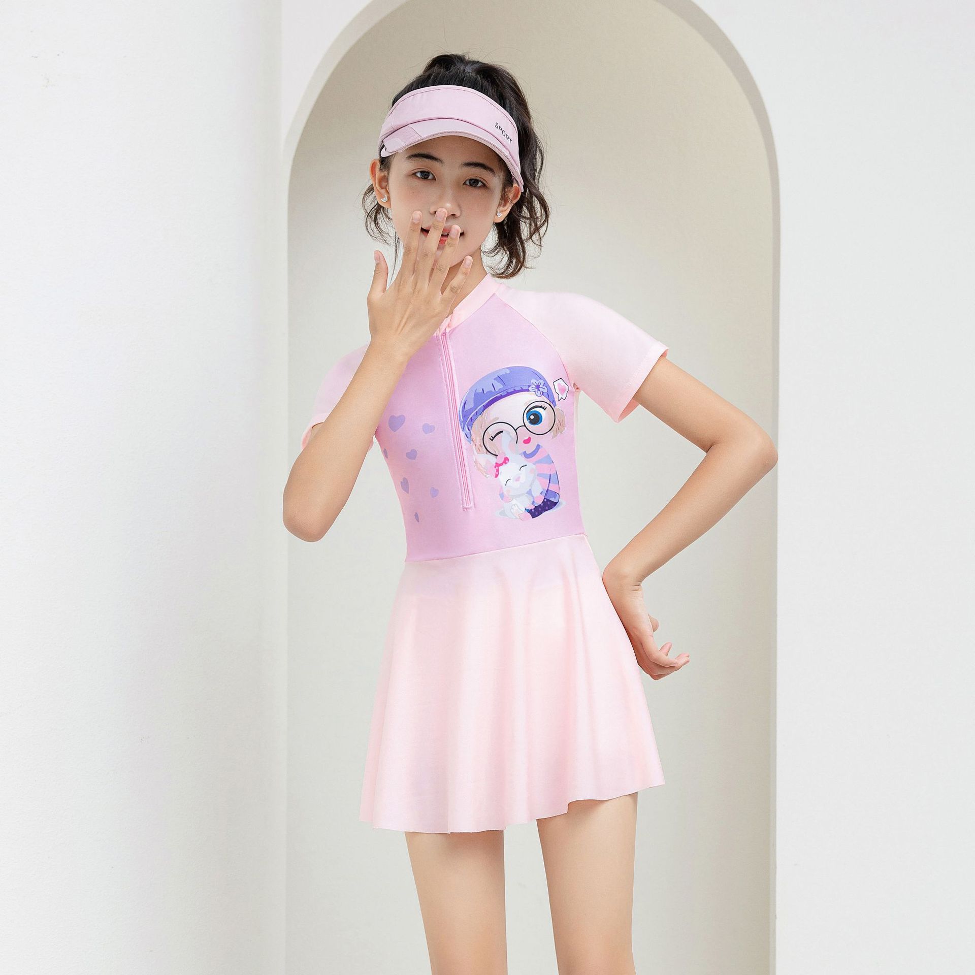 2025 새로운 어린이 수영복 소녀 만화 속건성 원피스 중대형 어린이 학생 스커트 스타일 작은 공주 학교 수영복스토어 가기