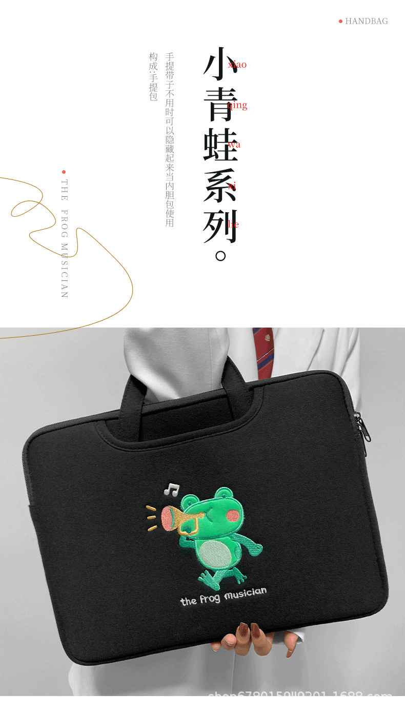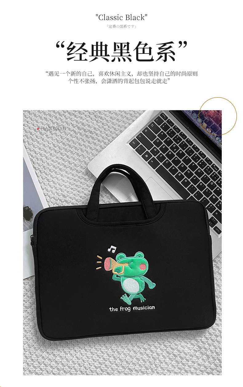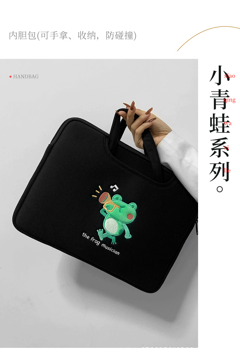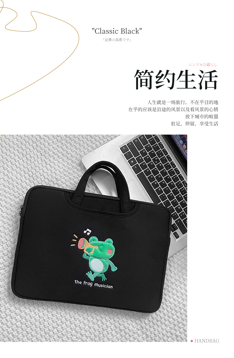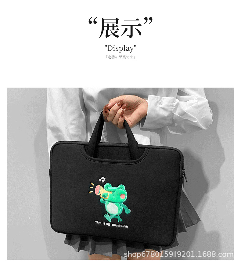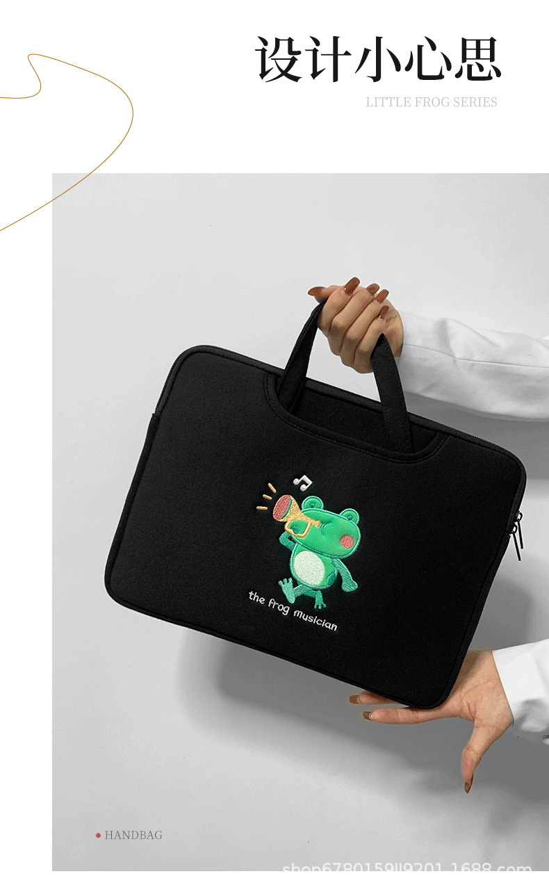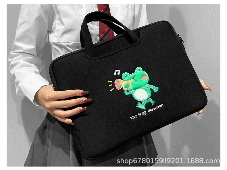 작은 개구리 컴퓨터 핸드백 자수 충격 방지 애플 HP 기장 13.3/14/15.6 인치 16 노트북 가방스토어 가기