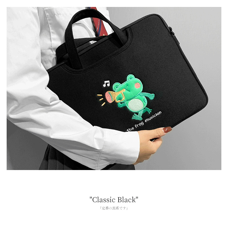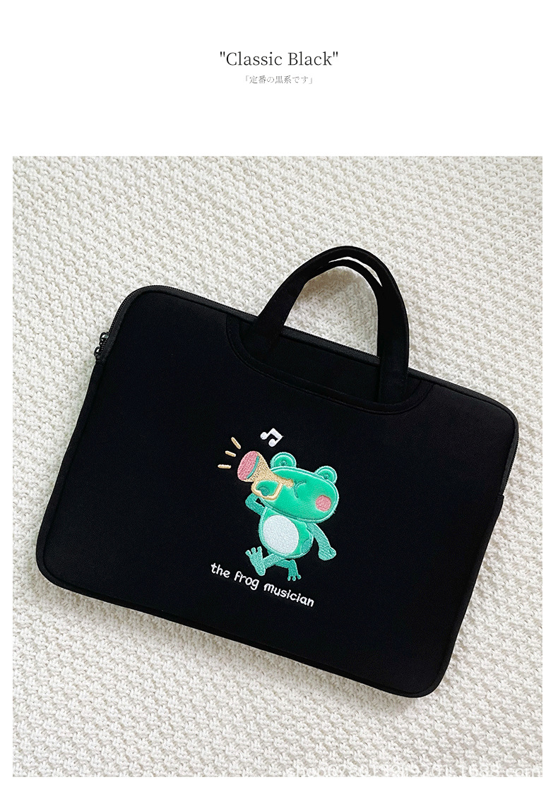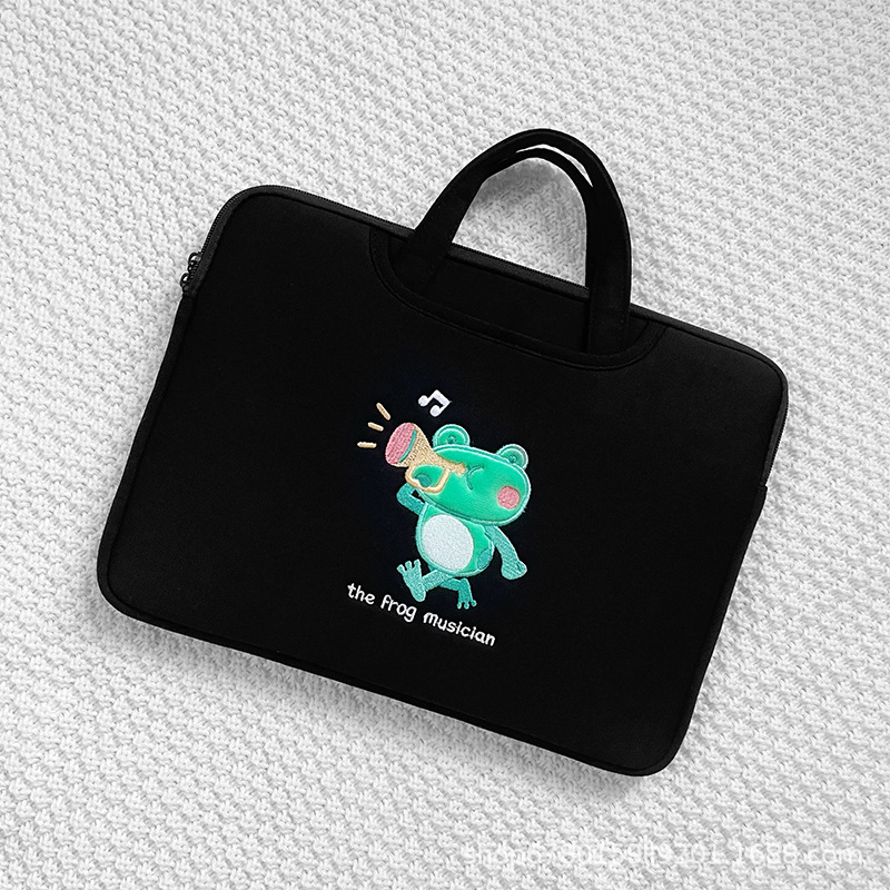 작은 개구리 컴퓨터 핸드백 자수 충격 방지 애플 HP 기장 13.3/14/15.6 인치 16 노트북 가방