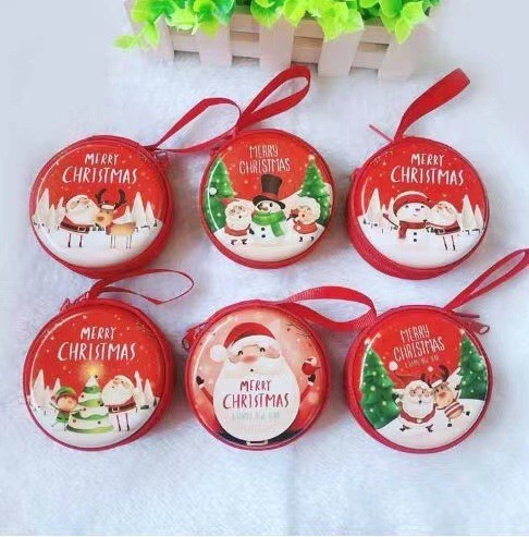 드래곤 이어 크리스마스 틴플레이트 동전 지갑 만화 미니 라운드 헤드셋 지퍼 가방 어린이날 선물 가방