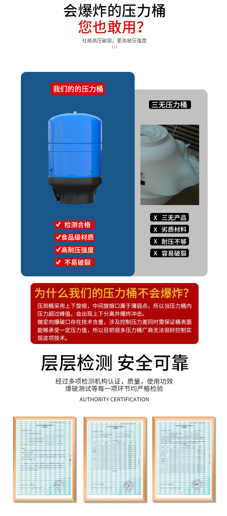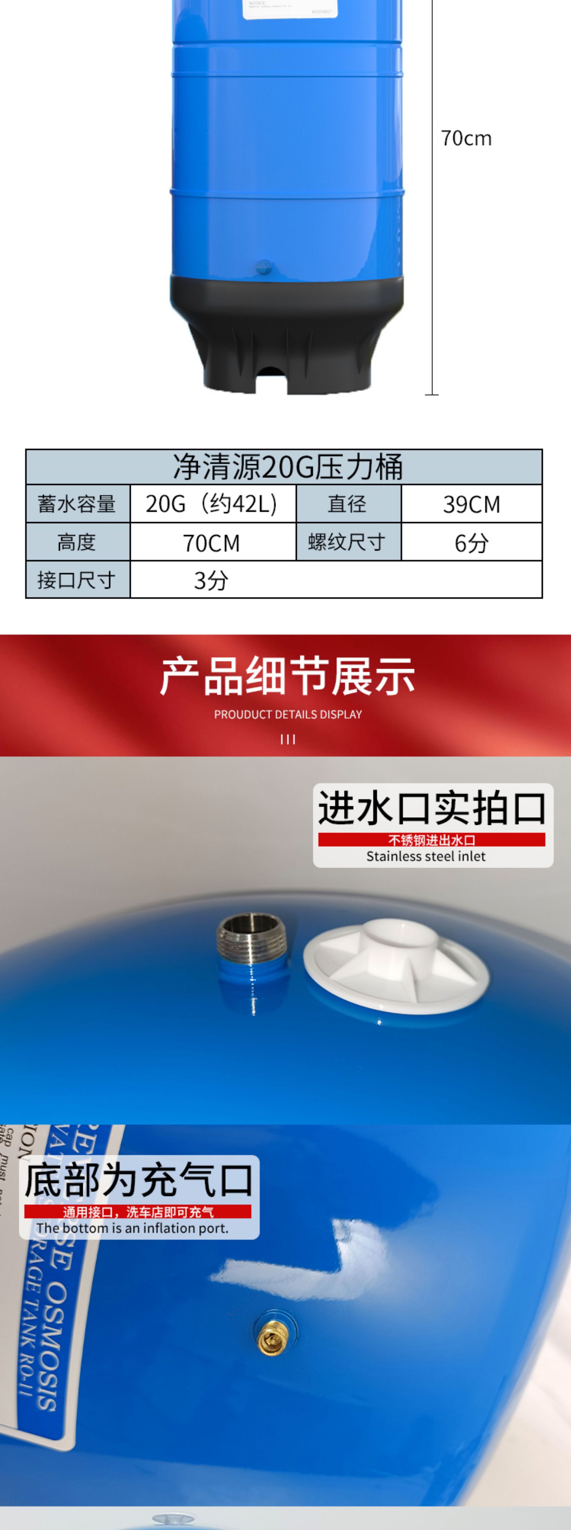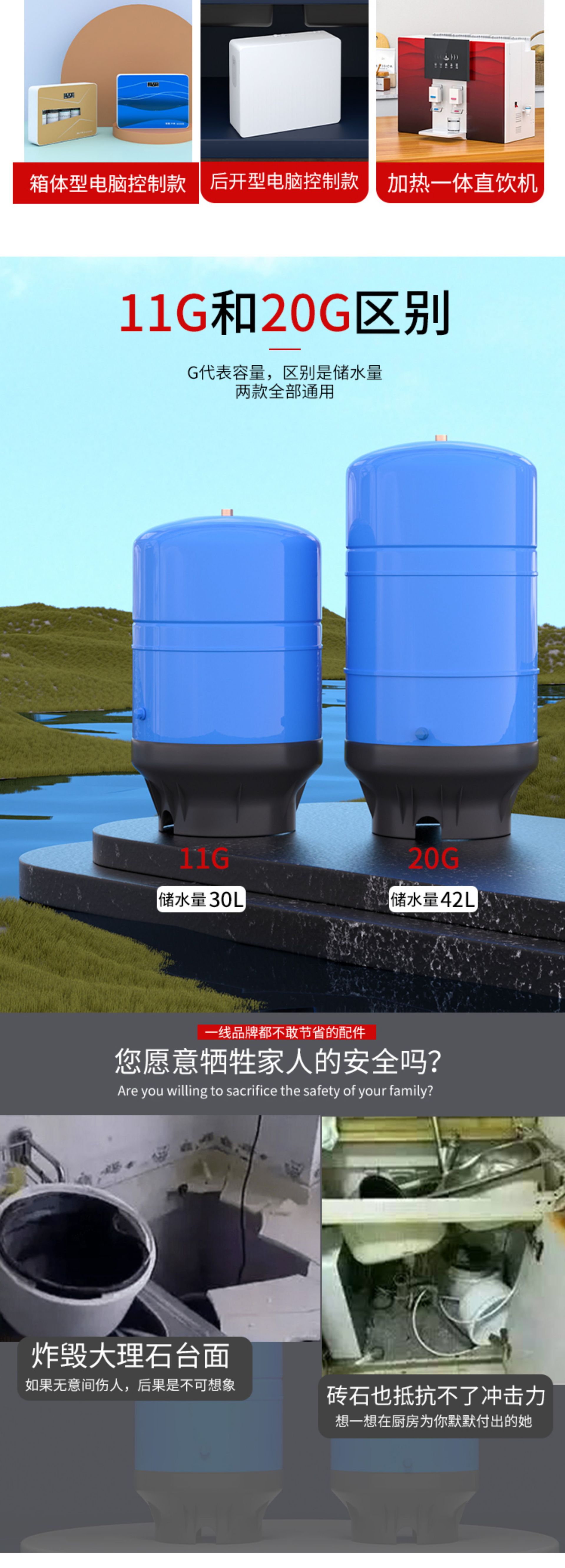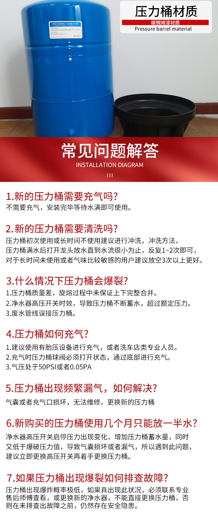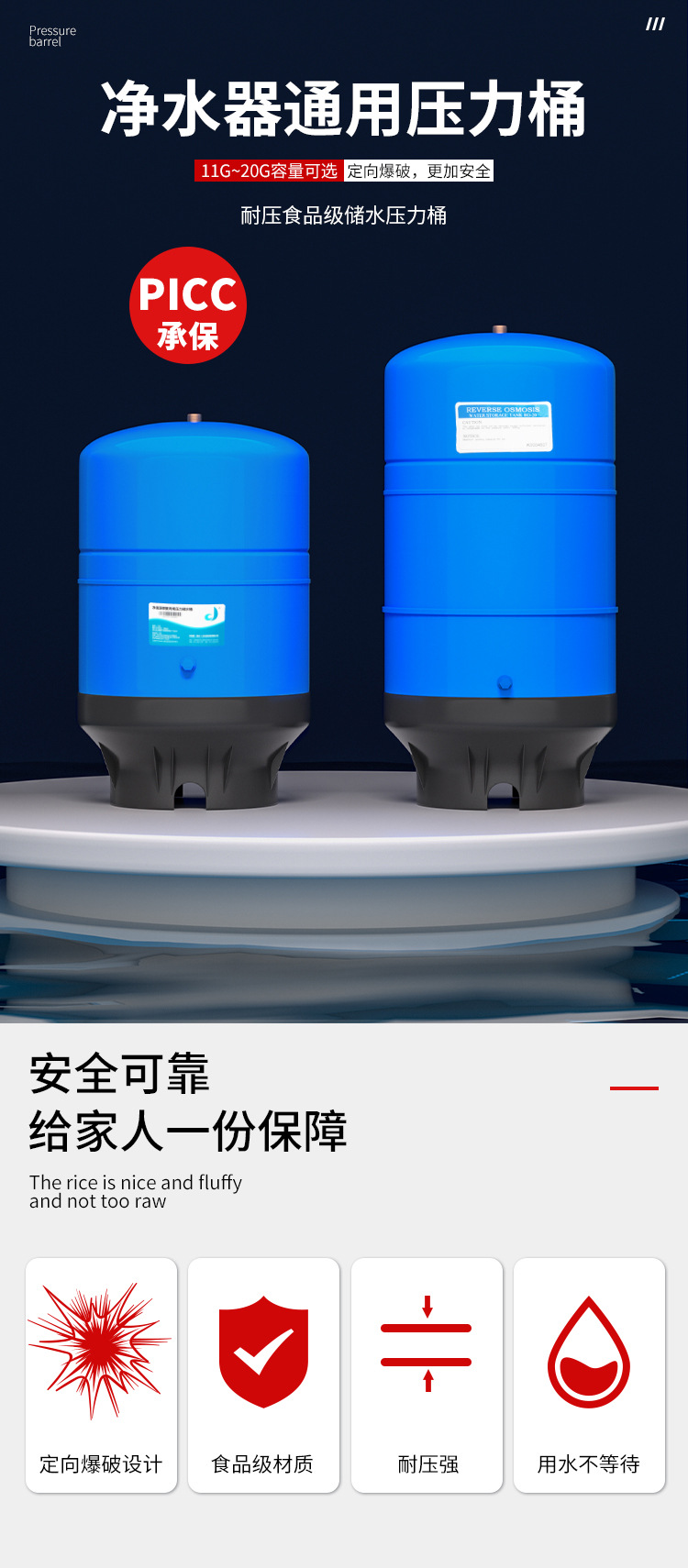 Qingyuan 11/20g 압력 배럴 가정용 상업용 직접 물 디스펜서 필터 역삼투 RO 정수기 물 저장 탱크