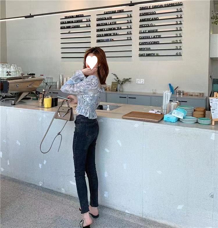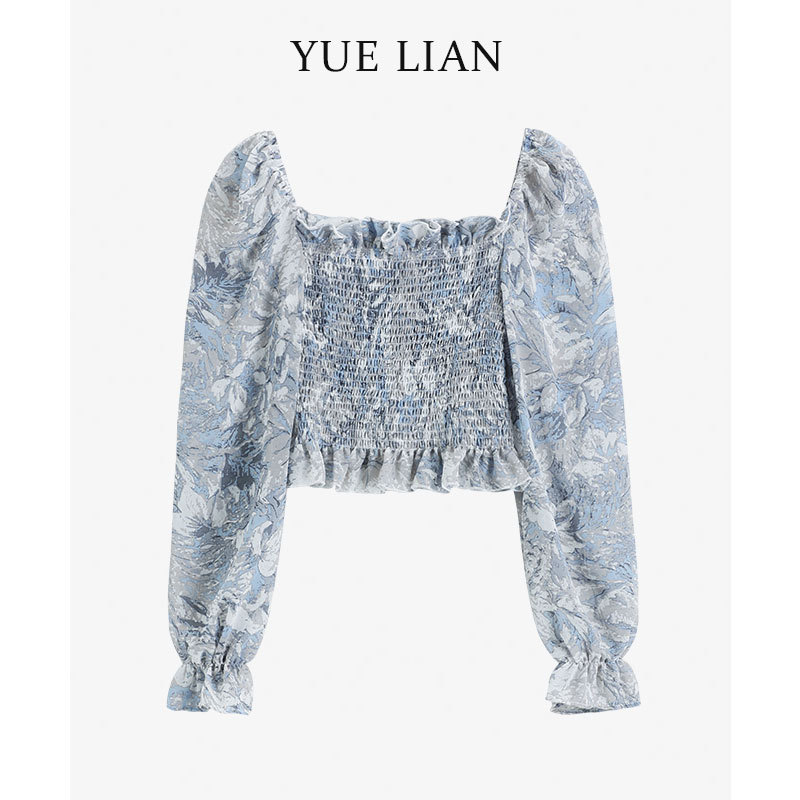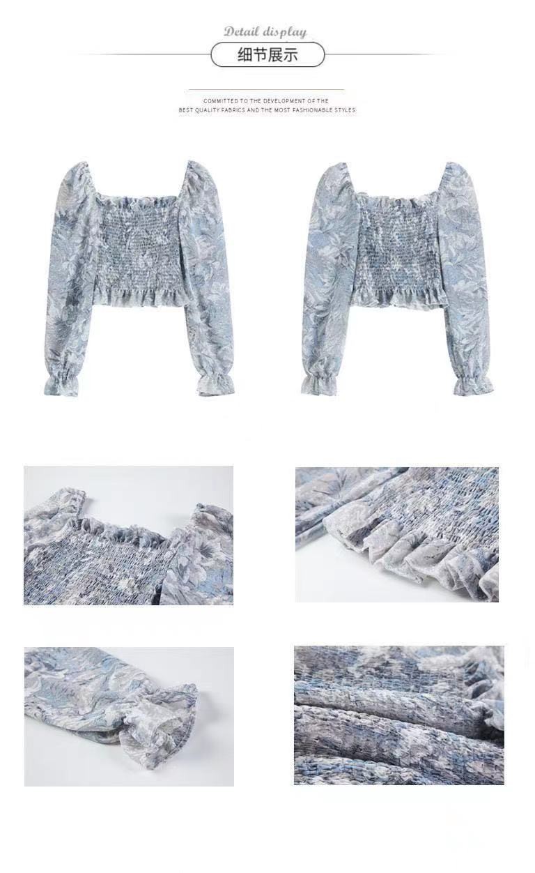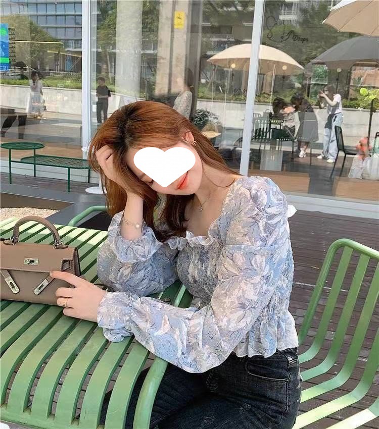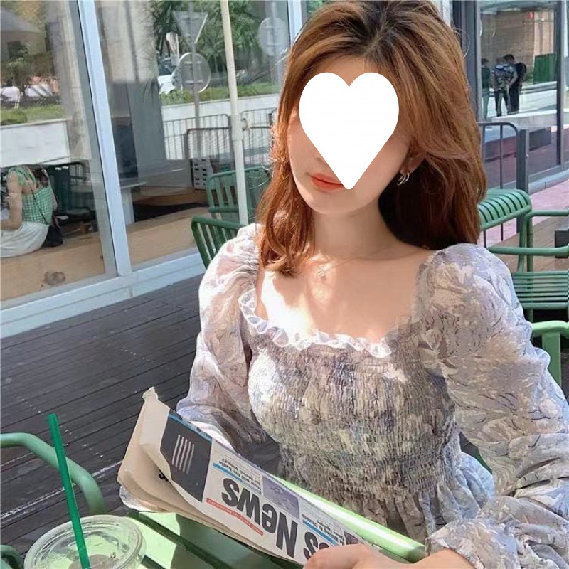 프렌치 스타일 스퀘어 칼라 플로럴 오프 숄더 쉬폰 셔츠 여성용 2023 년 새로운 봄과 여름 한국 스타일 긴팔 오프 숄더 우아한 셔츠스토어 가기