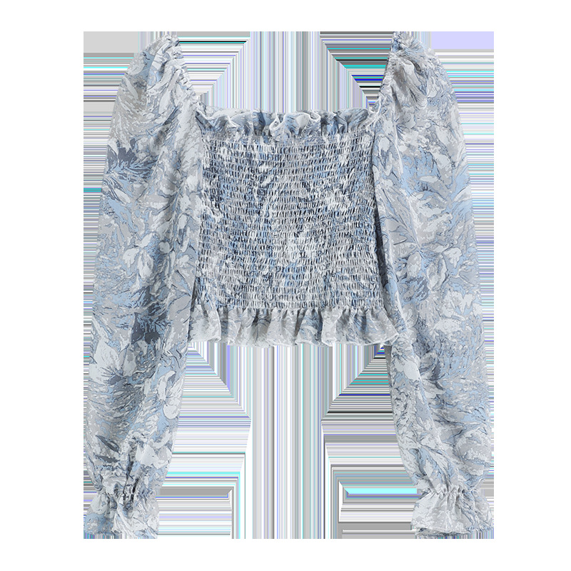 프렌치 스타일 스퀘어 칼라 플로럴 오프 숄더 쉬폰 셔츠 여성용 2023 년 새로운 봄과 여름 한국 스타일 긴팔 오프 숄더 우아한 셔츠
