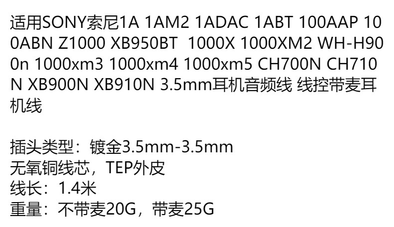 소니 소니 WH-H900N 1000XM3 MDR-1A M2 1R 100AAP 헤드셋 오디오 케이블용