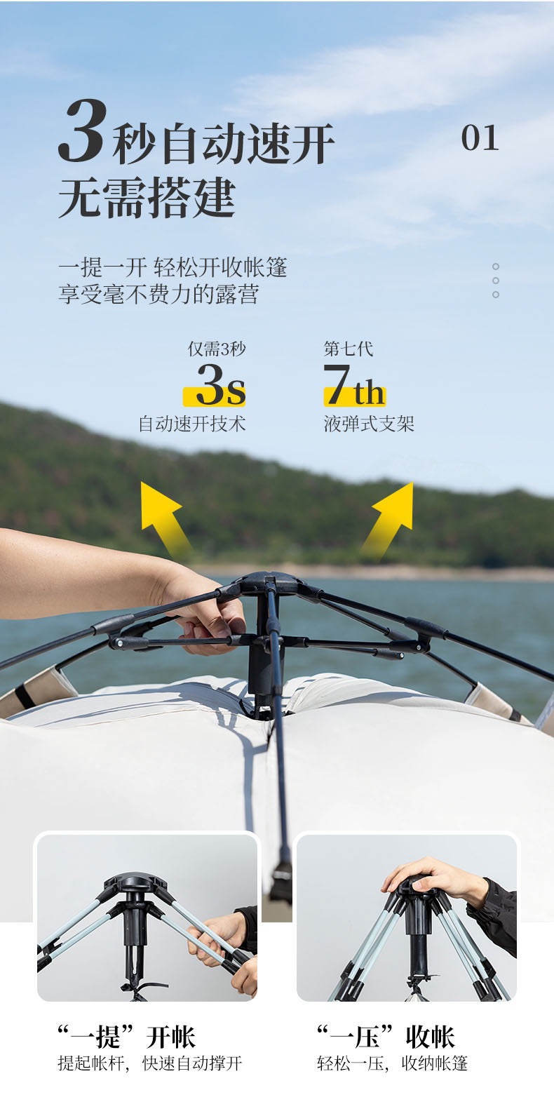 【产品配件】帐篷1个、手拎袋1个、防风绳4根、地钉8枚(不用另购配件,内已配齐)