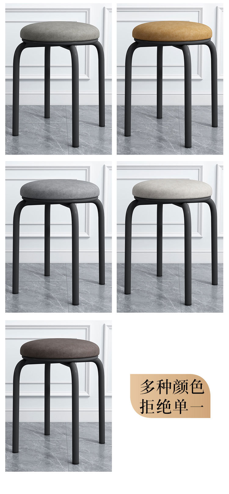 이탈리아 스타일의 가벼운 럭셔리 스툴, 가정용 작은 원형 스툴, 인기 있는 식탁 스툴, 모던하고 심플한 거실용 스타일, 쌓을 수 있는 낮은 스툴