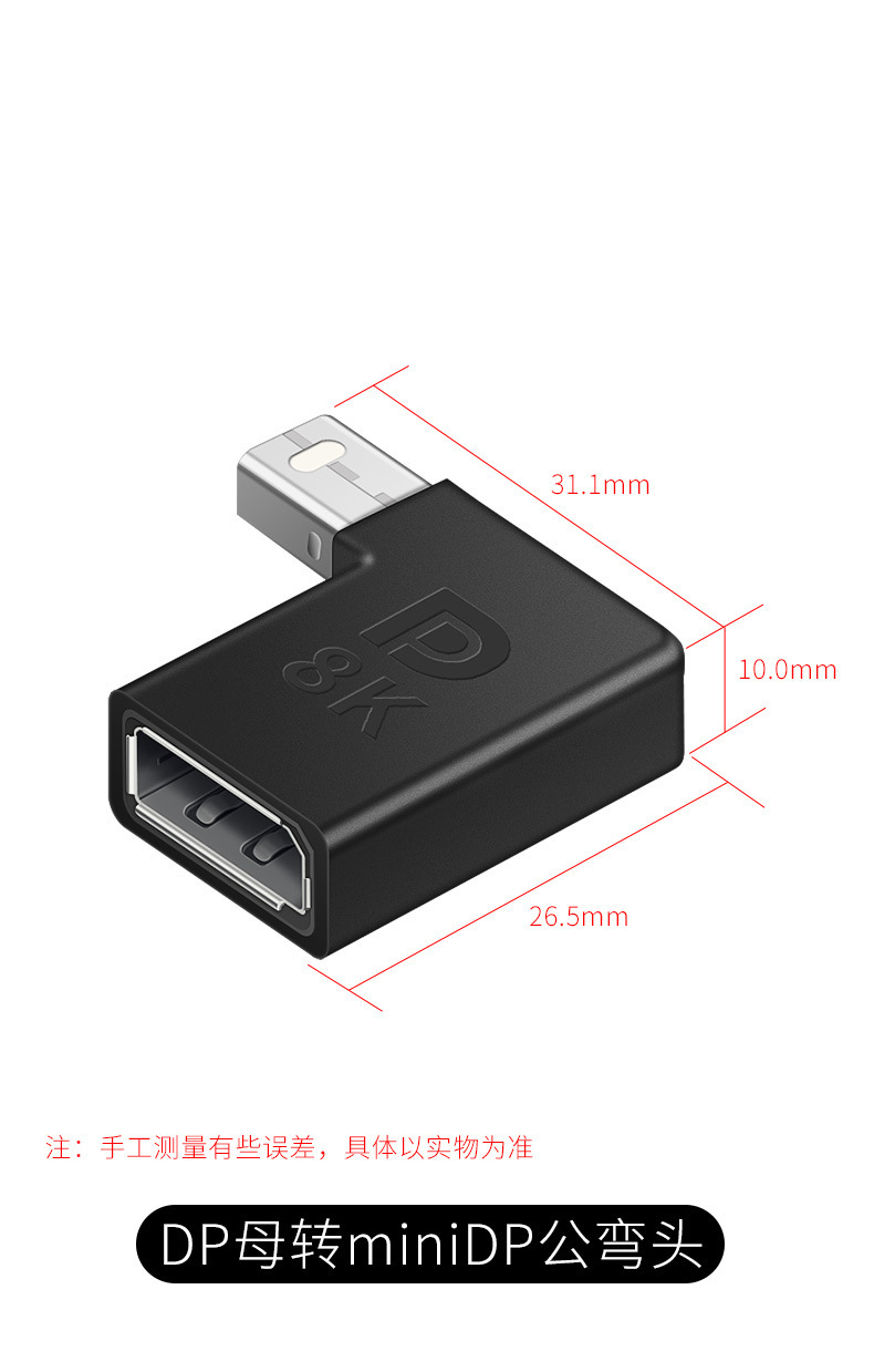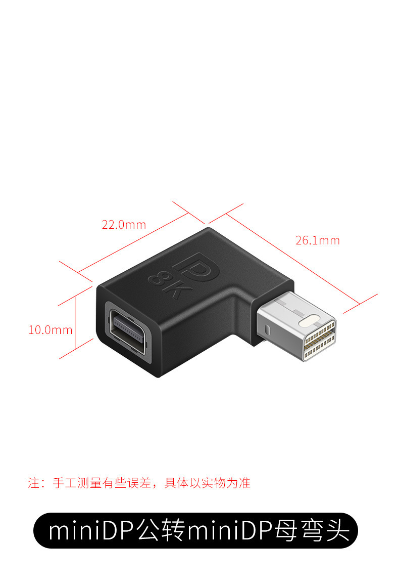 미니DP-DP 어댑터 8K60hz 모니터 컴퓨터 노트북 DP1.4 엘보형 남성-여성 외부 연결 어댑터