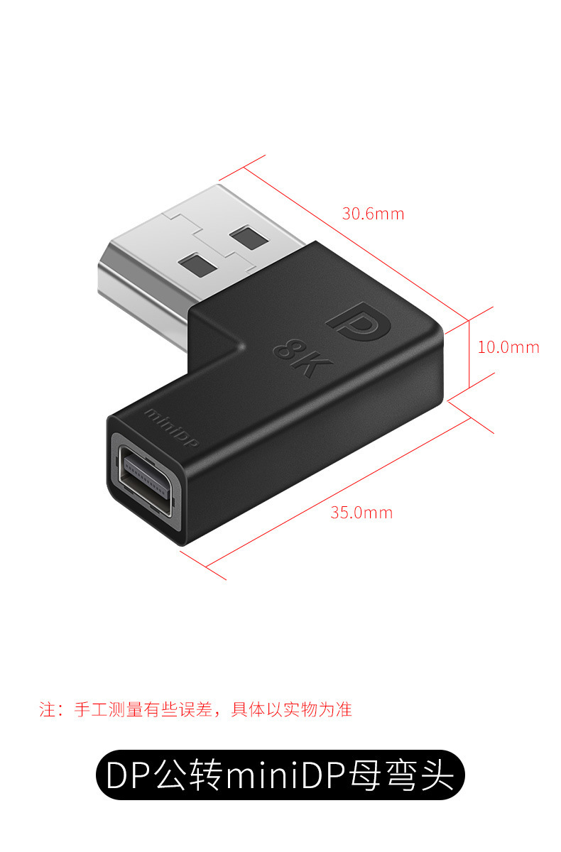 미니DP-DP 어댑터 8K60hz 모니터 컴퓨터 노트북 DP1.4 엘보형 남성-여성 외부 연결 어댑터스토어 가기