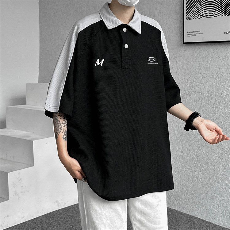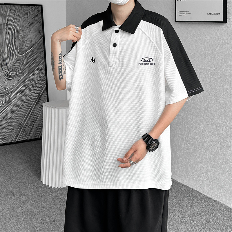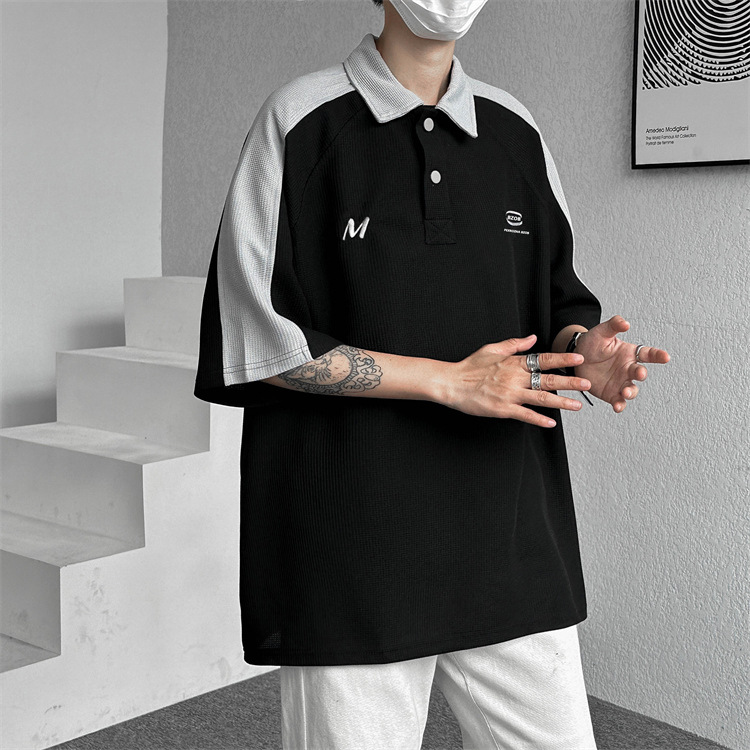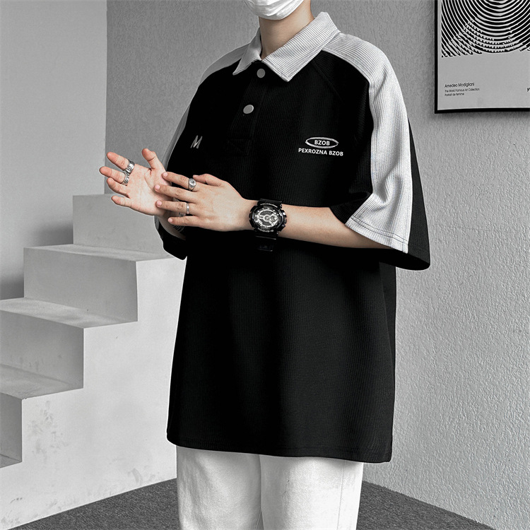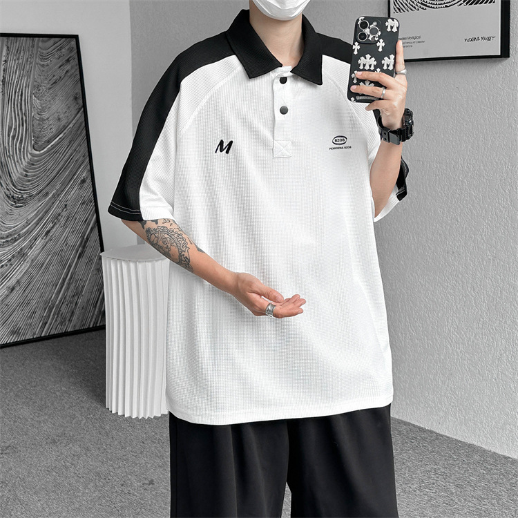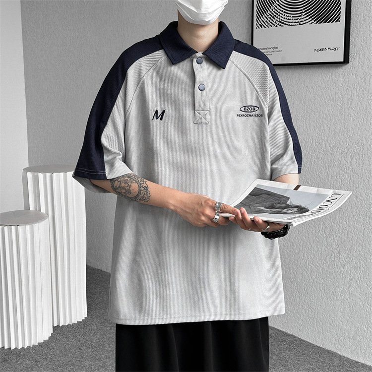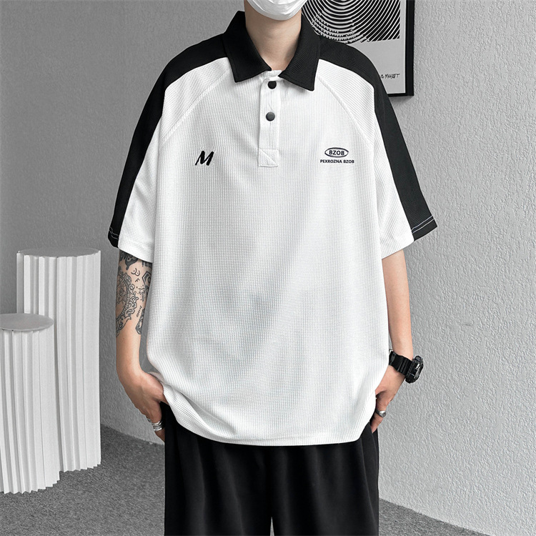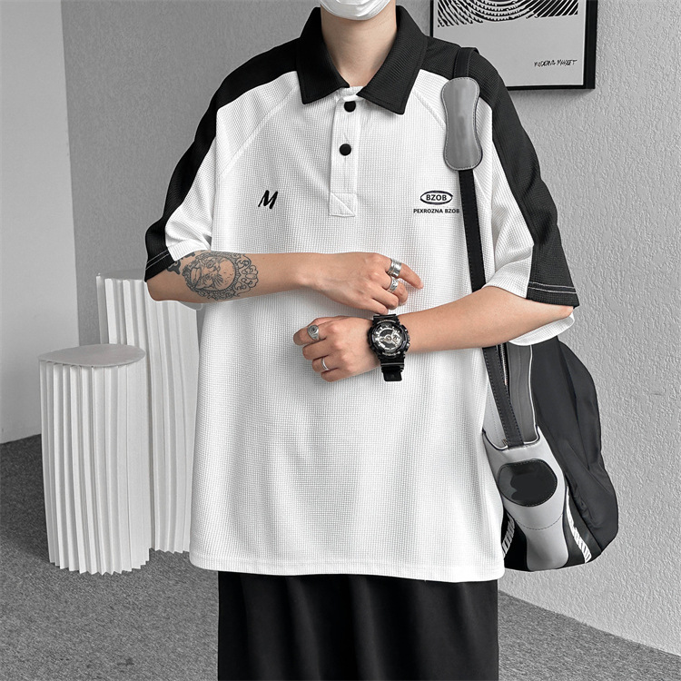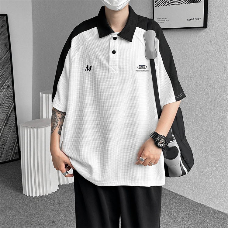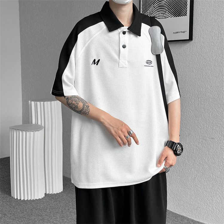 소스 팩토리 와플 폴로 셔츠 남성용 여름 미국 대조 색상 반팔 티셔츠 트렌디 브랜드 캐주얼 반팔 탑