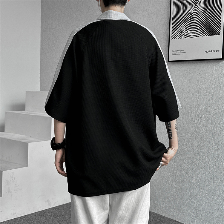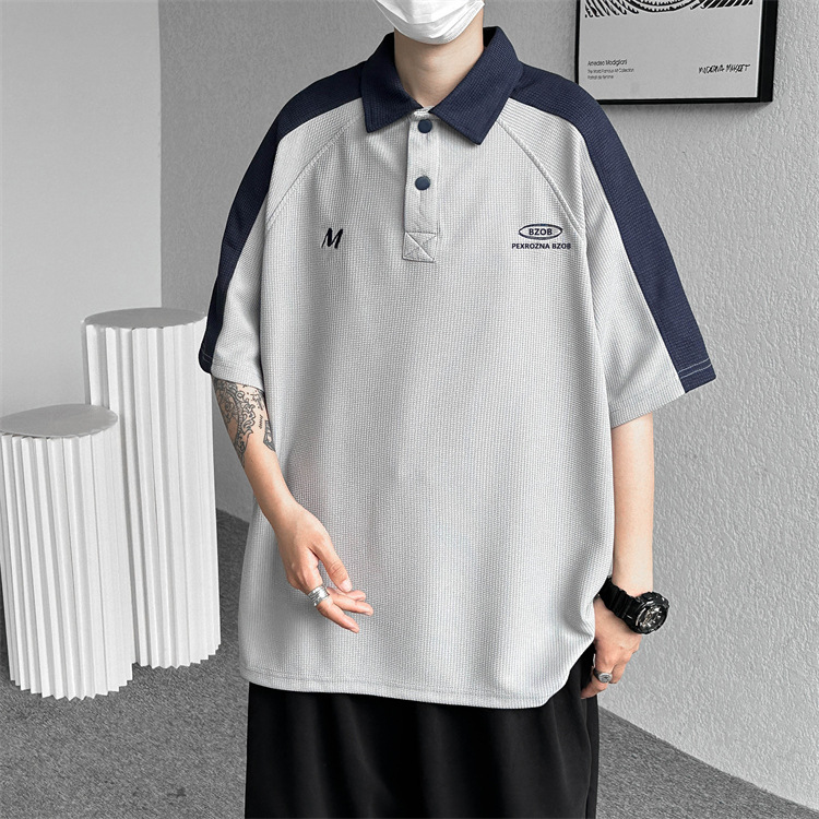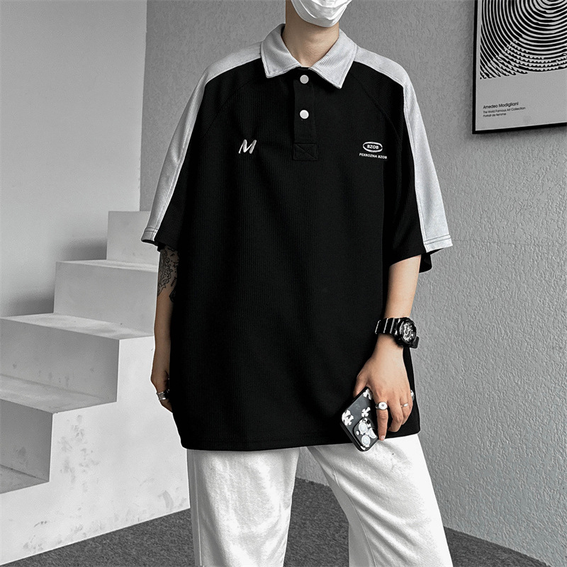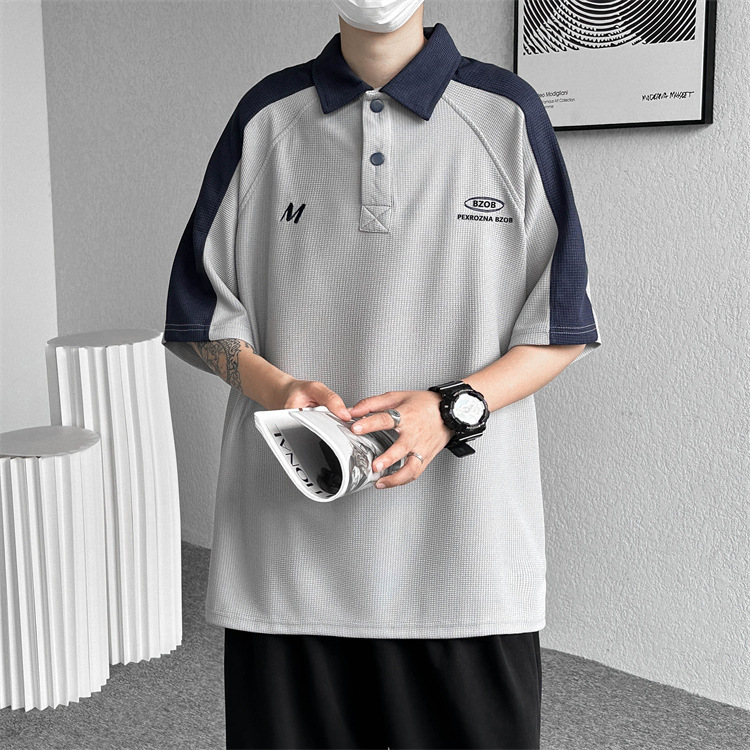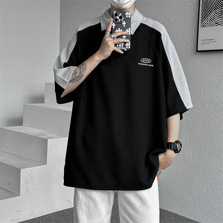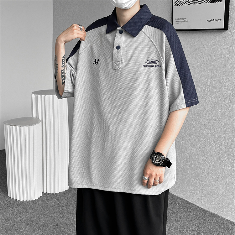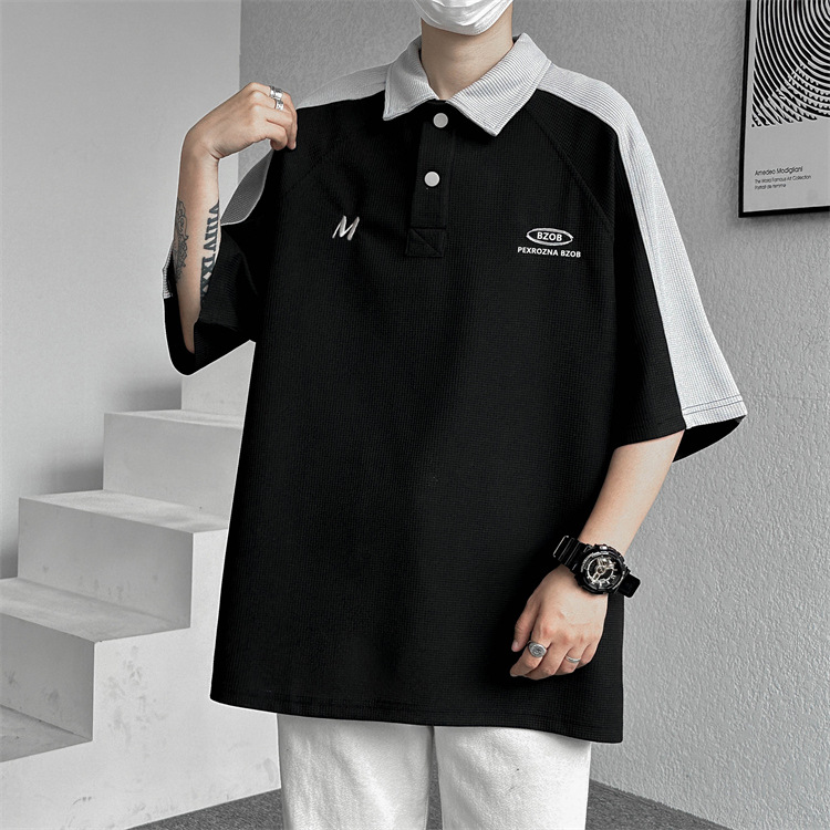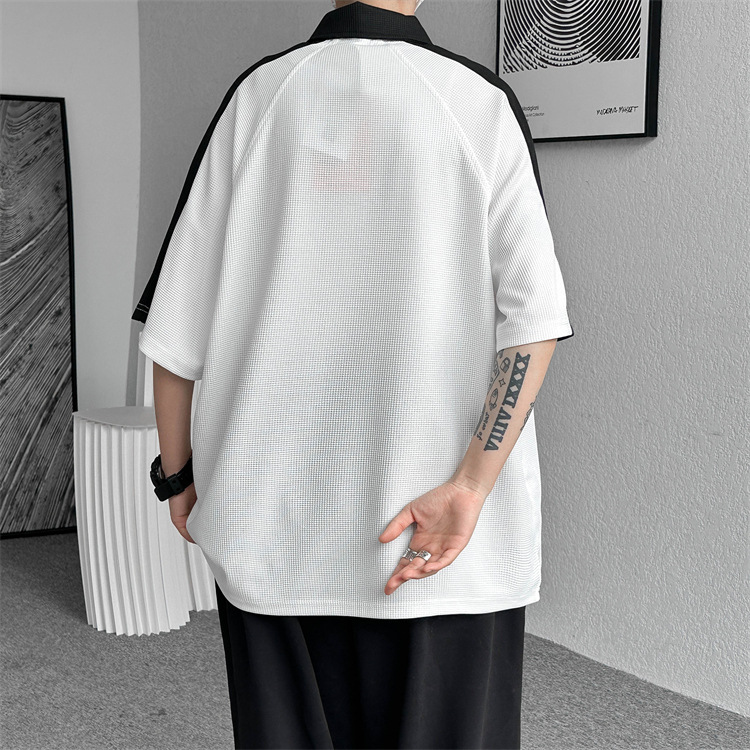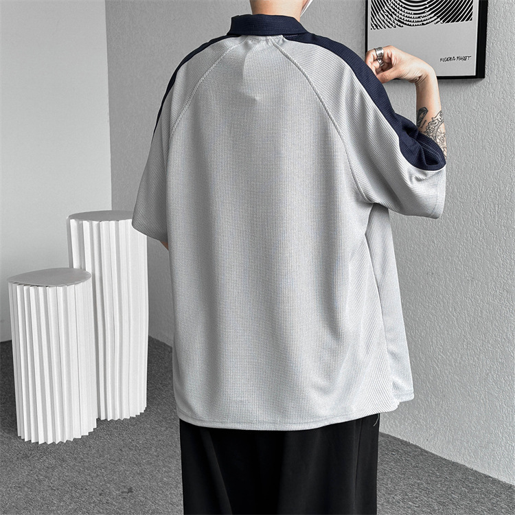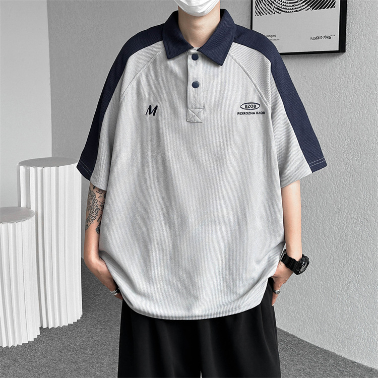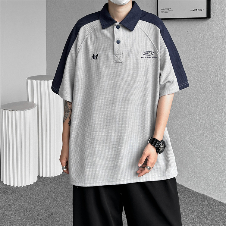 소스 팩토리 와플 폴로 셔츠 남성용 여름 미국 대조 색상 반팔 티셔츠 트렌디 브랜드 캐주얼 반팔 탑
