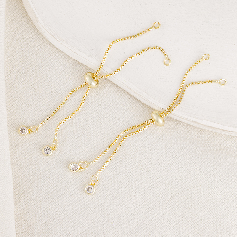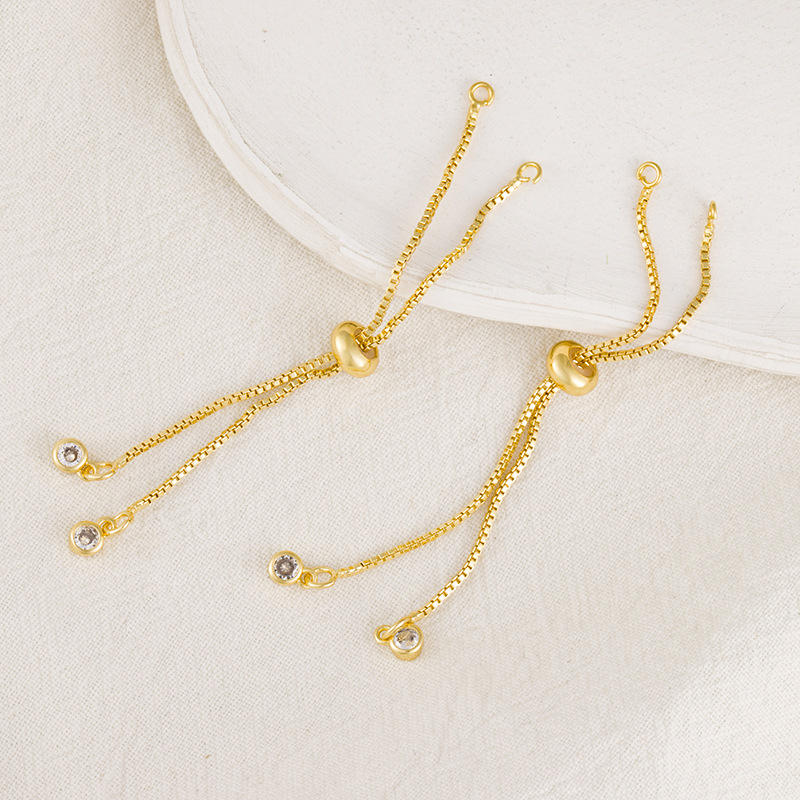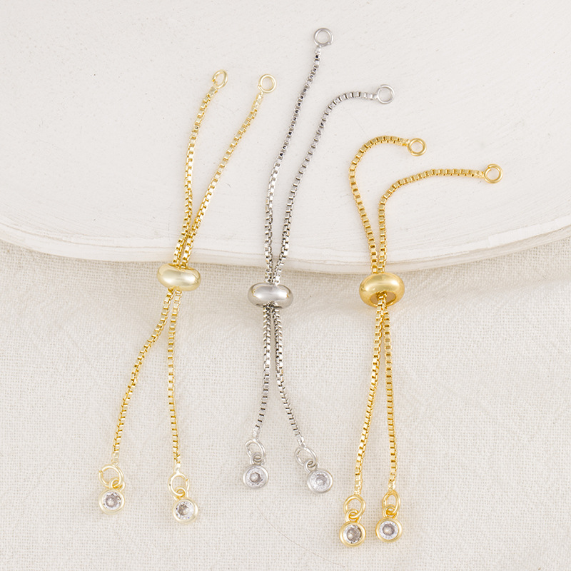 18K 골드 컬러 상감 지르콘 드로어블 팔찌 상자 체인 DIY 확장 체인 텔레스코픽 유니버설 팔찌 액세서리
