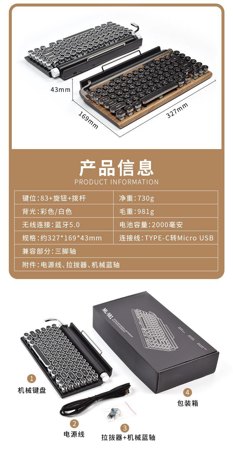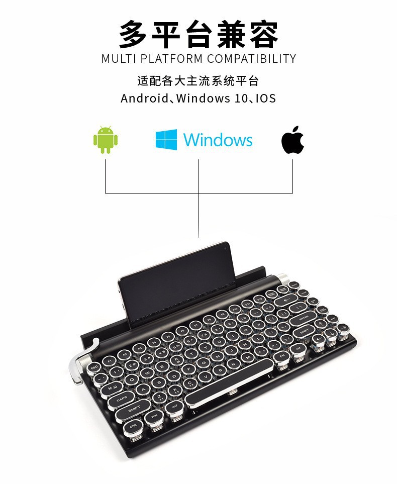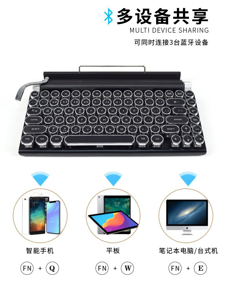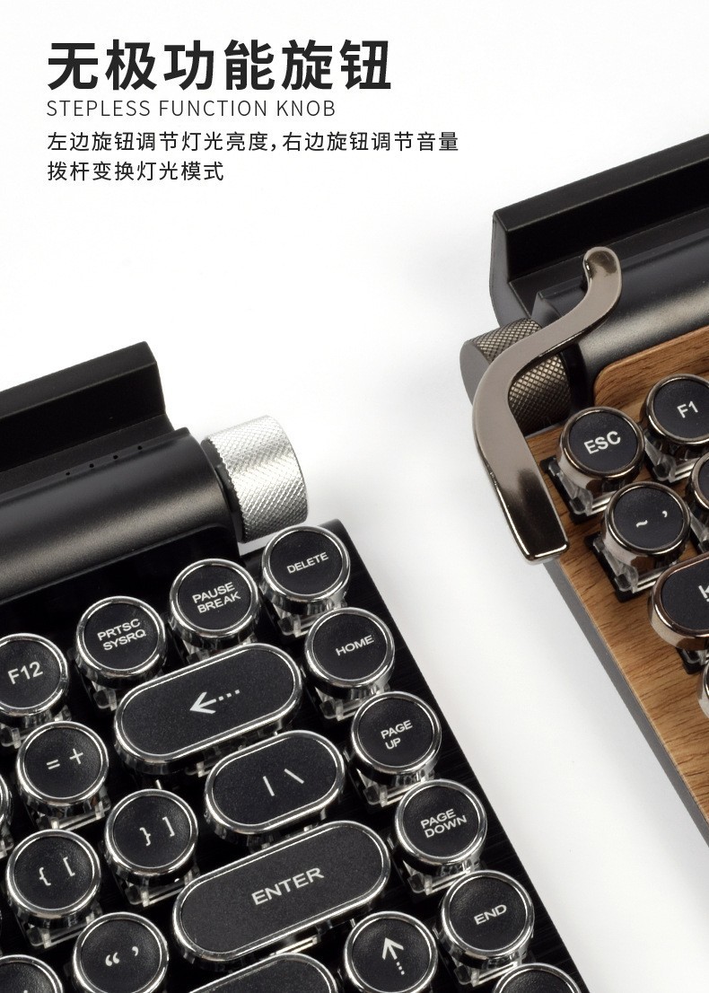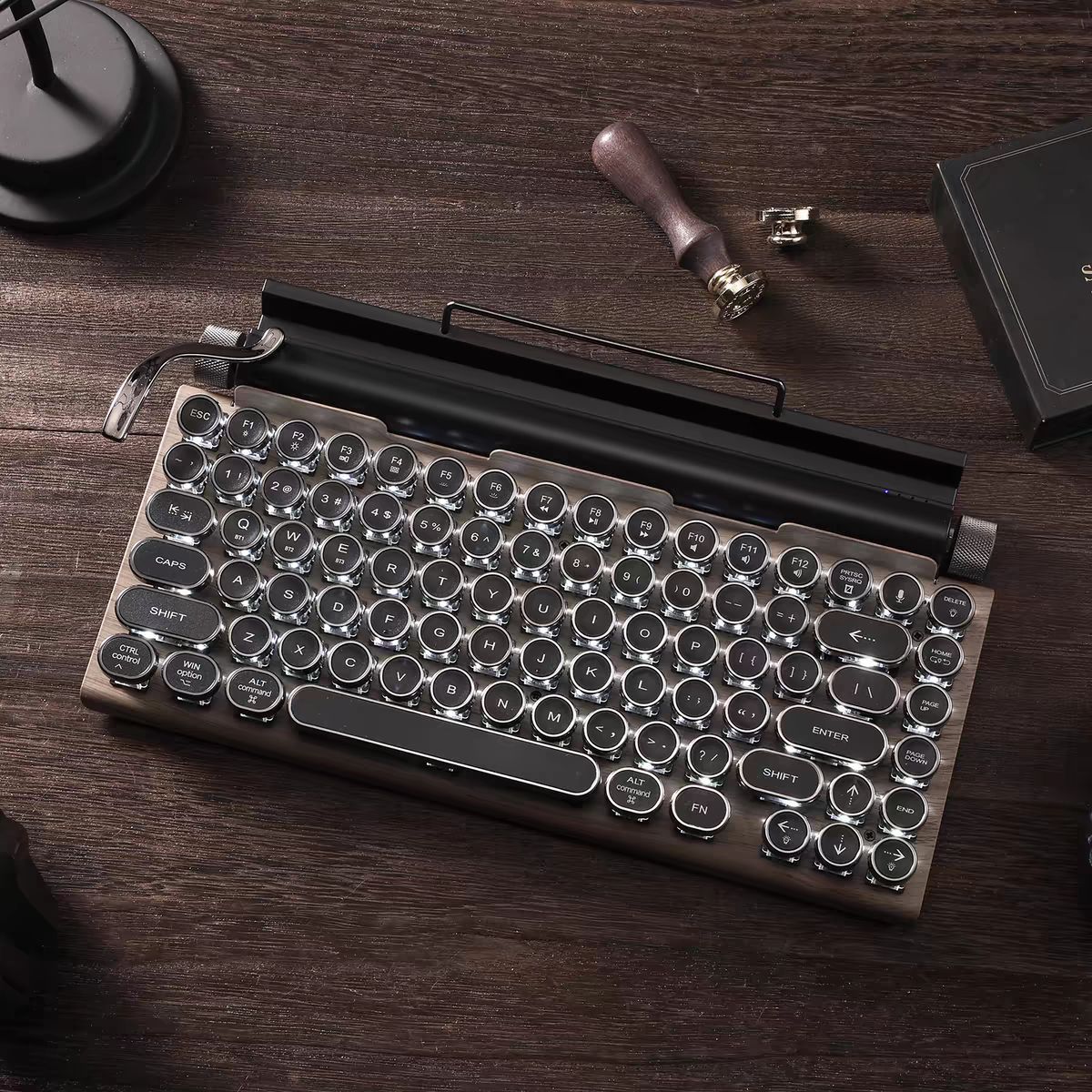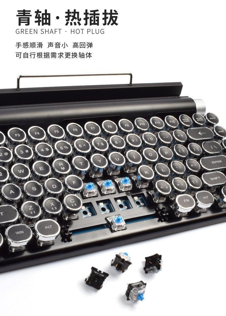 레트로 펑크 타자기 녹색 축 블루투스 듀얼 모드 기계식 키보드 맞춤형 핫 스왑 가능 녹색 축 도매 맞춤형스토어 가기